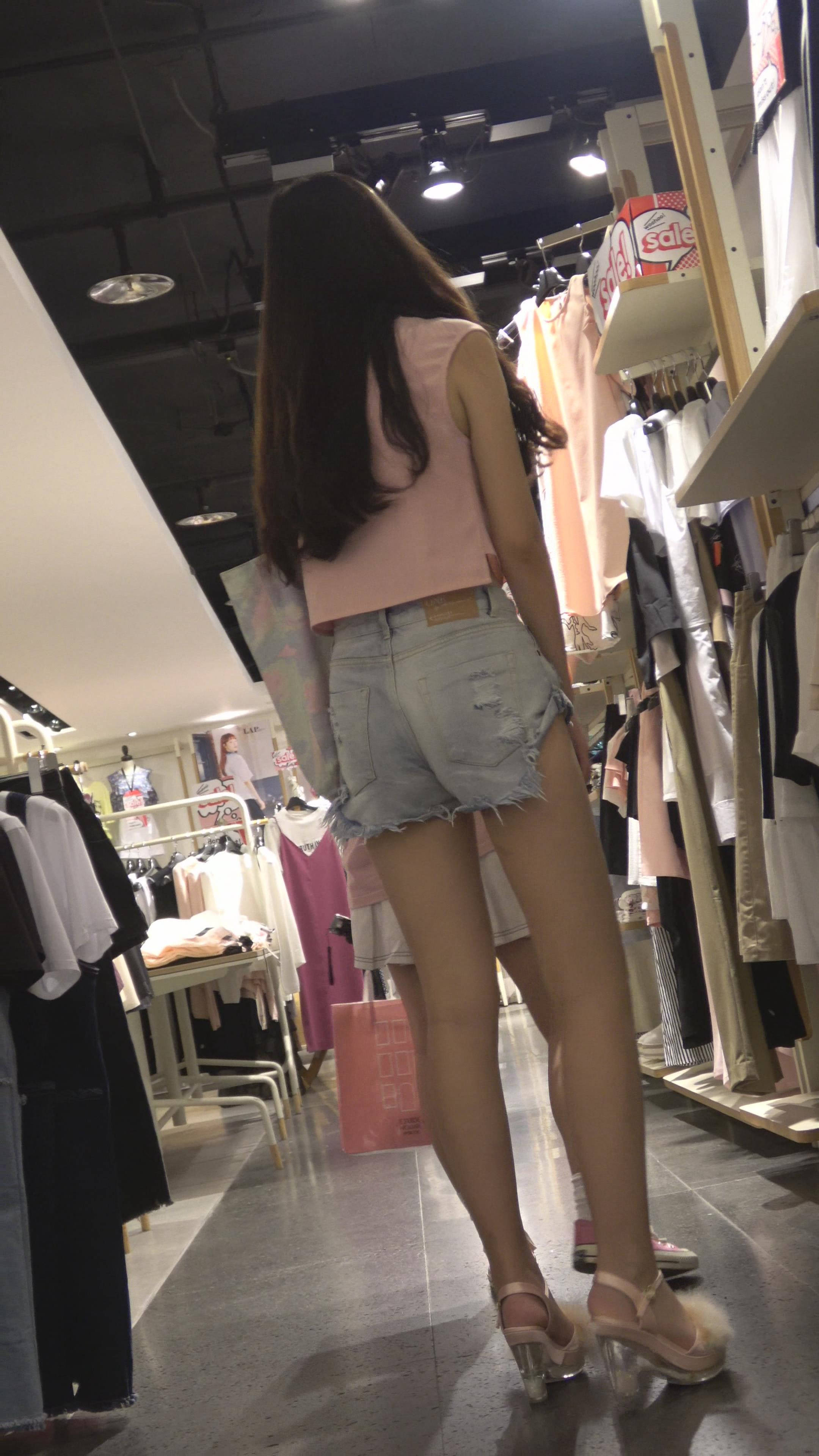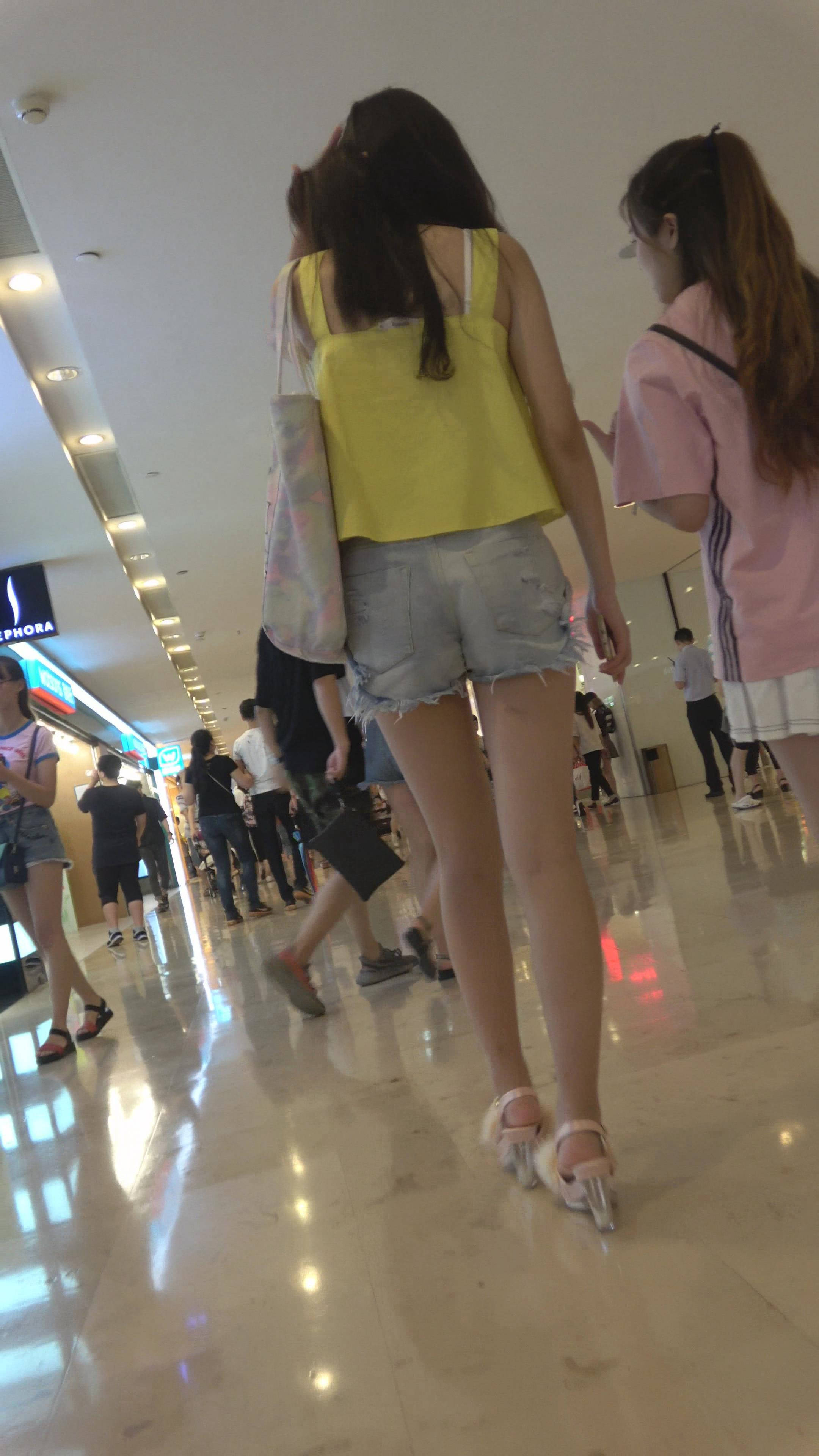 4K - 街拍黄色吊带衫性感超短热裤高跟鞋美女 编号7913