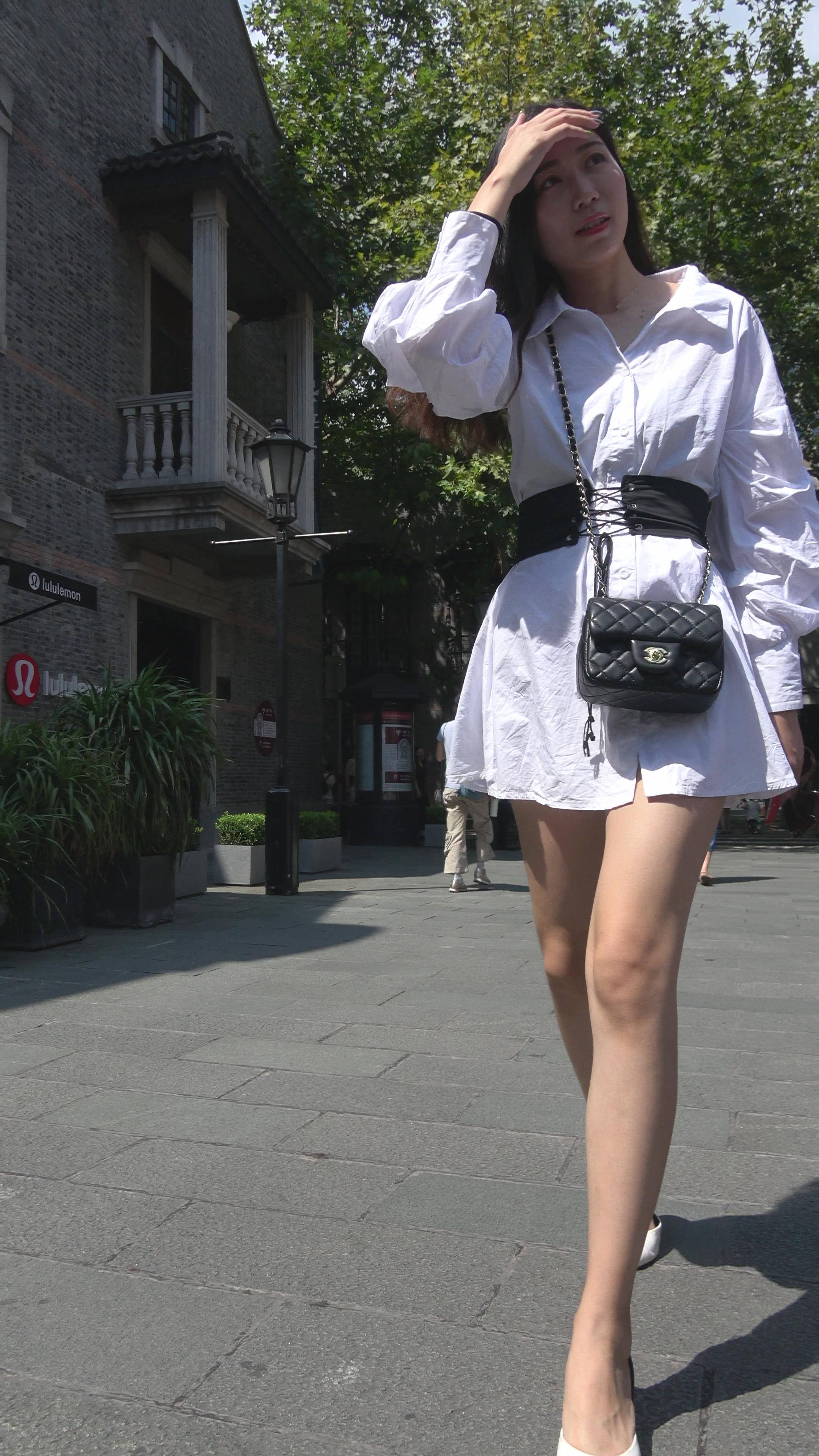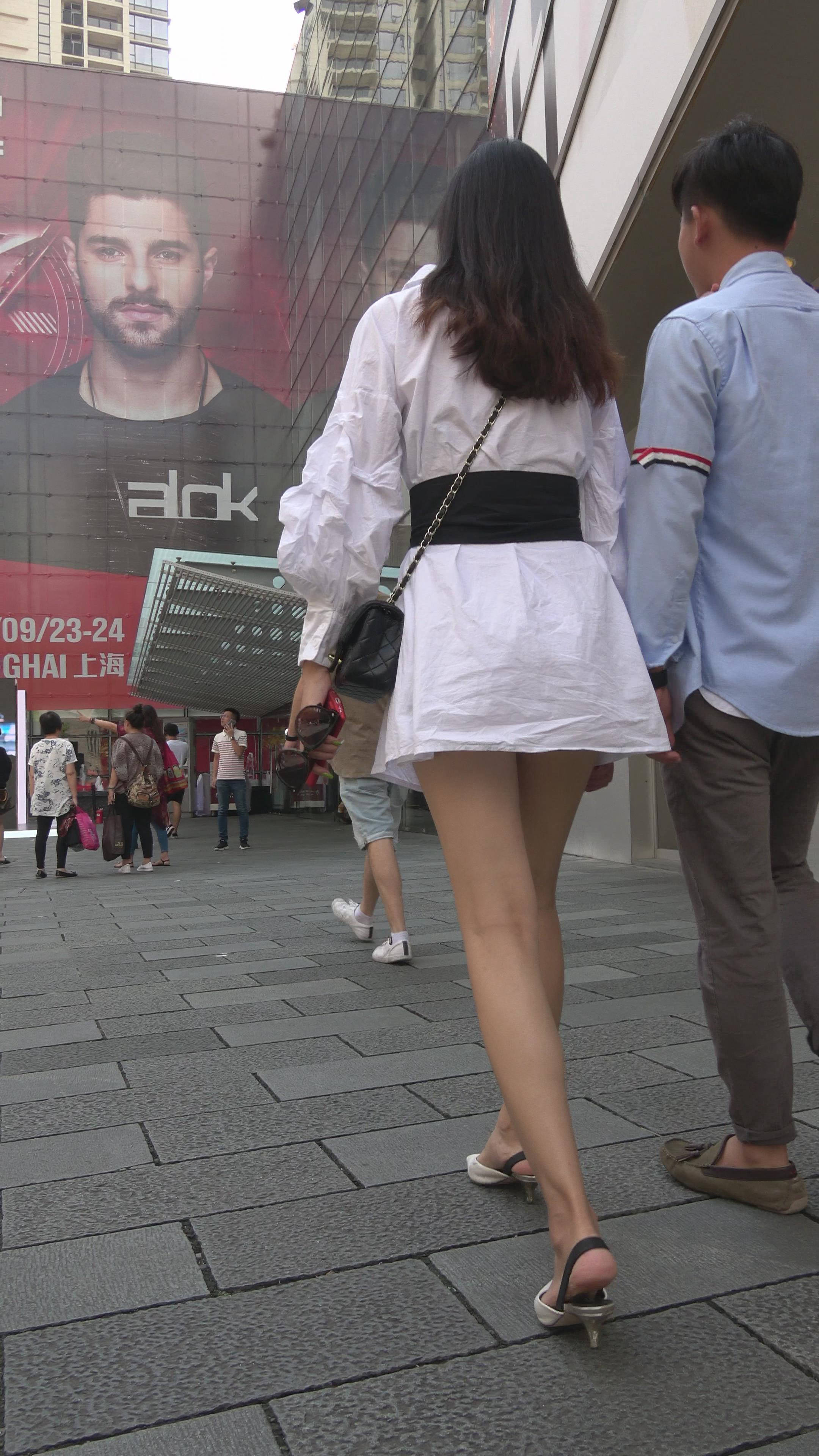 4K - 白色连衣裙街拍凉高跟美腿姑娘 编号7914 |
