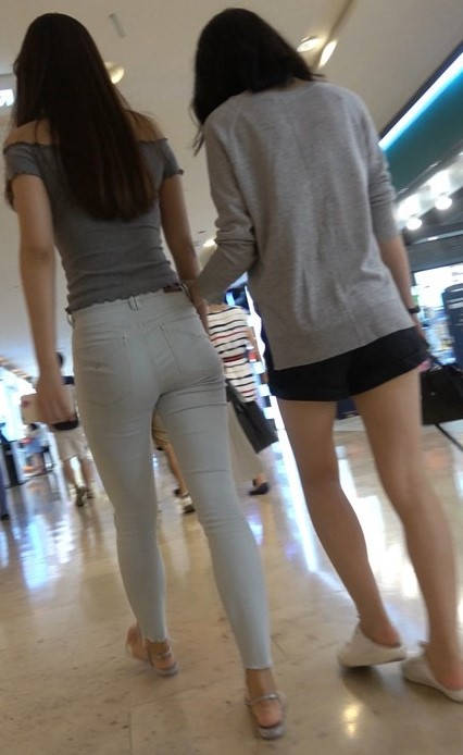 4K 仙女气质紧身裤一字肩街拍美女跟闺蜜逛商场 编号9449 |