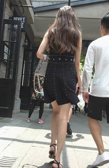 4K-气质黑色连衣裙高跟街拍美女 编号9308 |