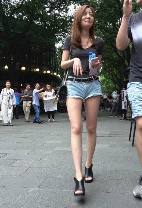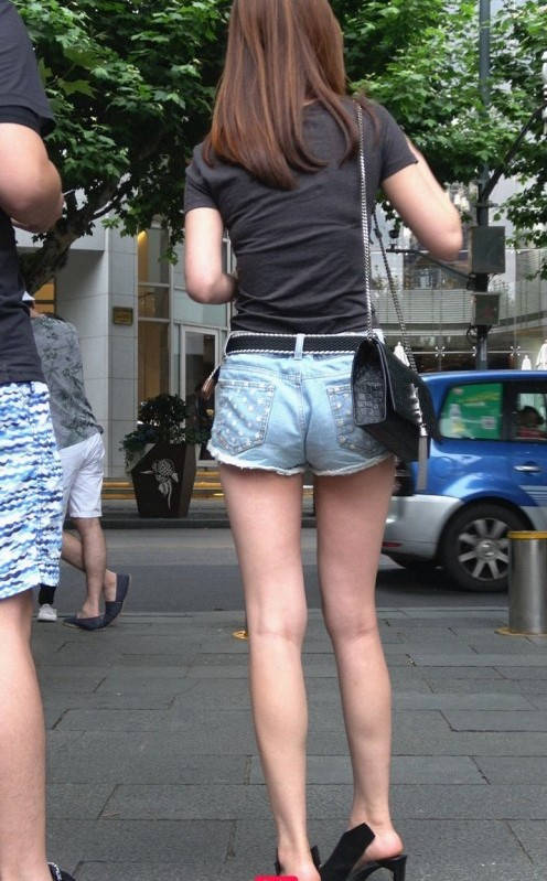 4K-街拍牛仔热裤长腿高跟美女 编号9313 |