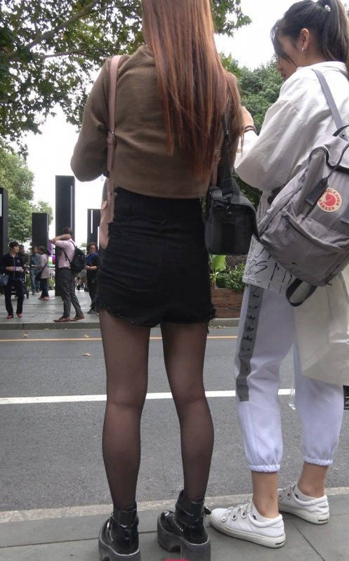 4K-黑色热裤黑丝长腿高跟街拍美女 编号9335 |