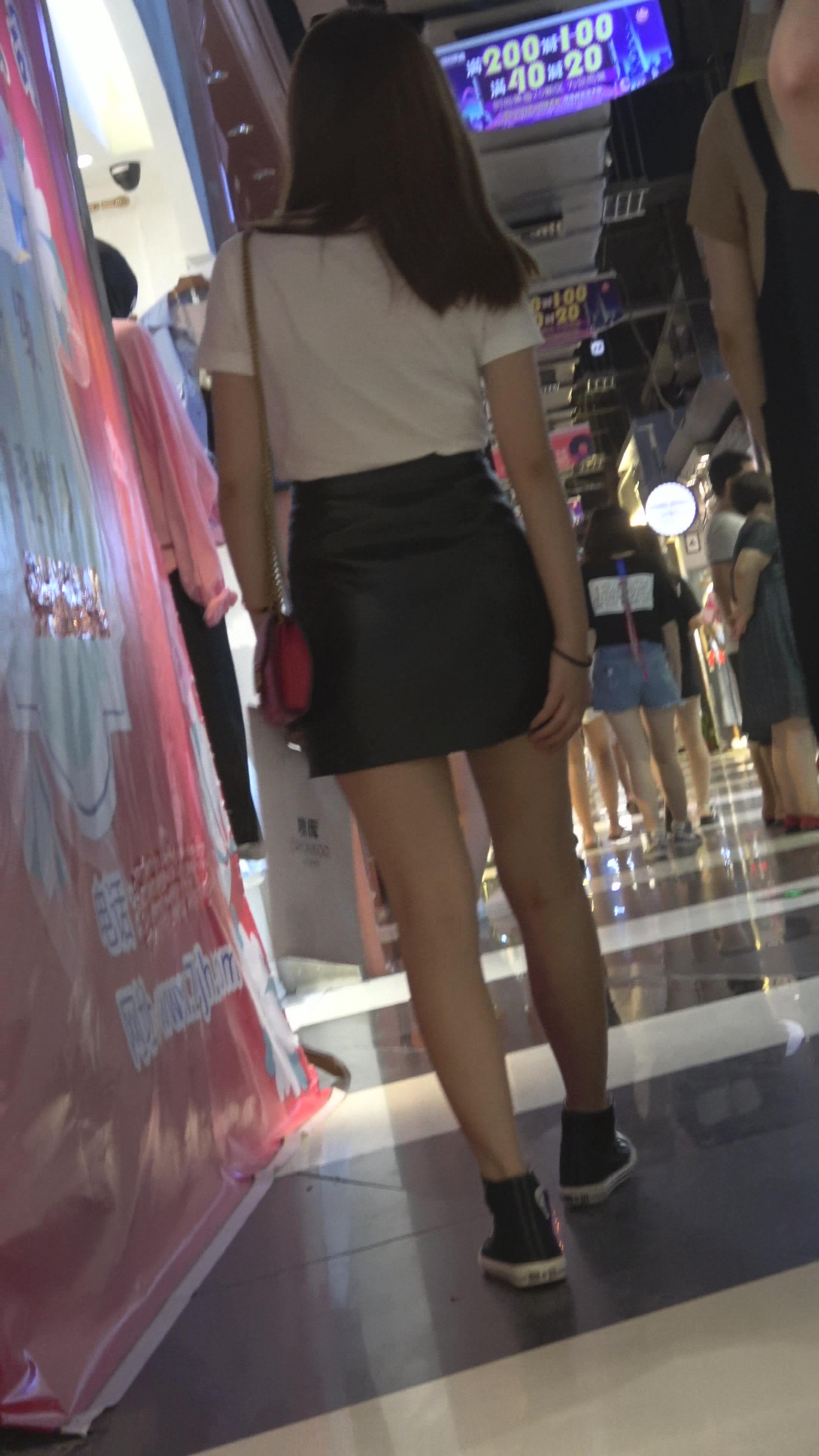 4K 黑色小段皮裙美女逛商场 编号3185 |