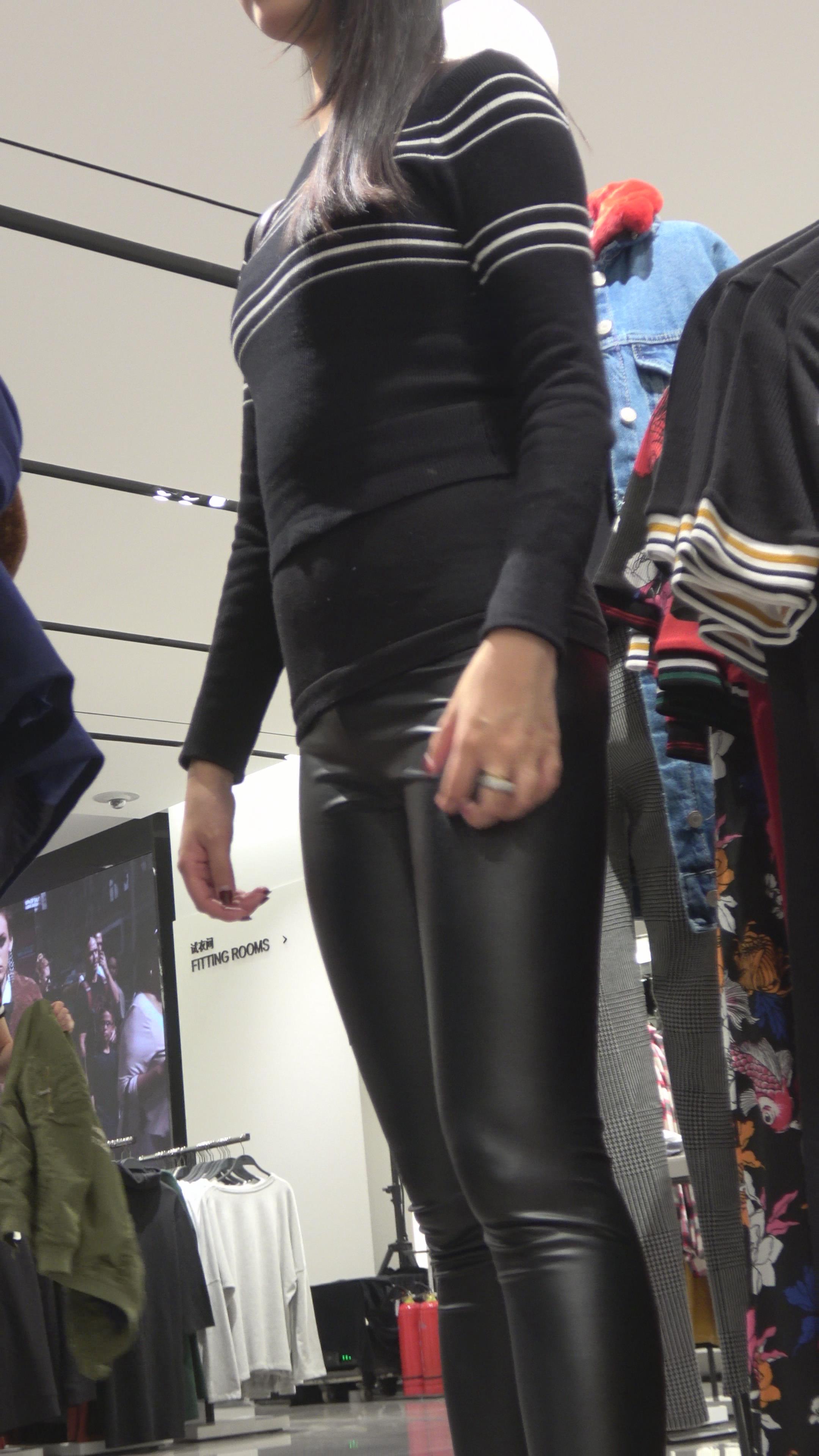 4K - 超级紧身街拍皮裤小姐姐买衣服 编号3195 |