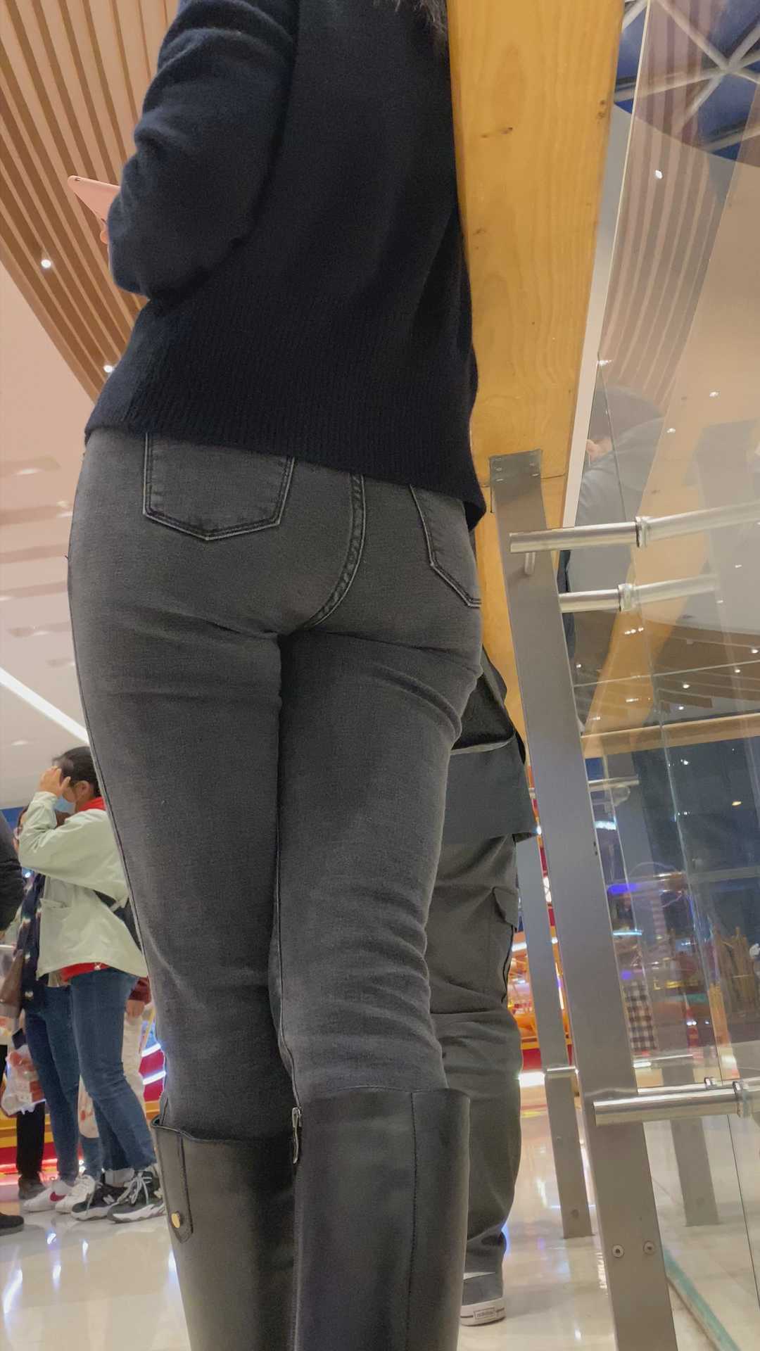 B1208极品灰牛仔裤小姐姐金三角特写 |