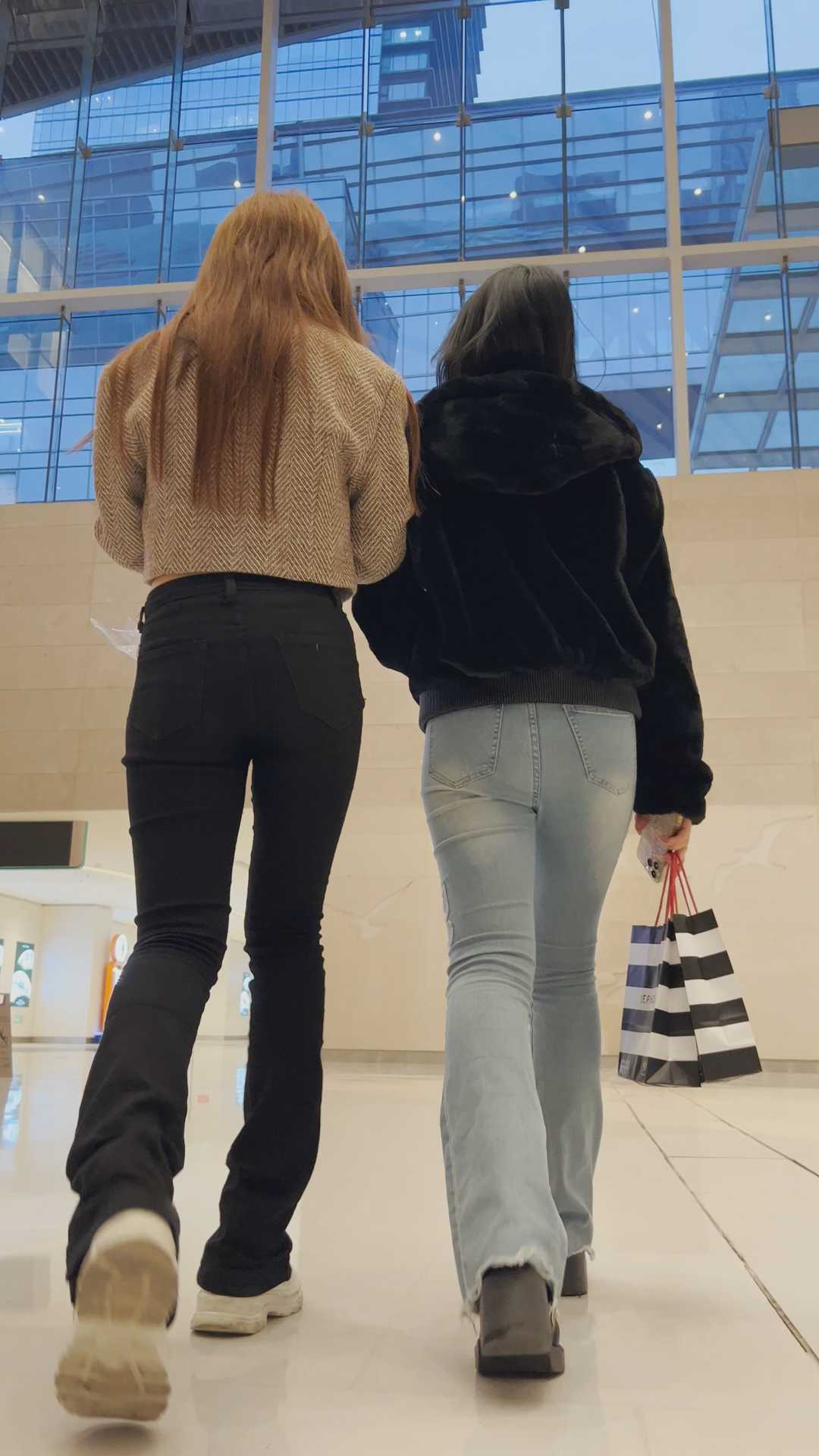 B1474黑牛仔裤与蓝色牛仔裤两妹子 |