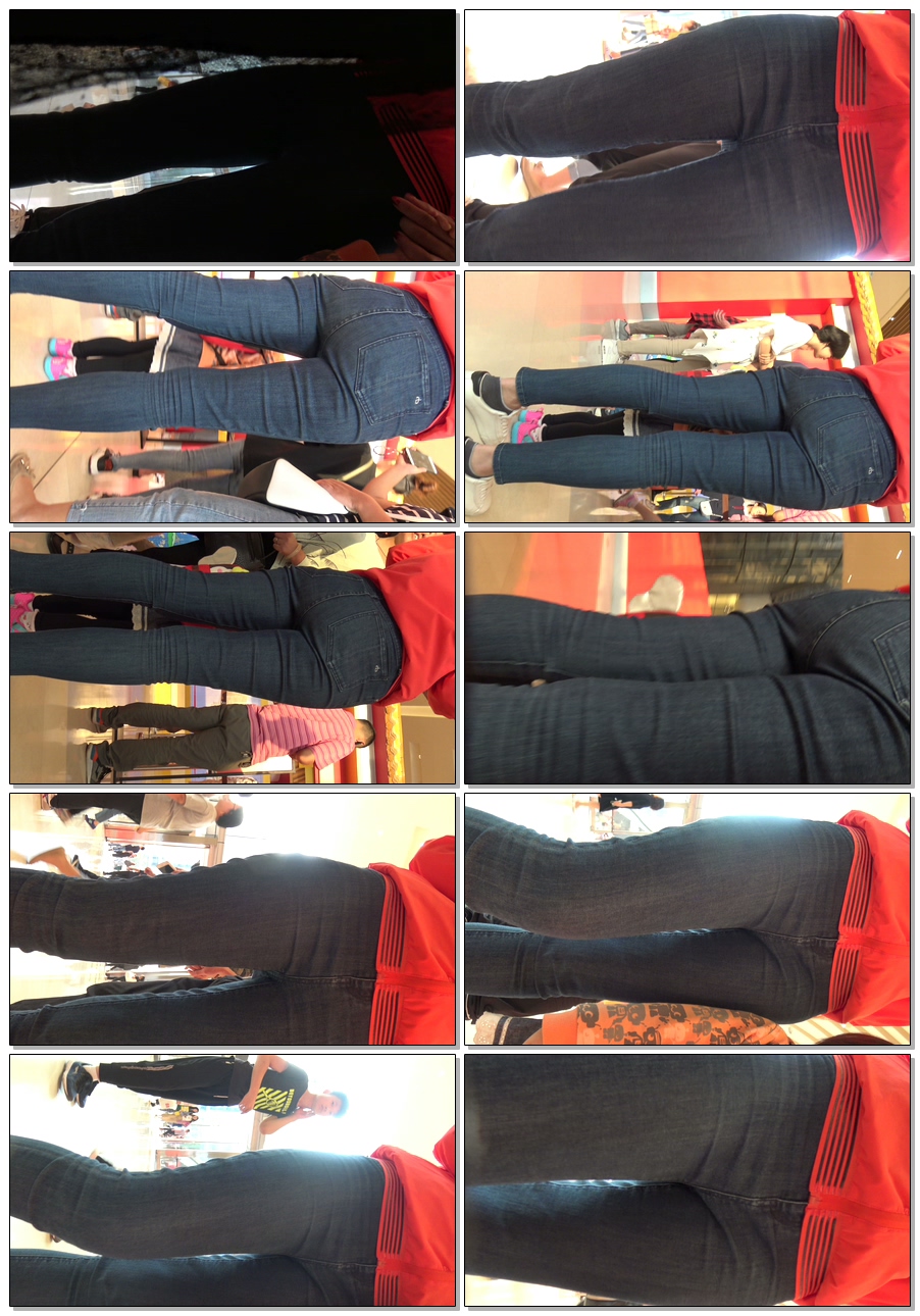 C892紧身牛仔裤妈妈带着儿子逛街 |