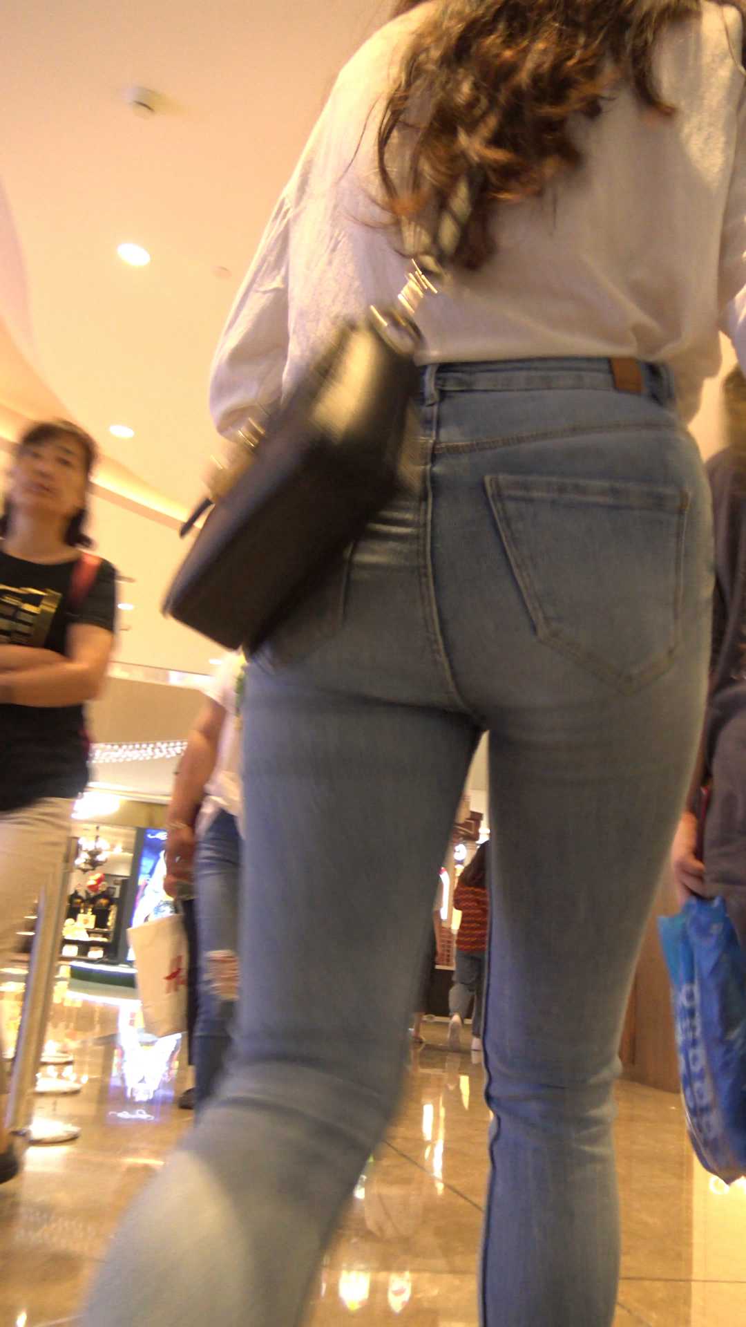 C44商场紧身牛仔裤长发少妇 |