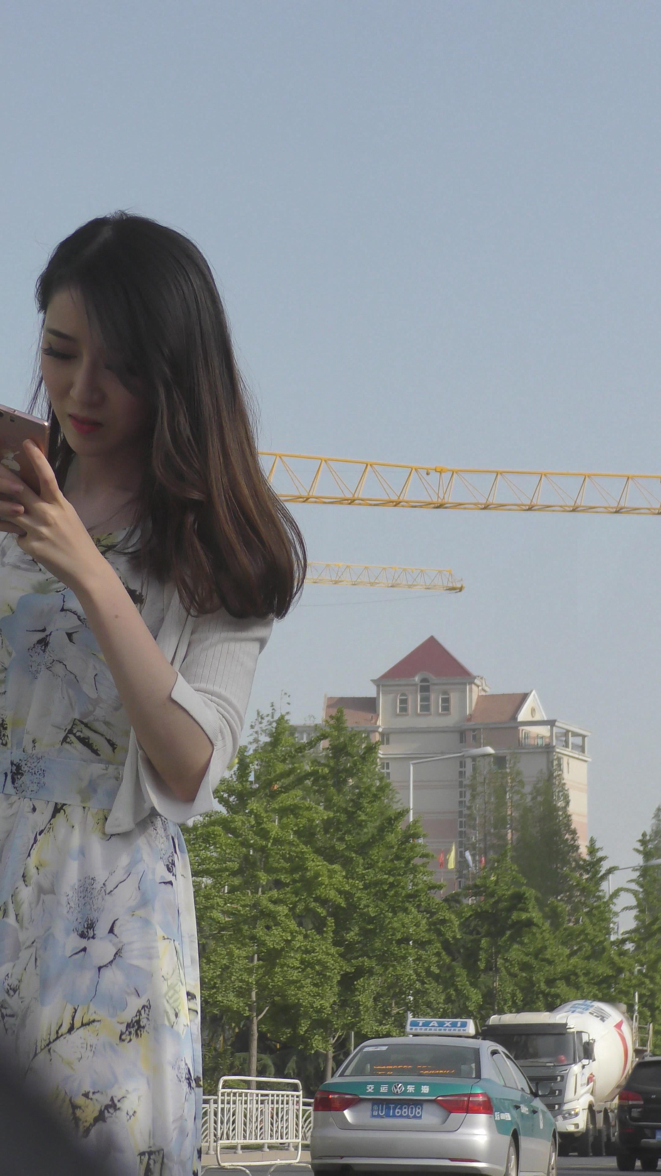 4K 非常不错的蓝色衬衫牛仔裤大美女 编号3324
