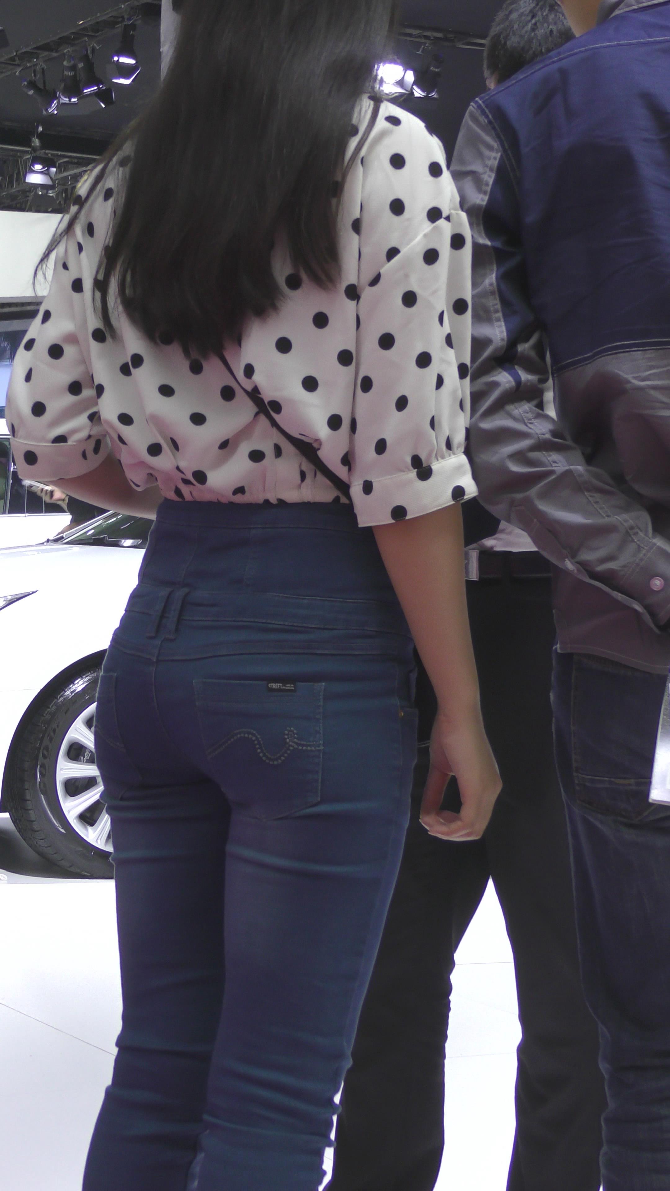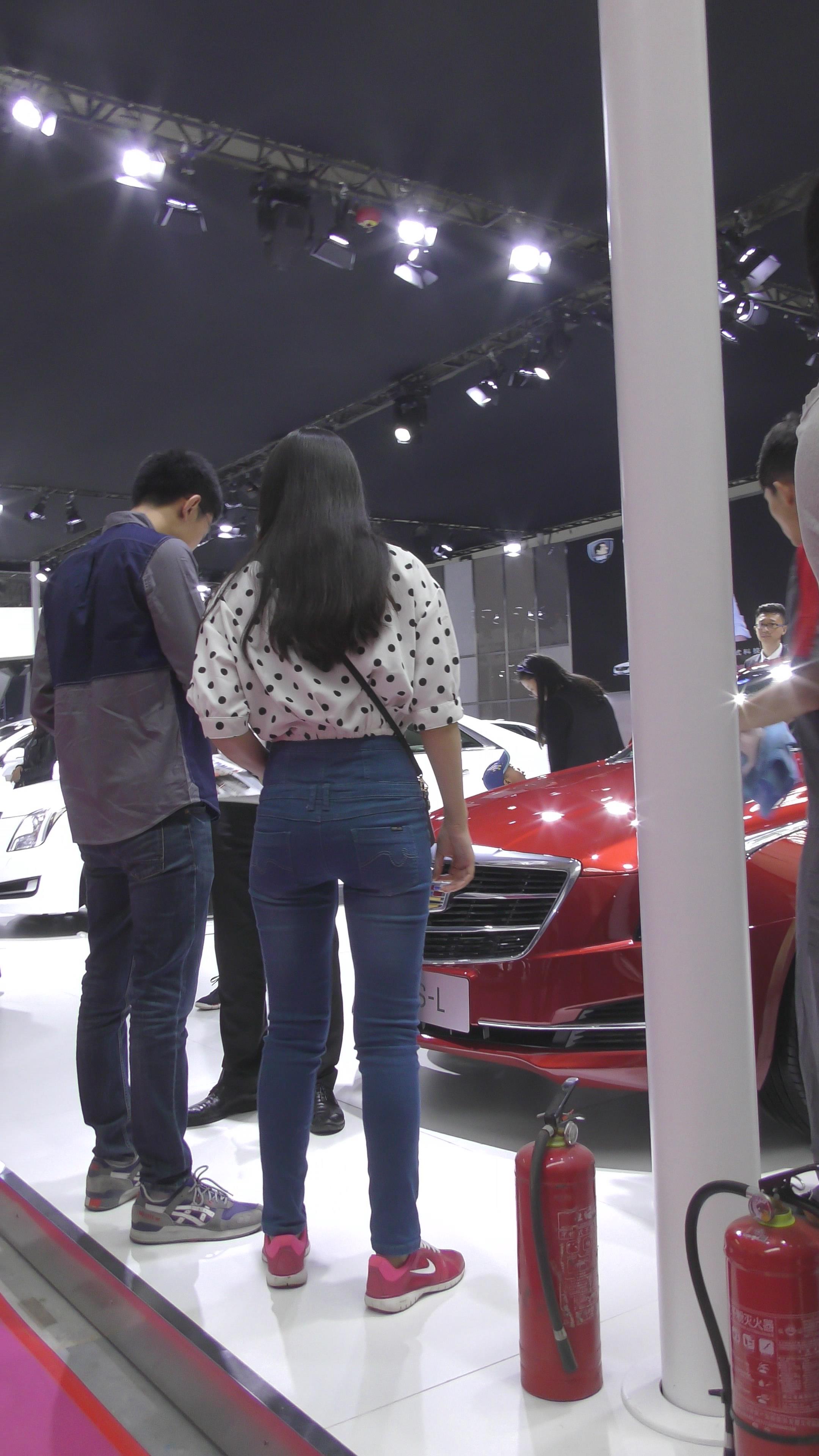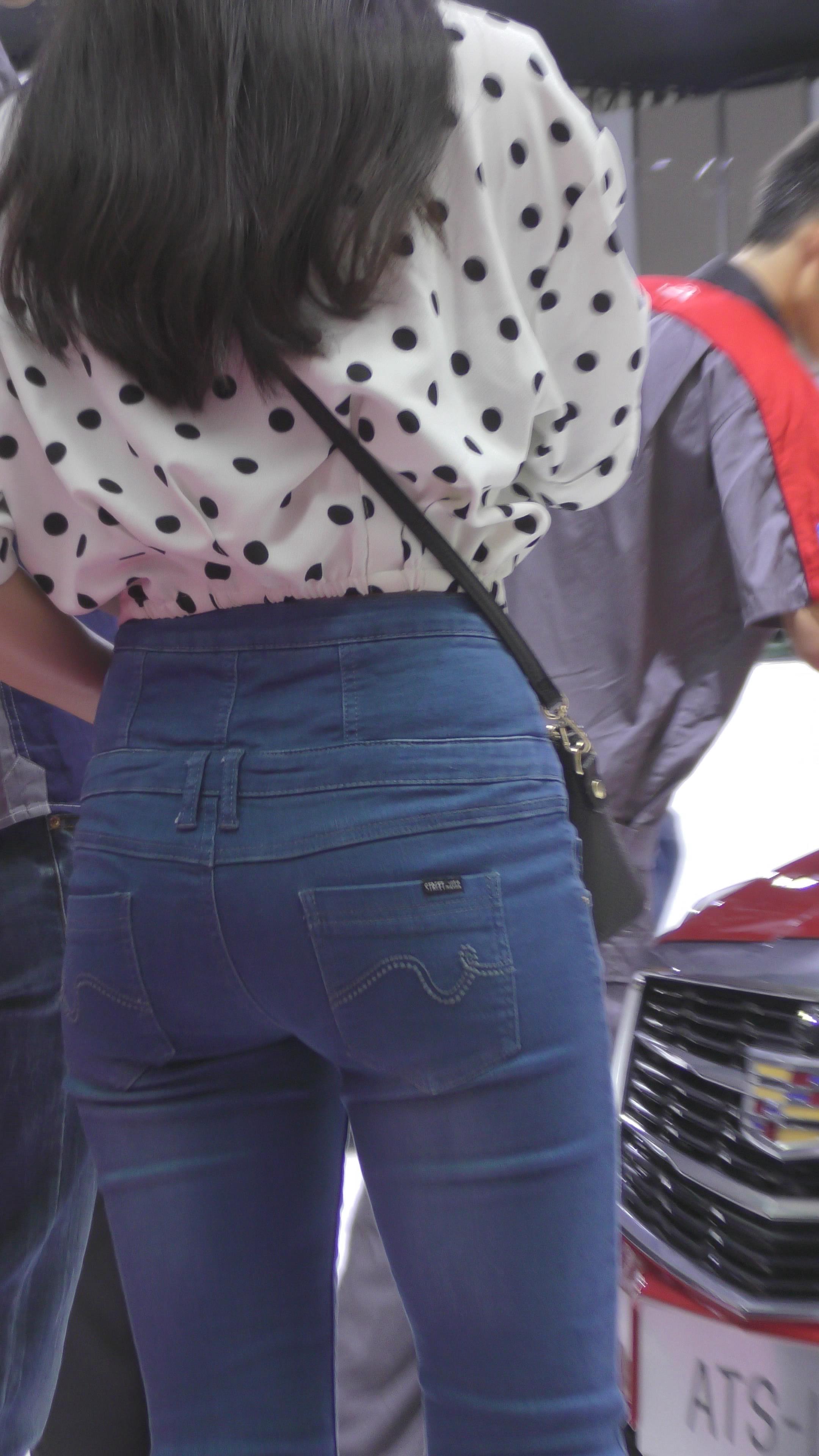 4K 逛车展的斑点衬衫紧身牛仔裤美眉 编号3332