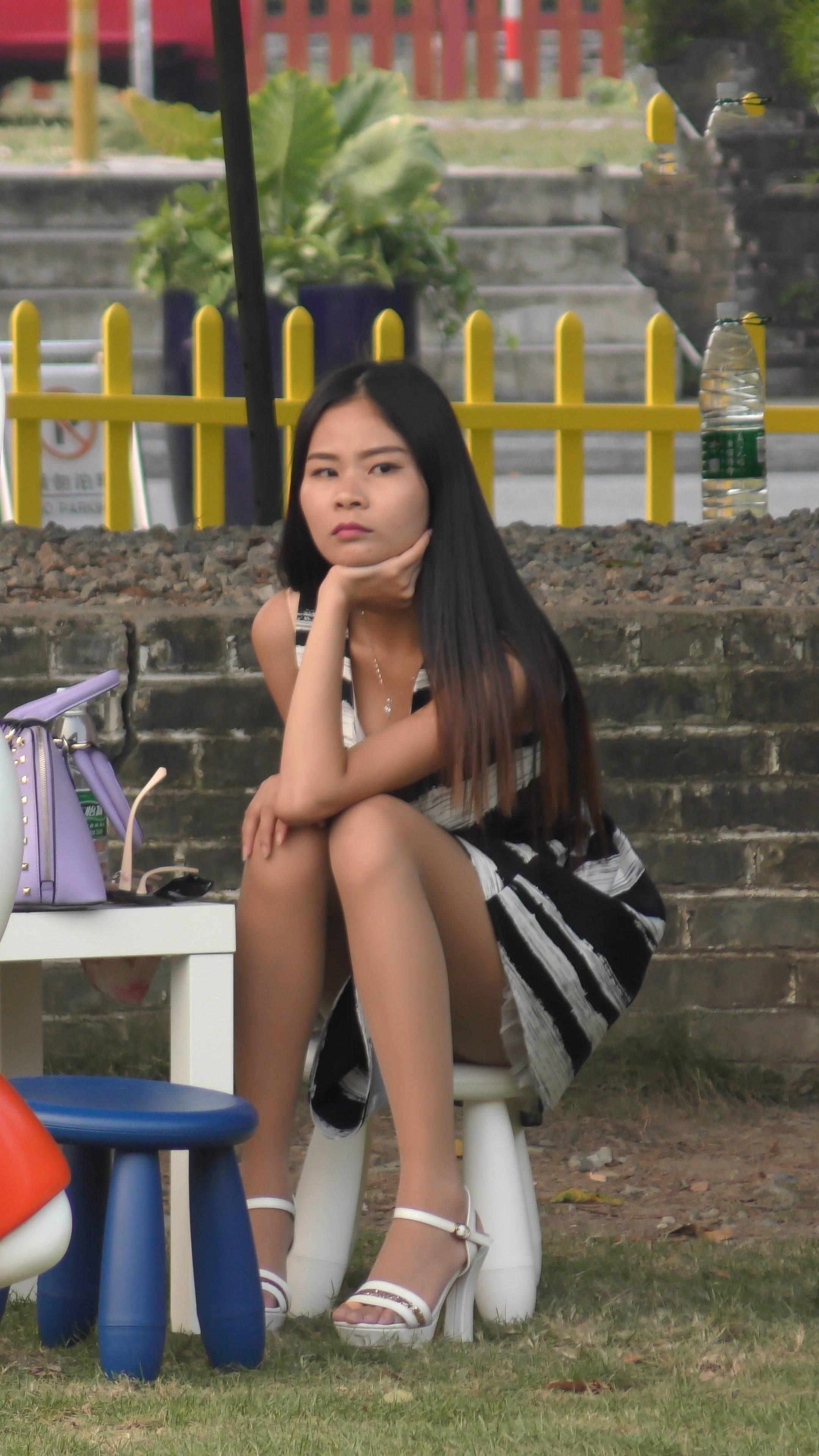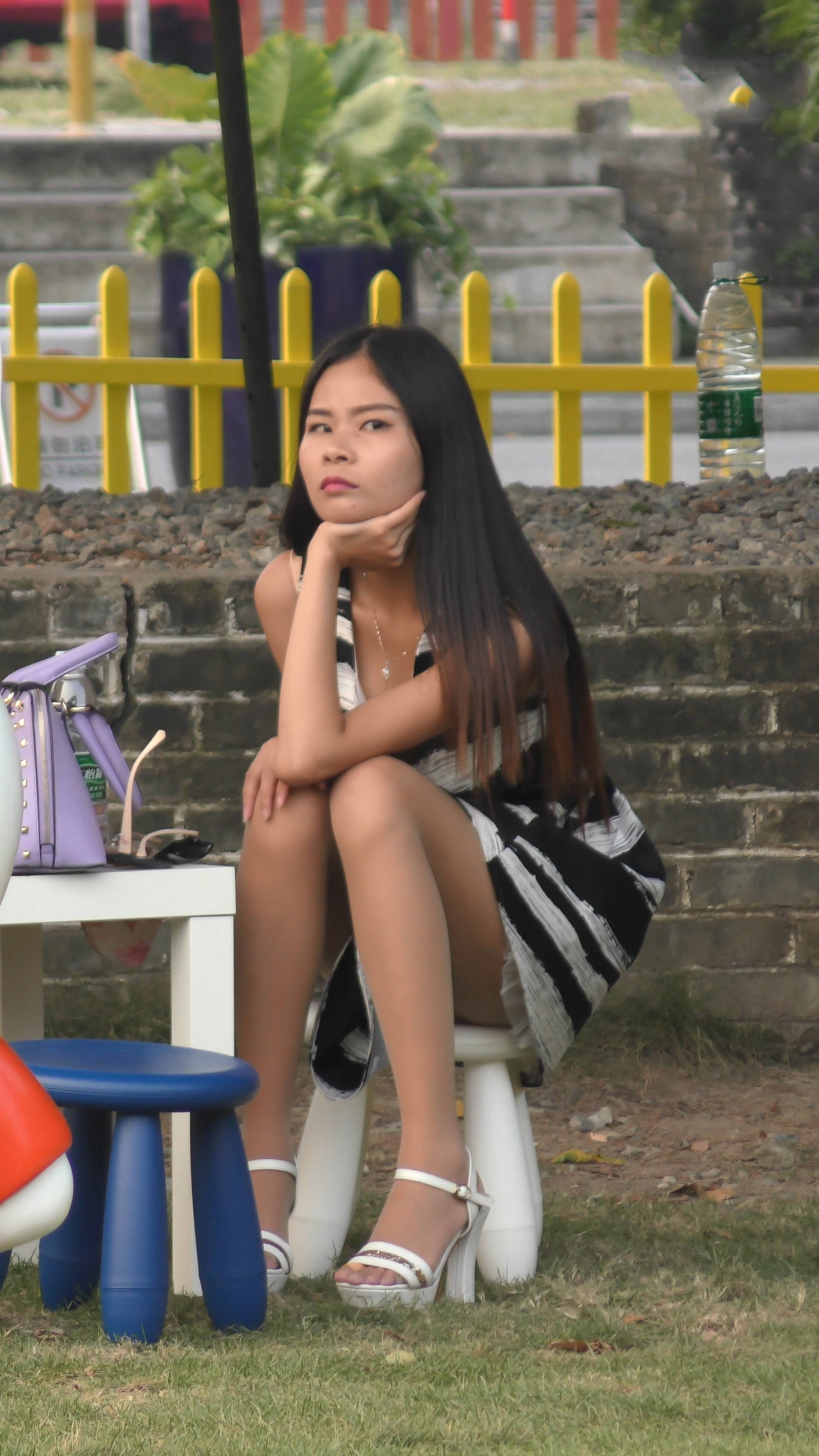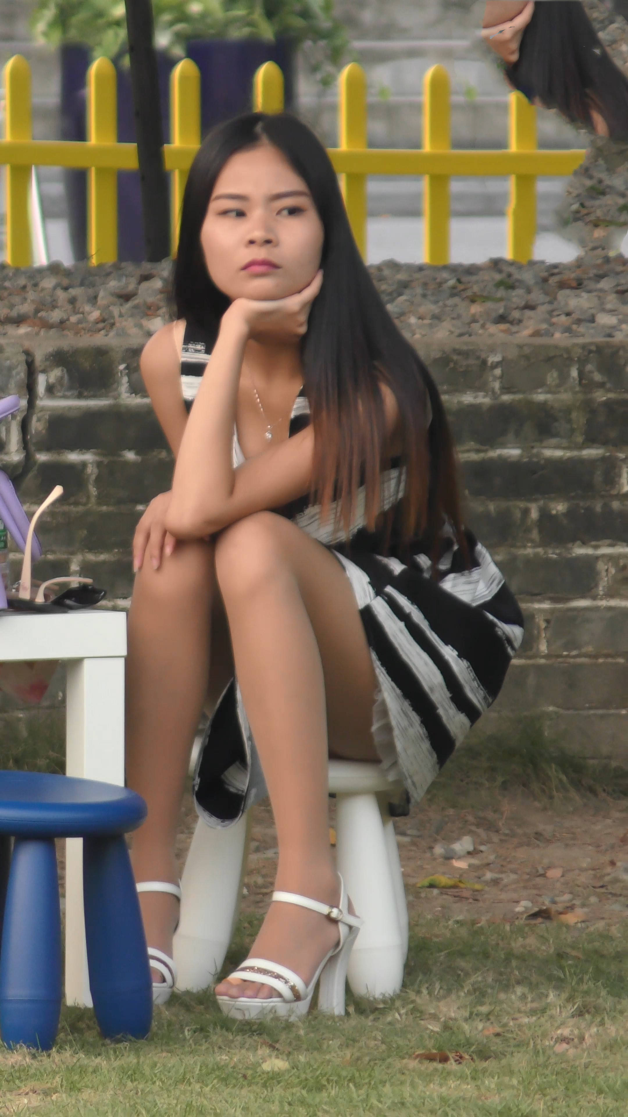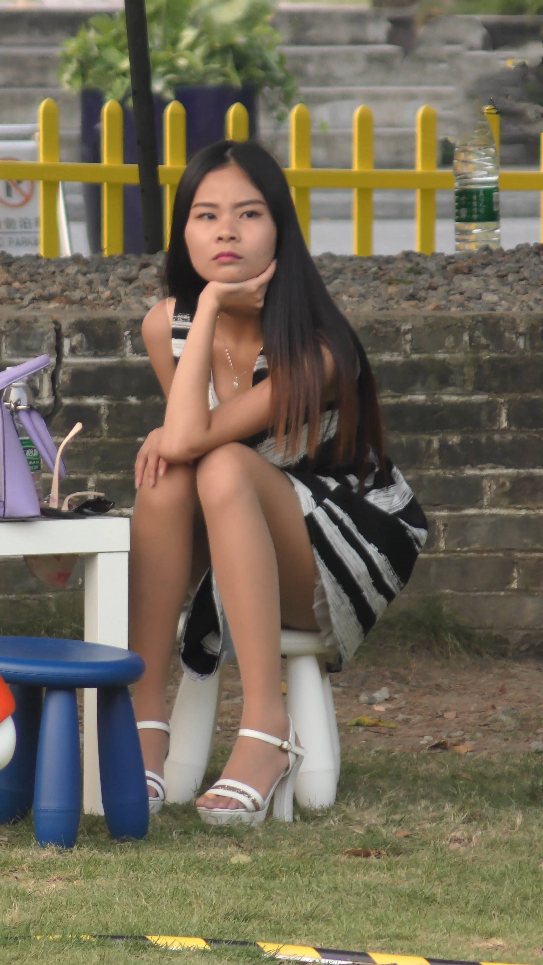 4k-公园石凳上发呆的肉丝袜连衣裙妹纸 编号7593 |