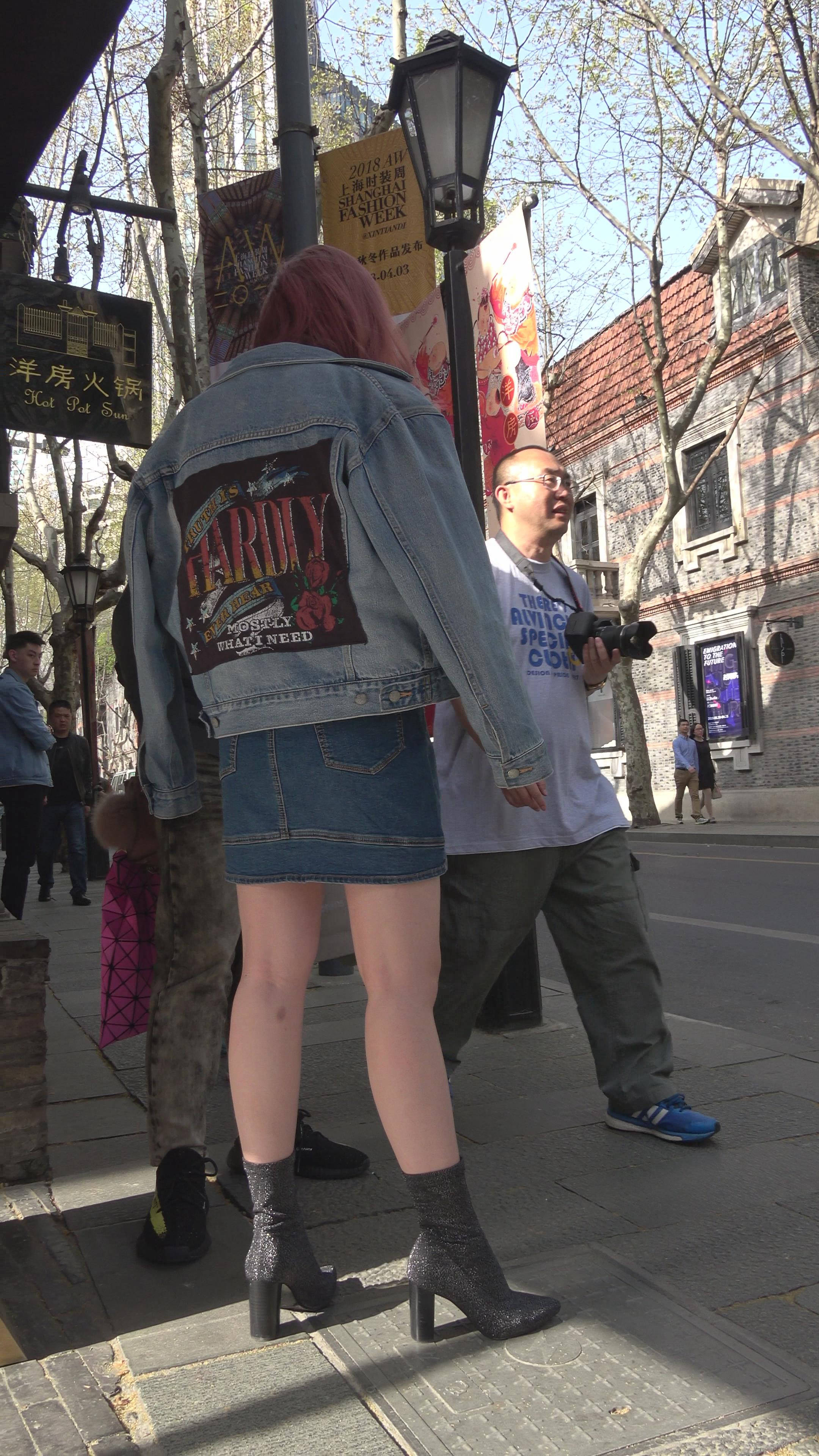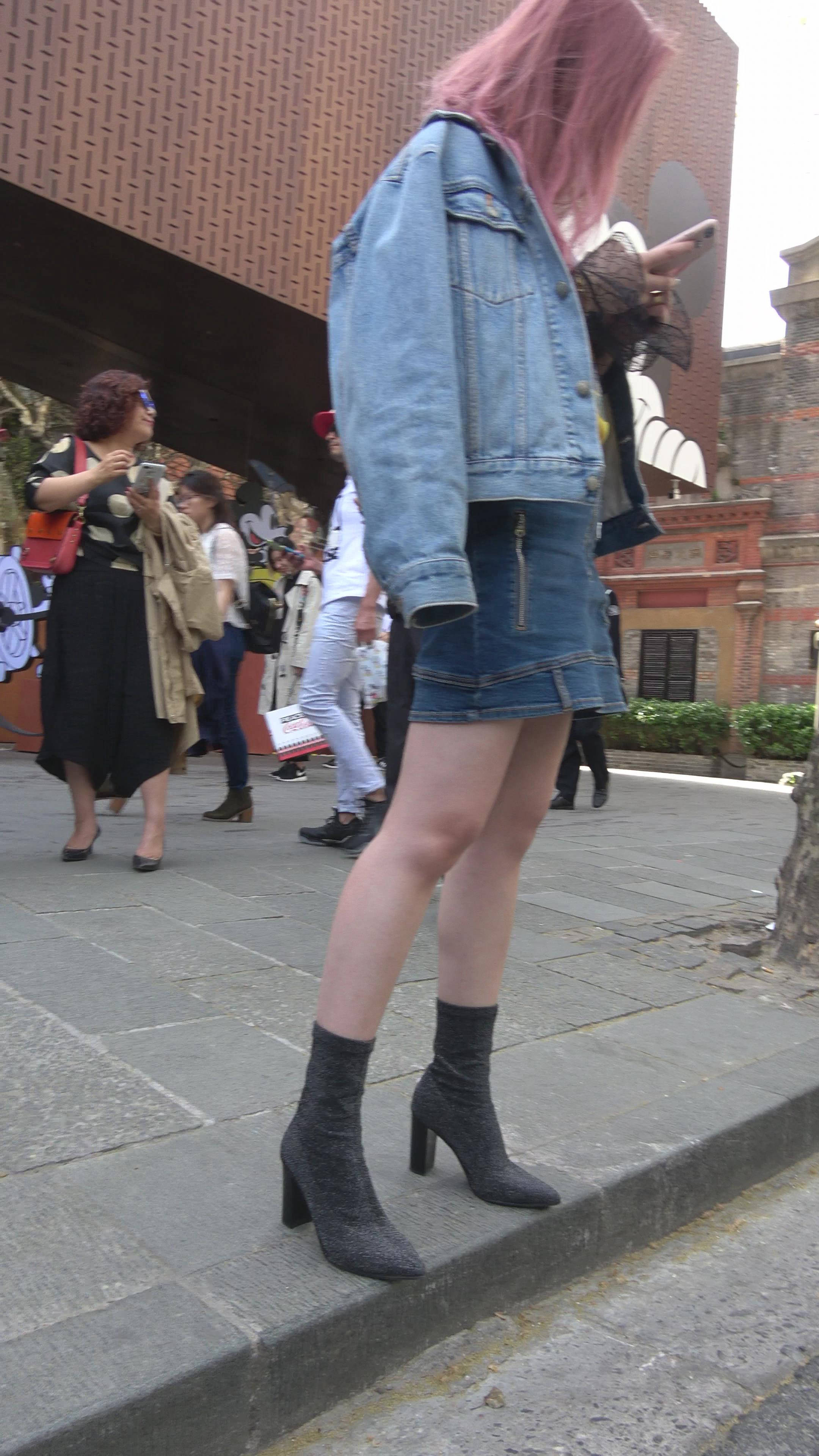 4K - 牛仔裙牛仔外套街拍美女太性感 编号7736 |