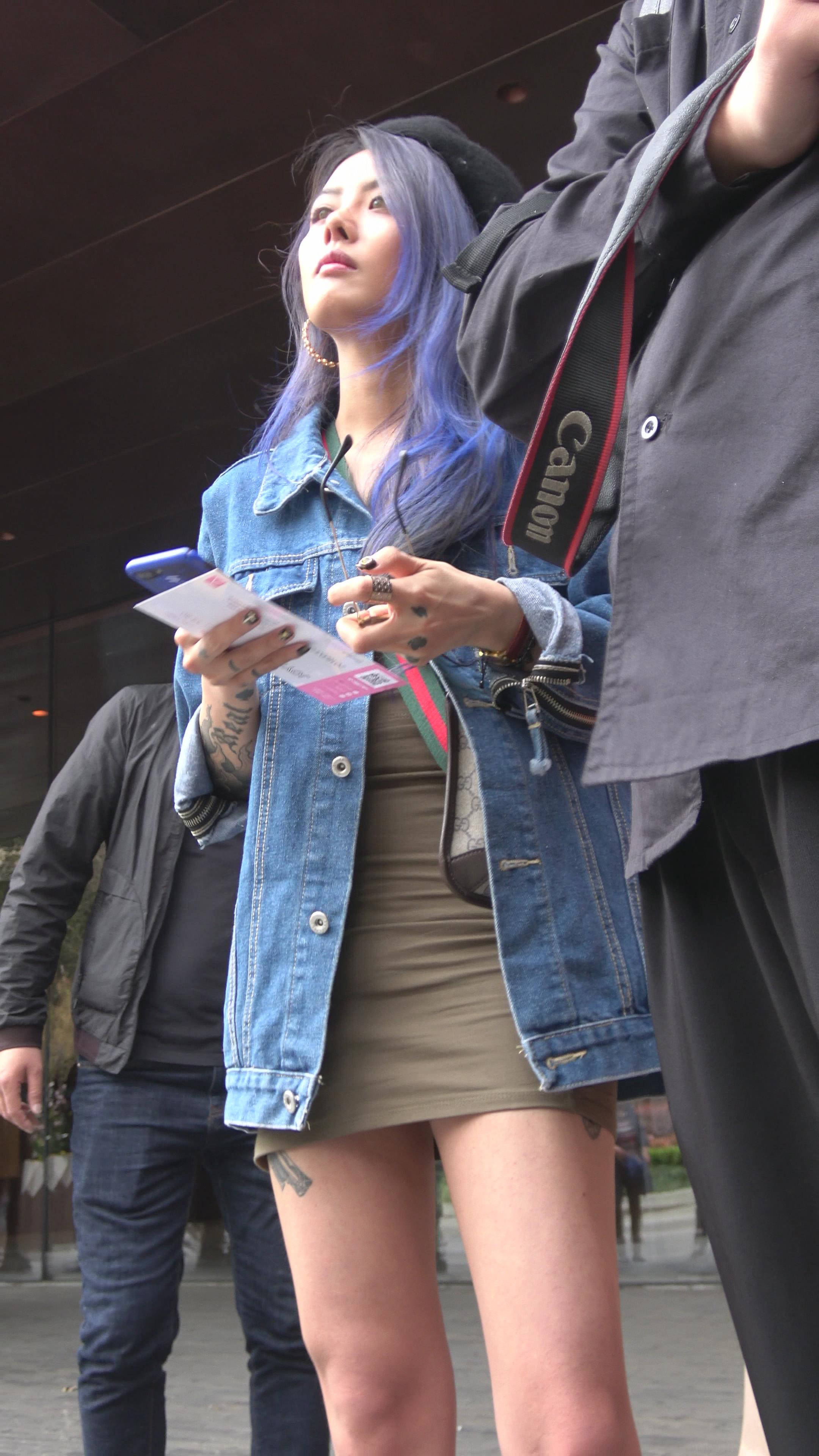 4K包臀裙牛仔外套街拍美腿小墨镜MM 编号7740 |