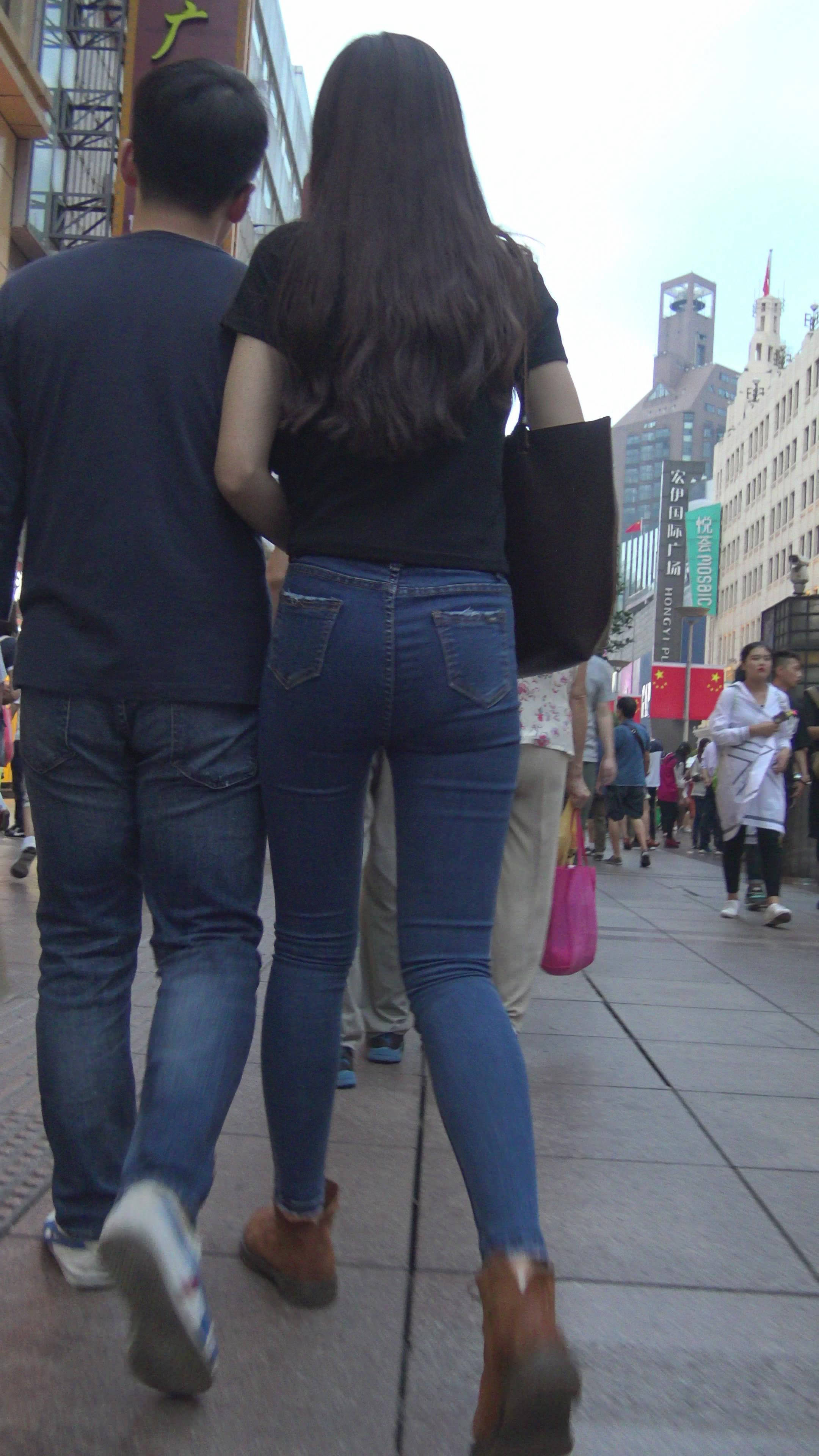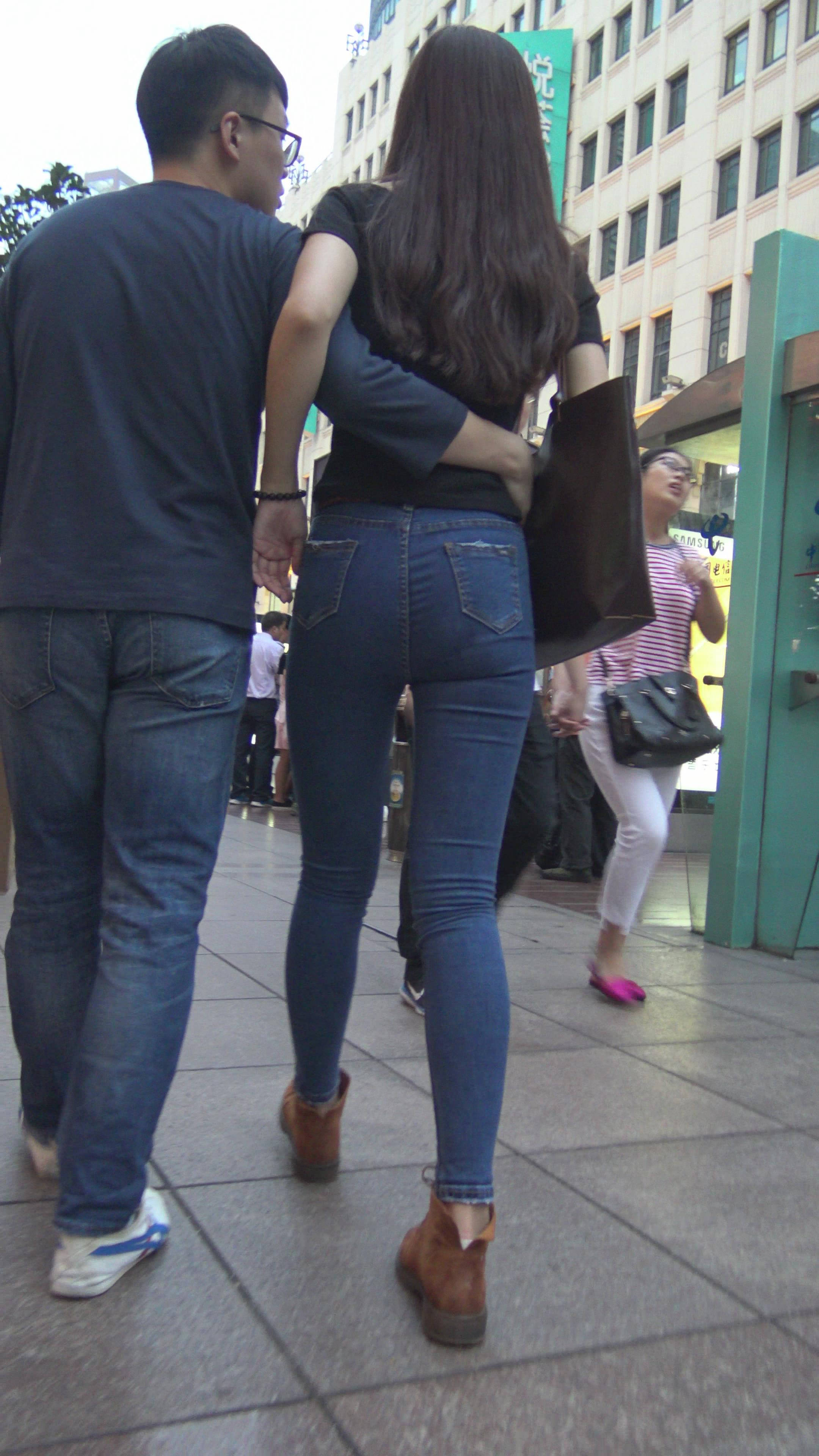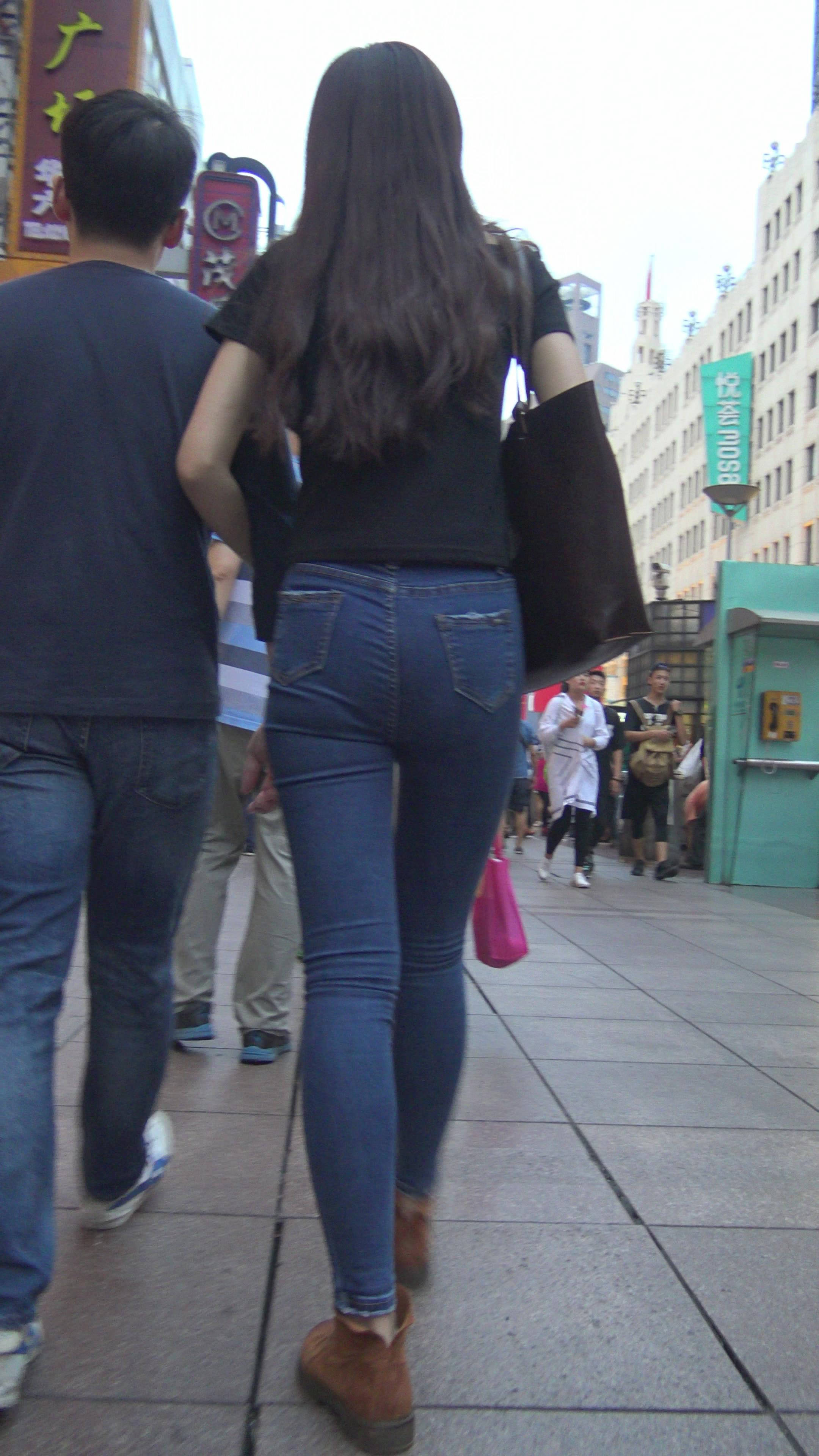 4K黑T恤紧身牛仔裤小美女的极品美臀 编号7744 |