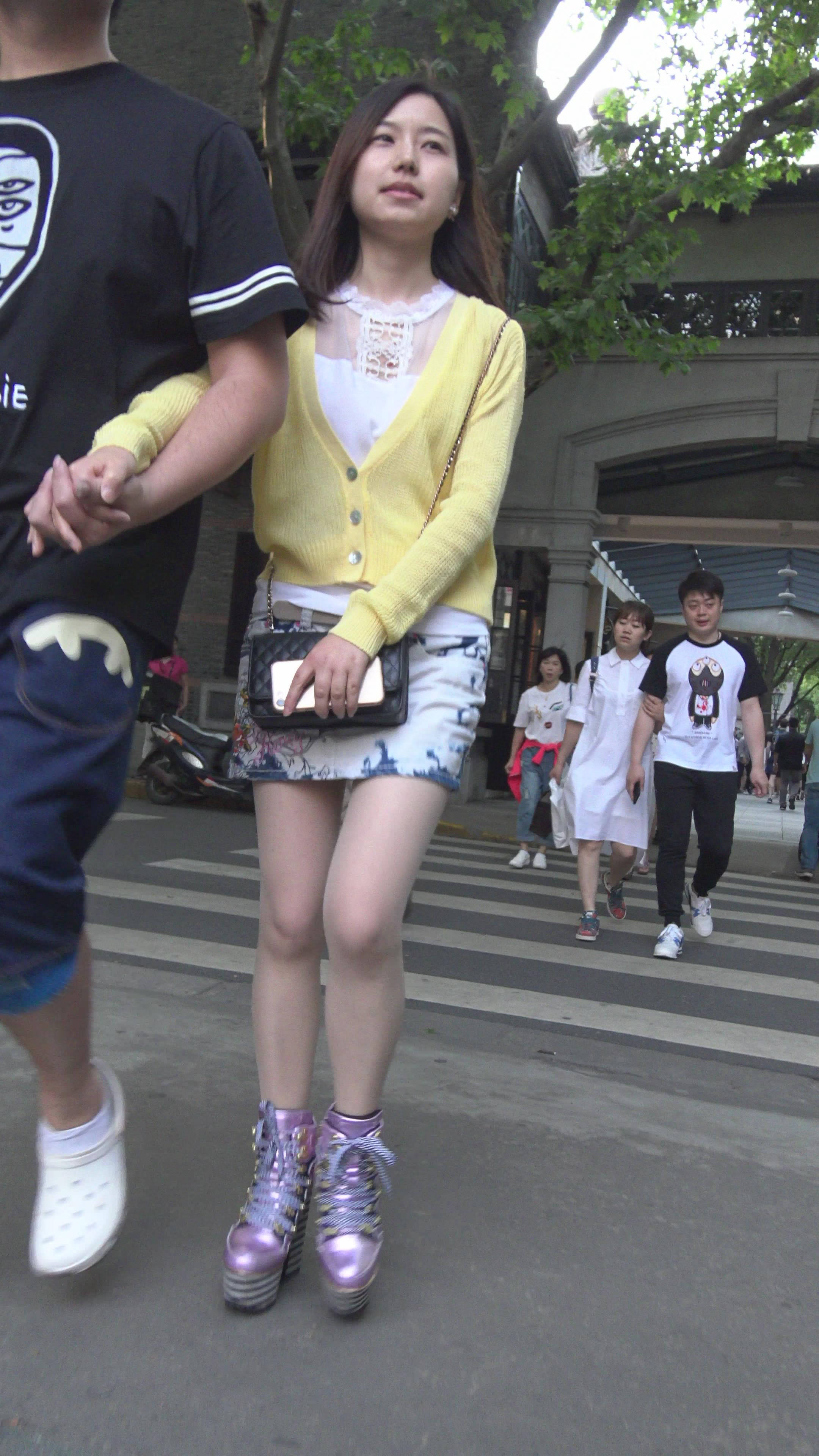4K 黄色针织衫街拍短裙小姐姐 编号7775 |
