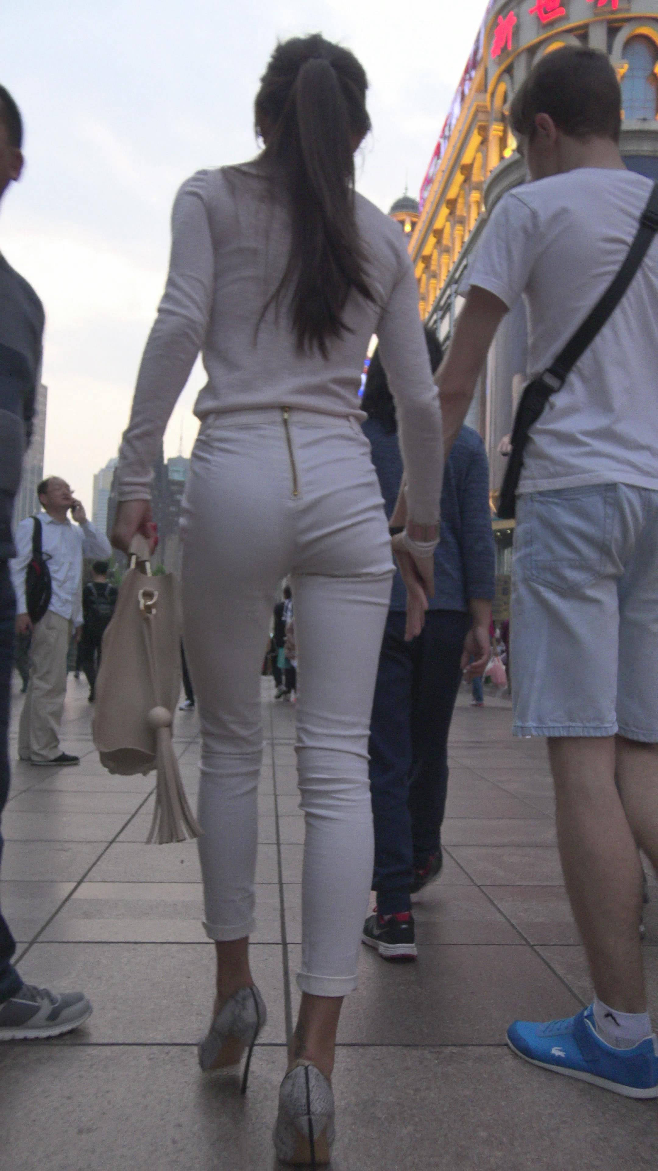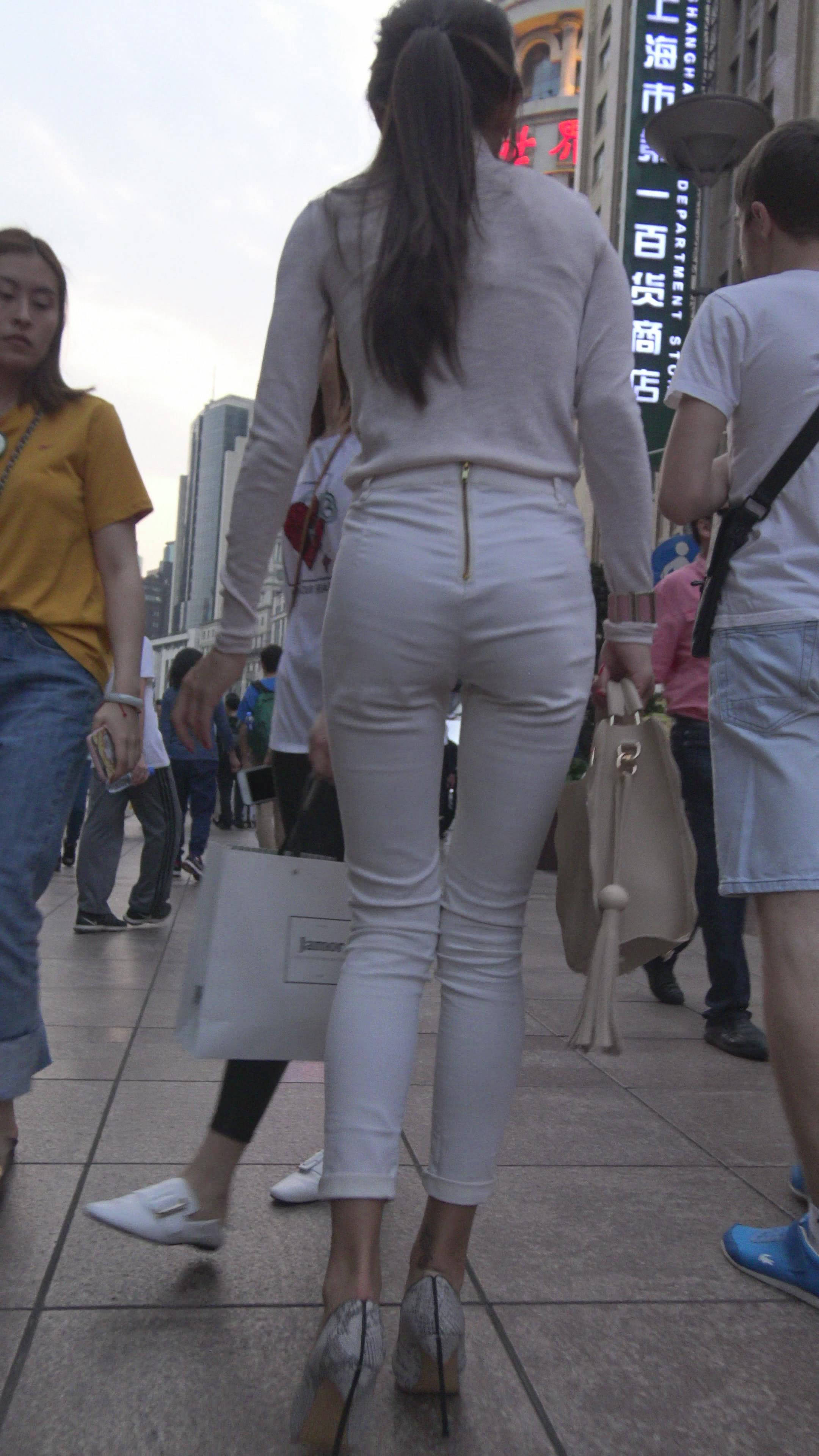4K高跟鞋高挑紧身白裤气质大美女 编号7795 |