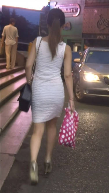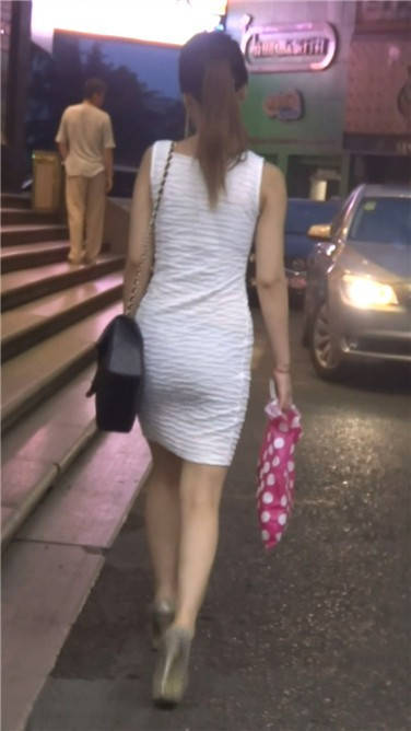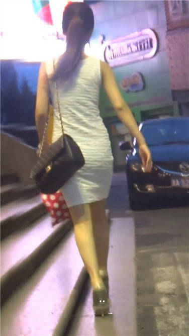 街拍白色连衣裙高跟鞋美女 编号3632