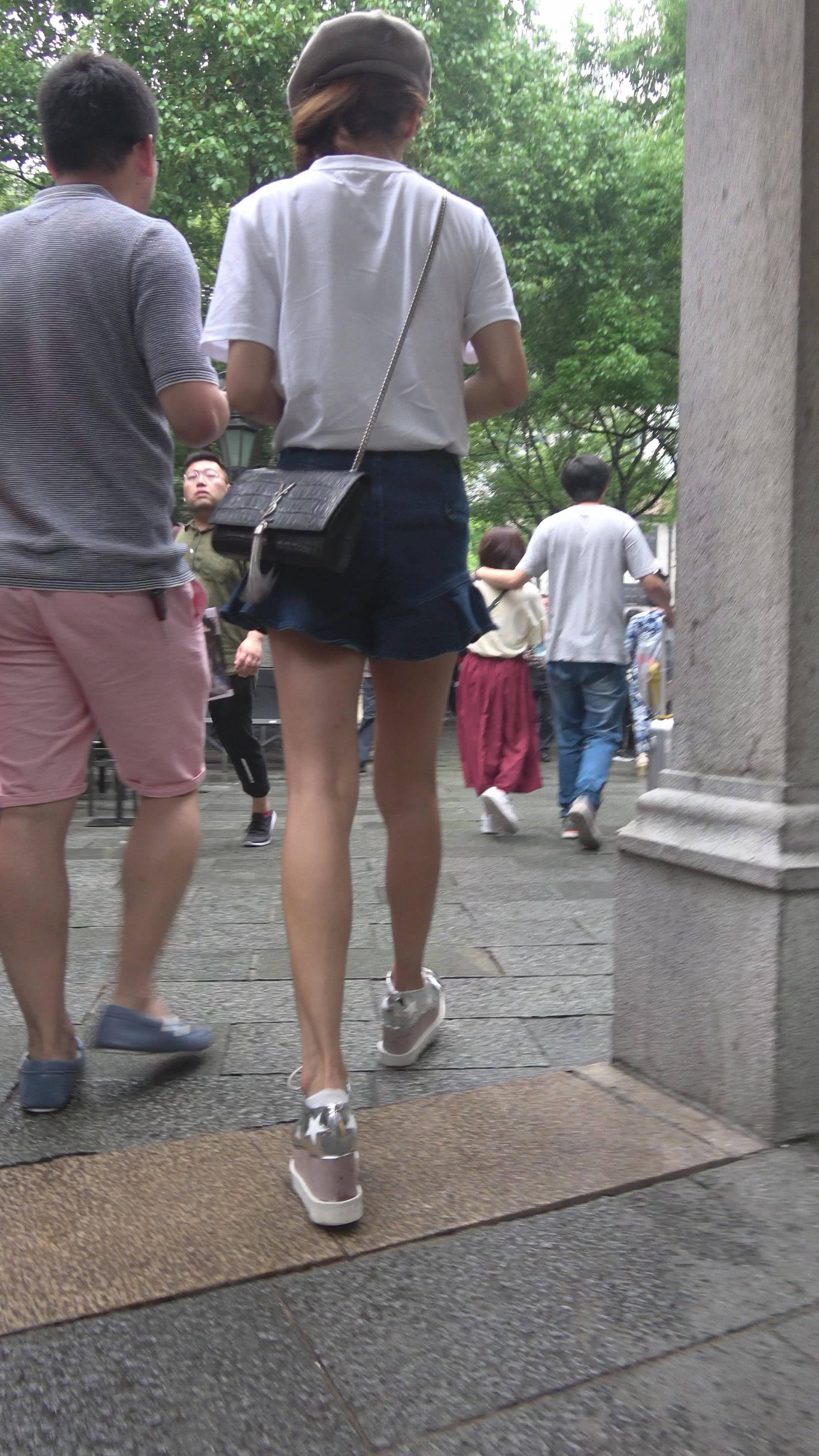 4K 街拍身材苗条的白T恤牛仔短裙美女 编号7875 |