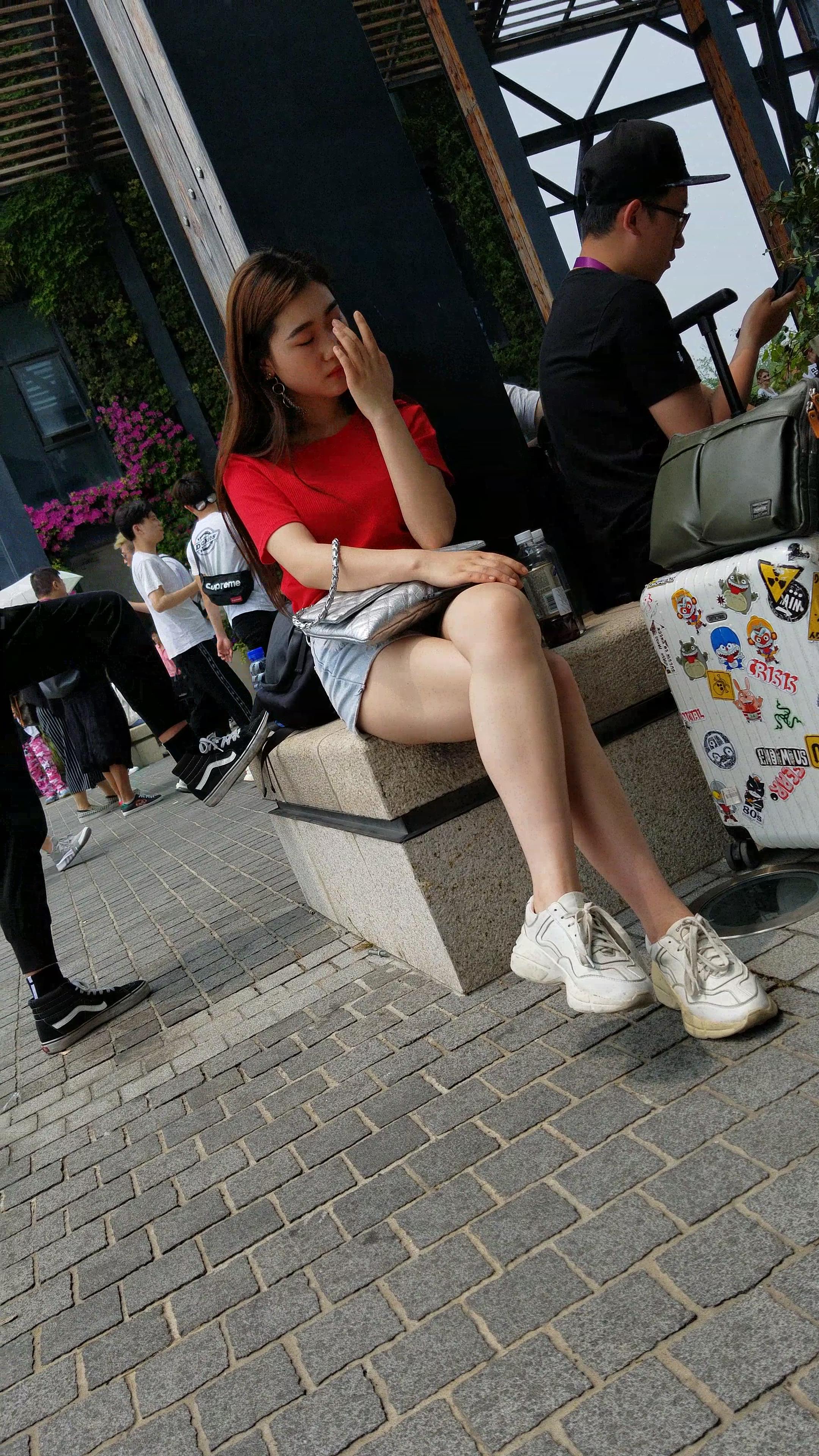 红T恤牛仔热裤白皙美腿小姐姐美若天仙 编号5191 |