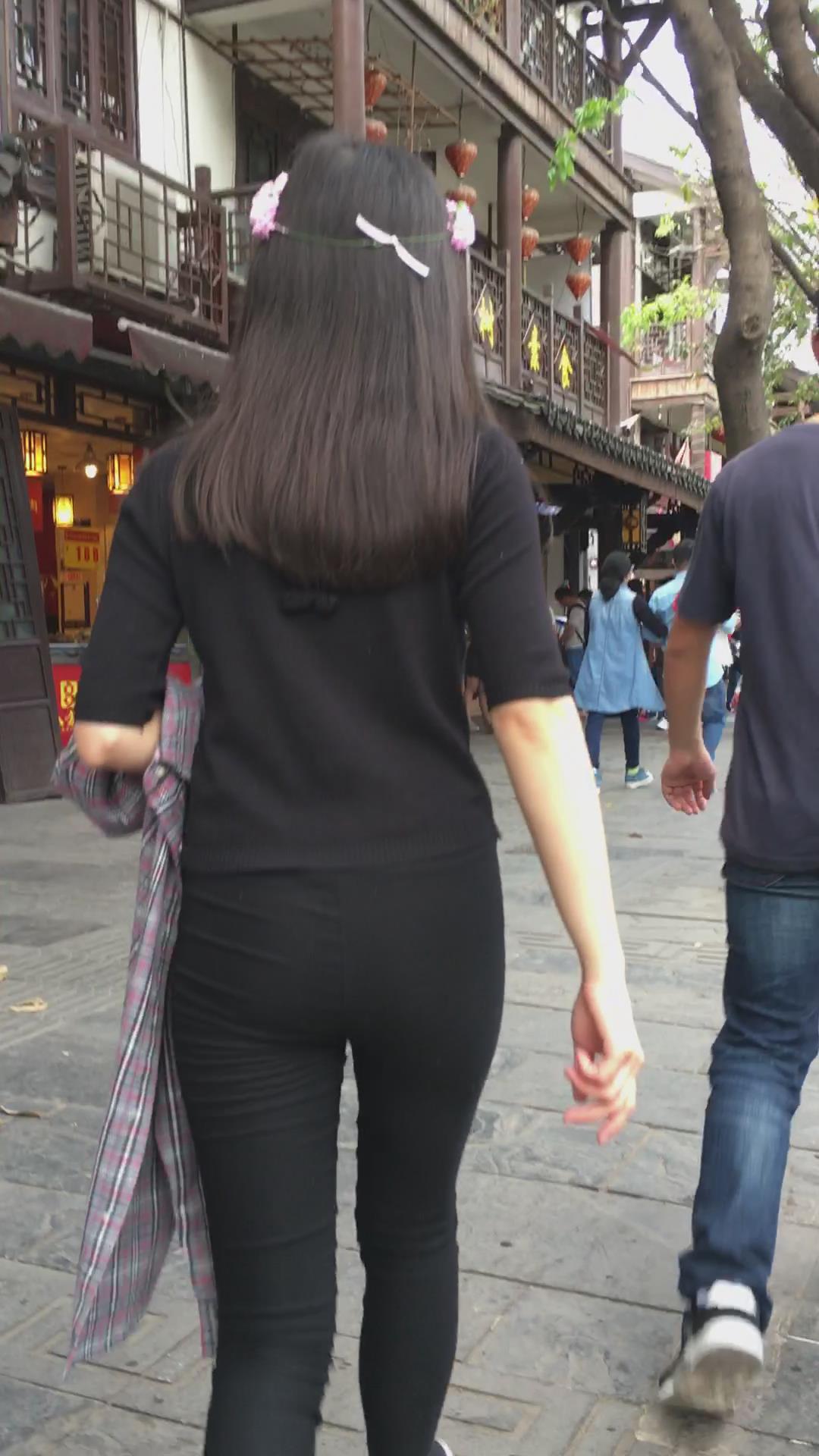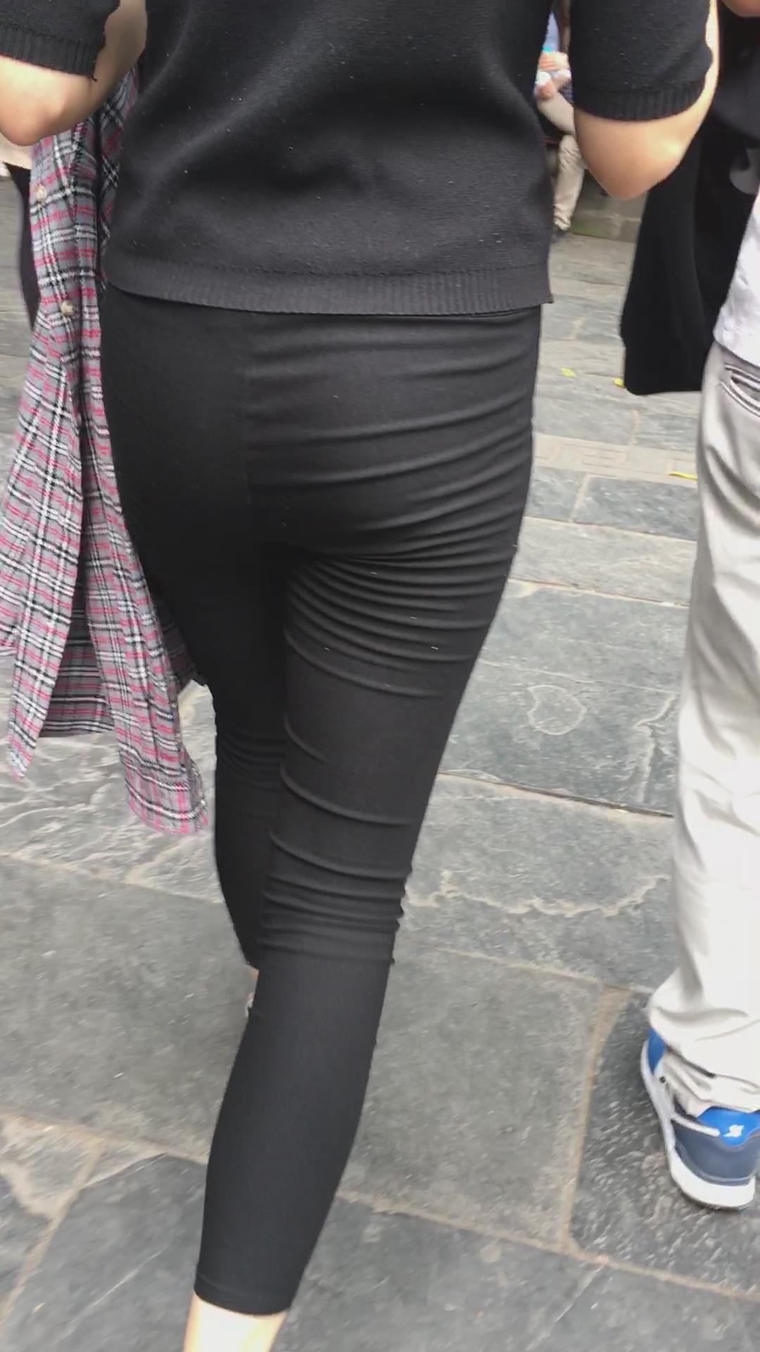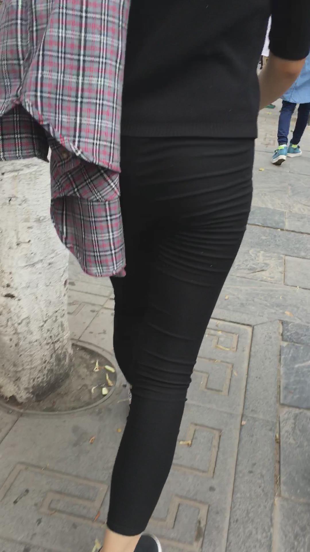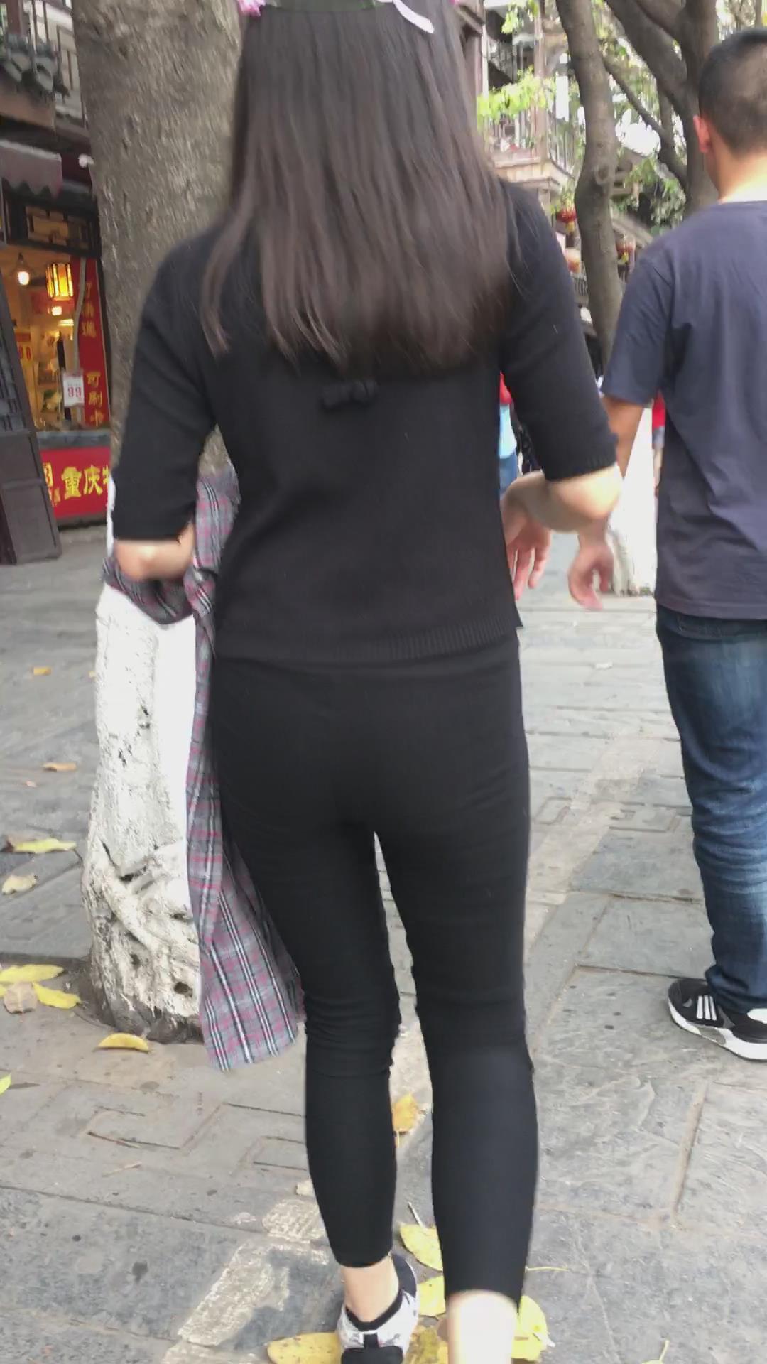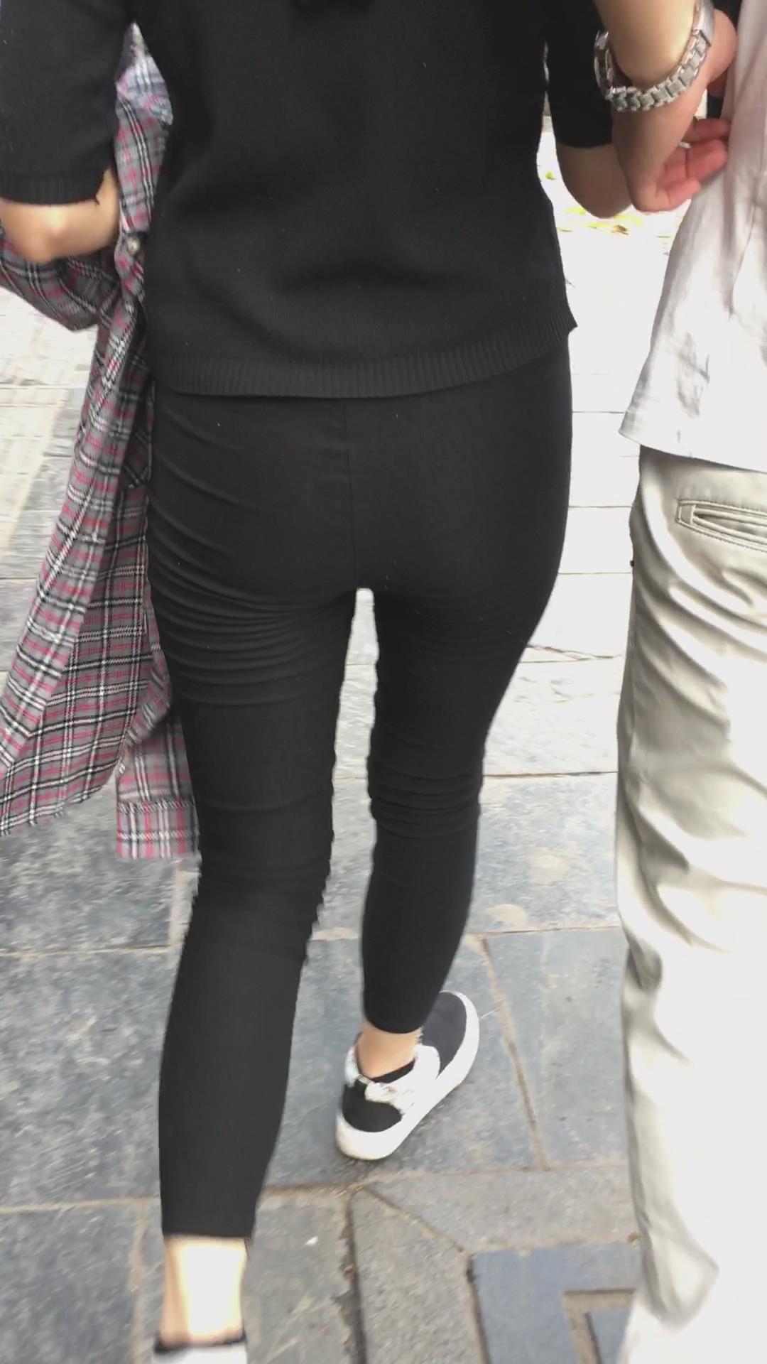 街拍黑色紧身裤苹果臀美眉 编号5231 |