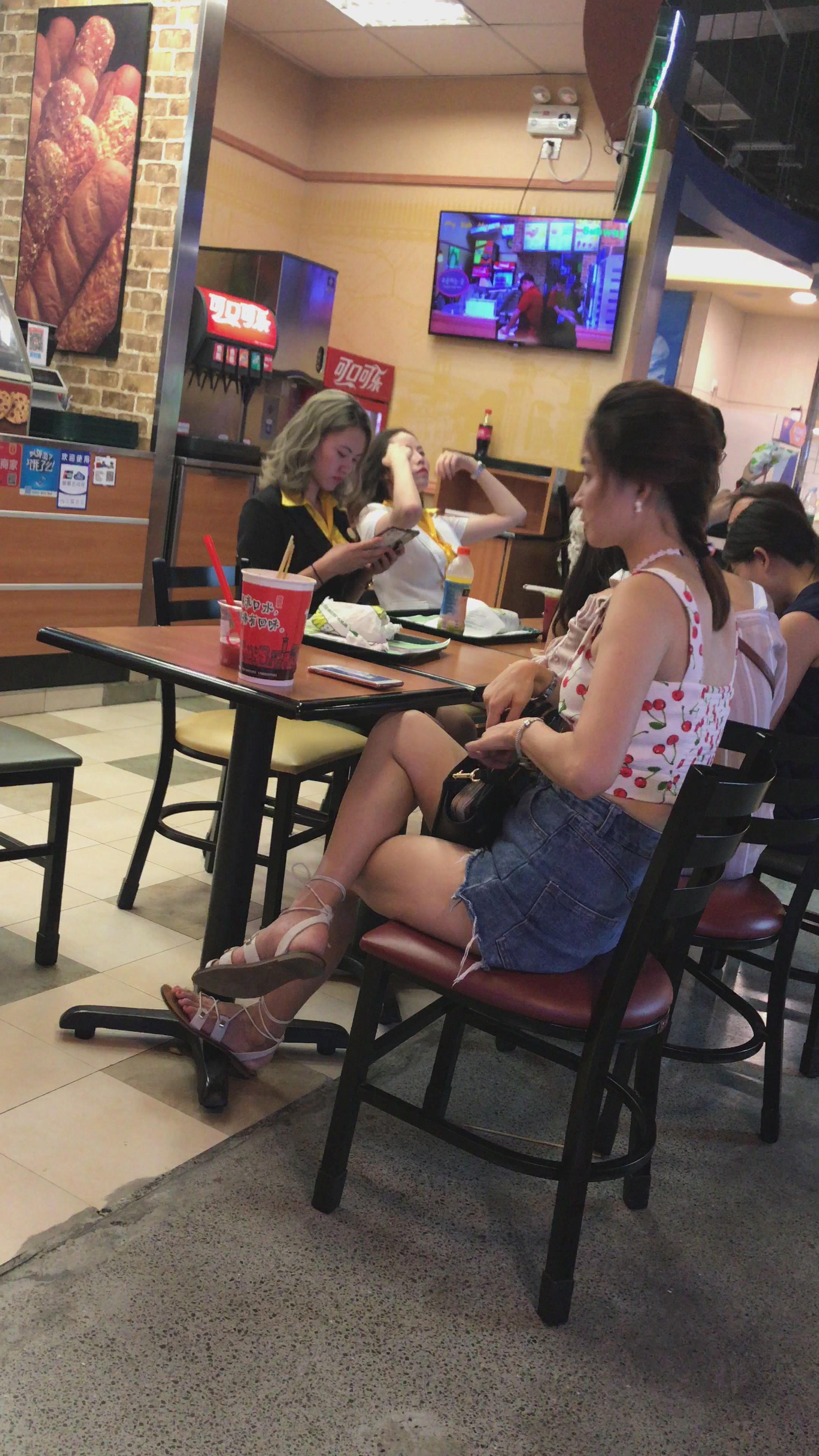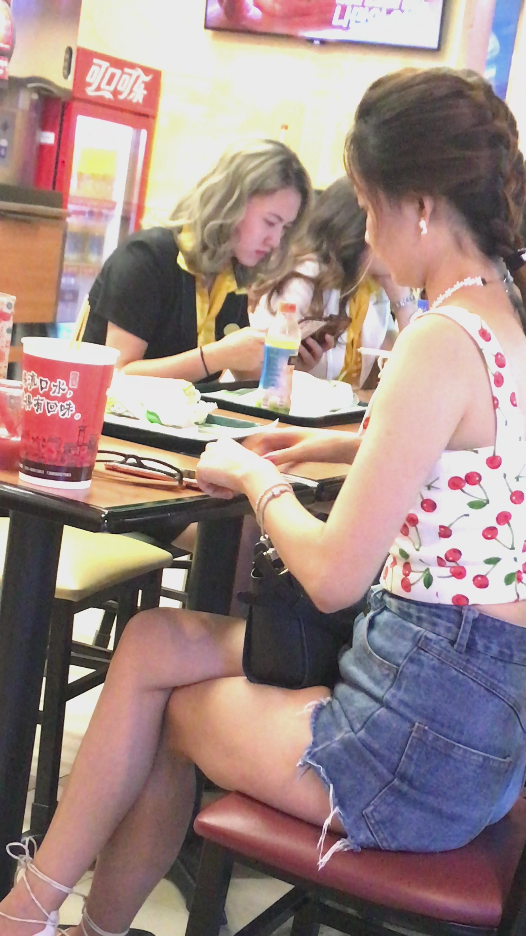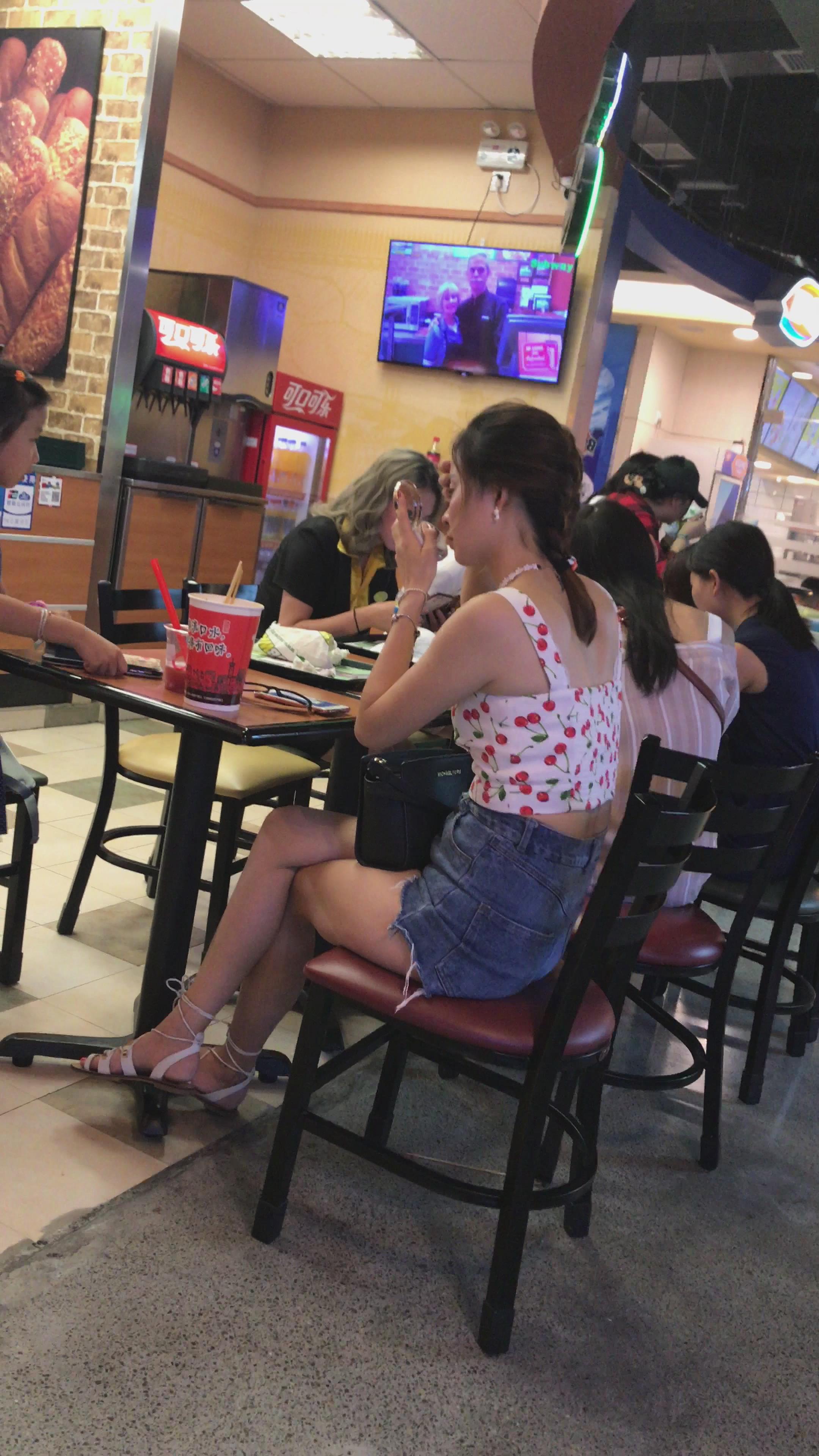 4K - 餐厅吃饭的高腰热裤吊带极品身材美女 编号5281 |