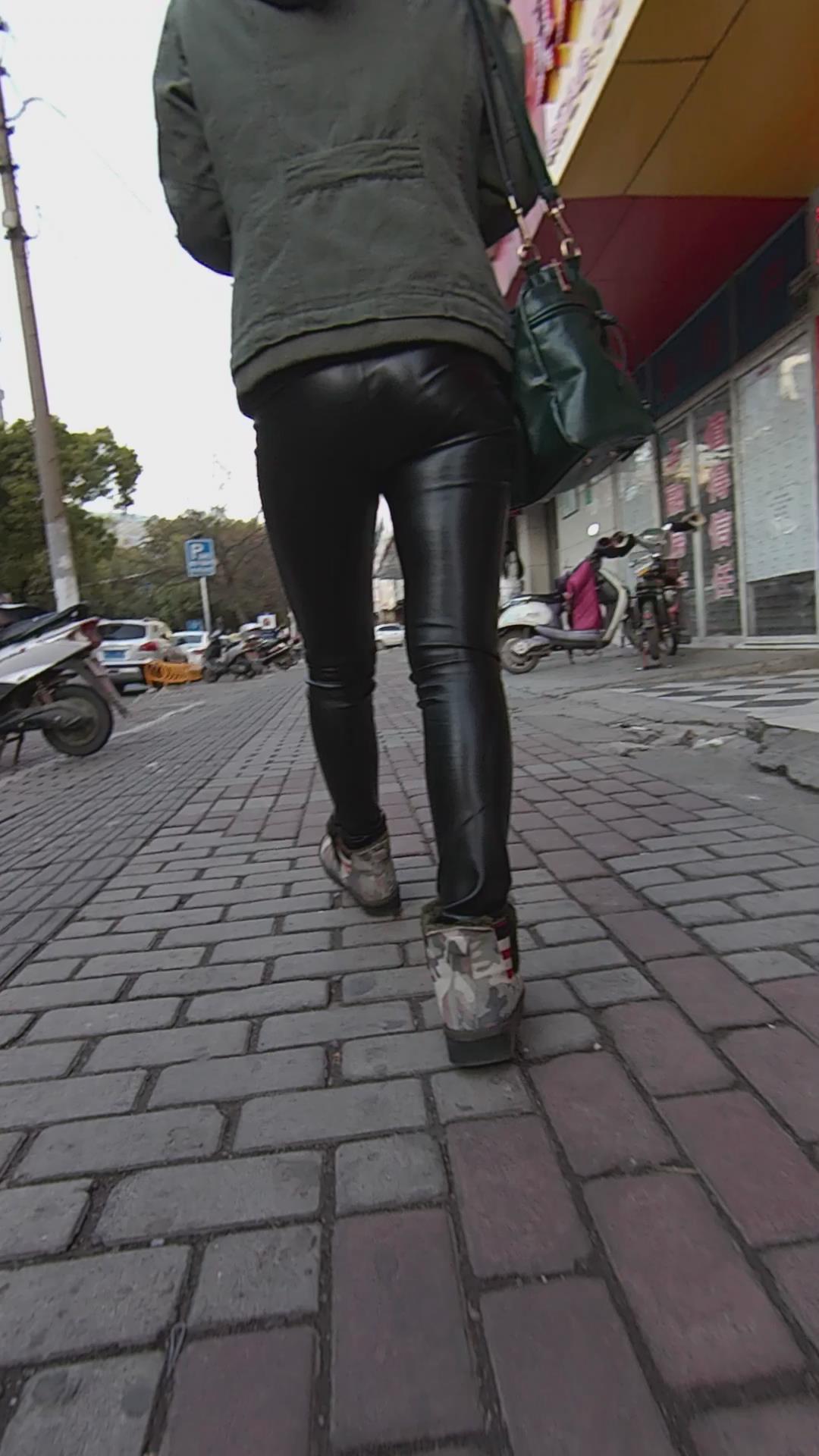 街拍黑色紧身皮裤美眉 编号5342 |