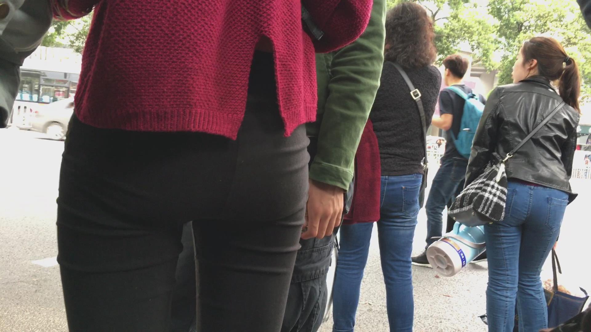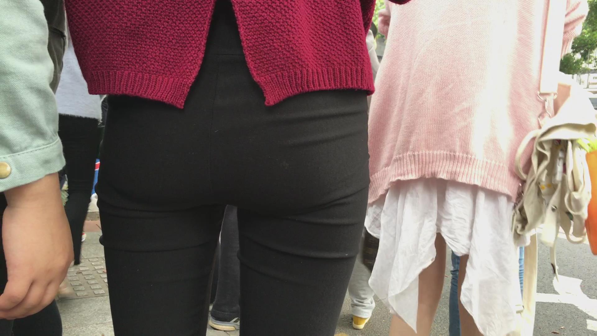 街拍黑色紧身裤宽臀美女 编号5358 |