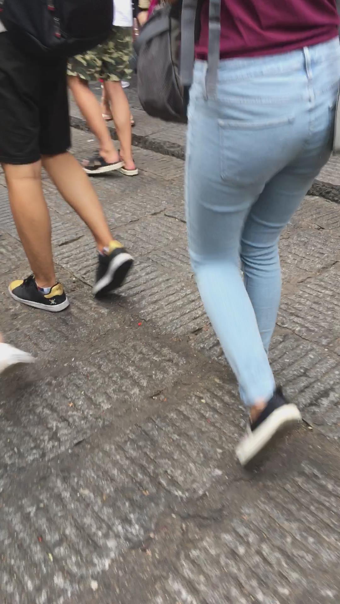 街拍紧身蓝色牛仔裤妹纸 编号5379 |