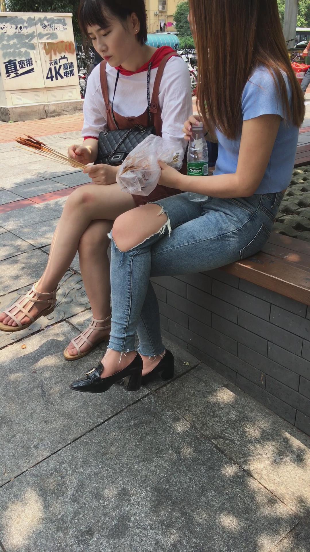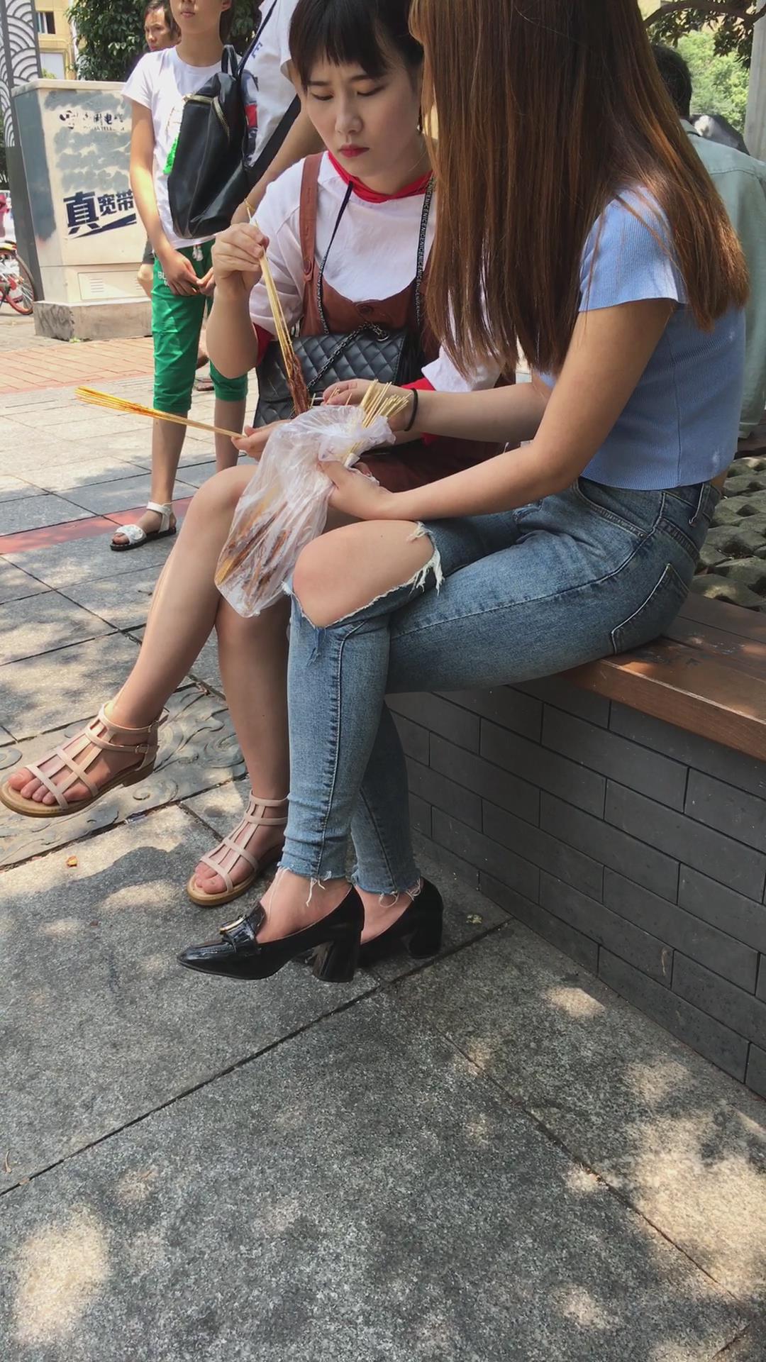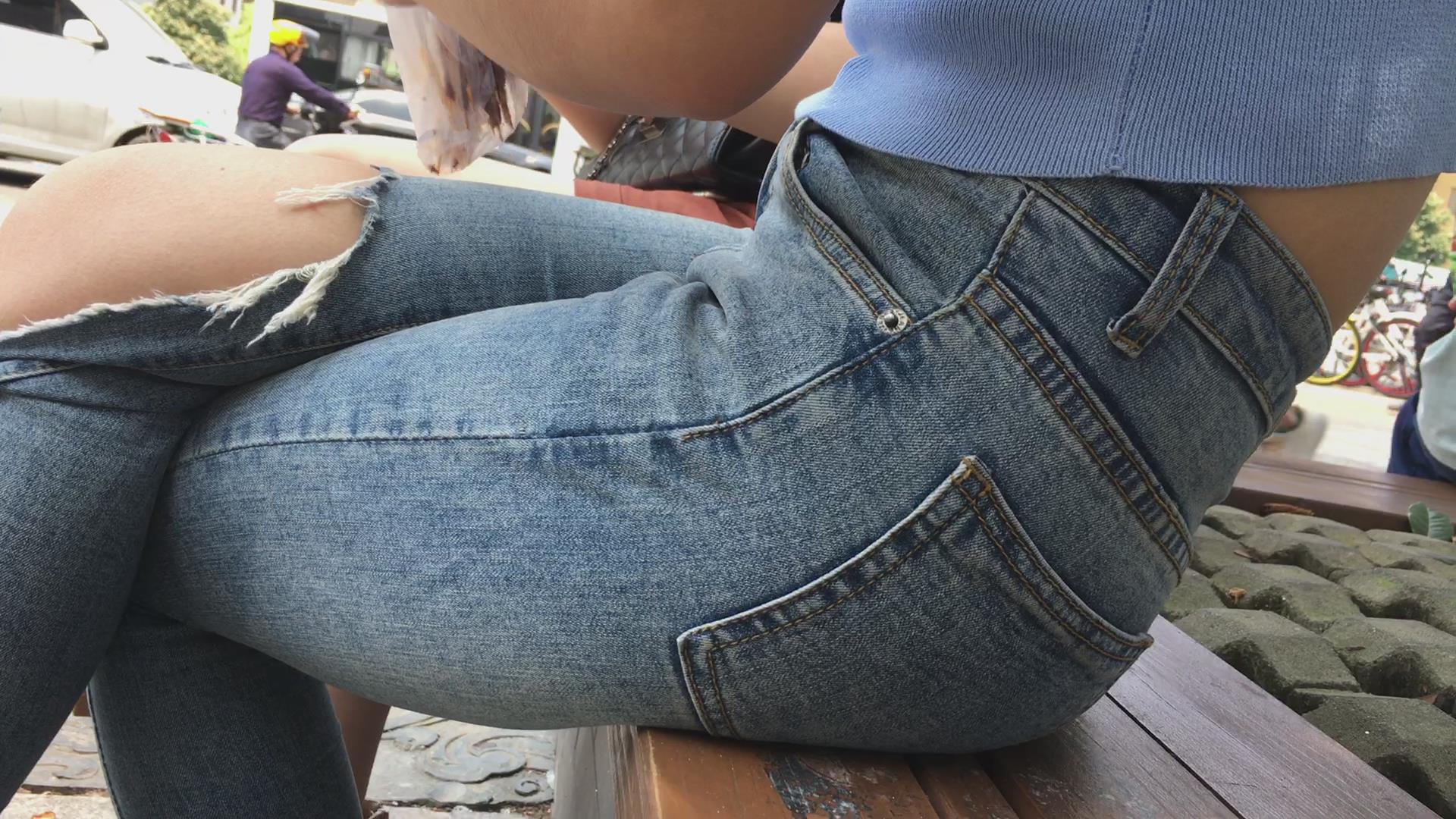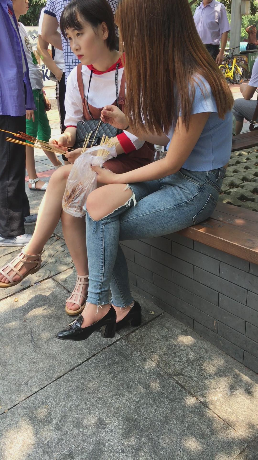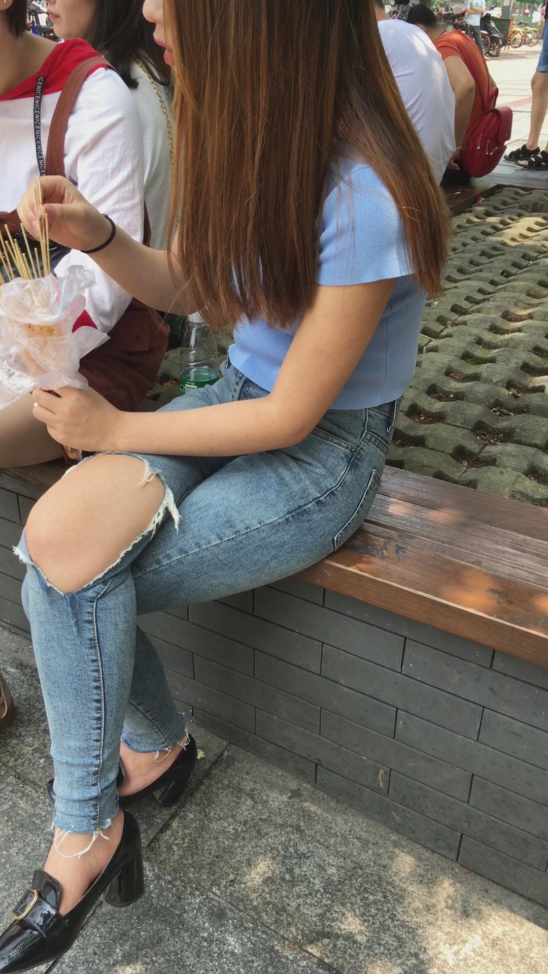 路边花坛跟闺蜜撸串的紧身蓝牛美女 编号5443 |