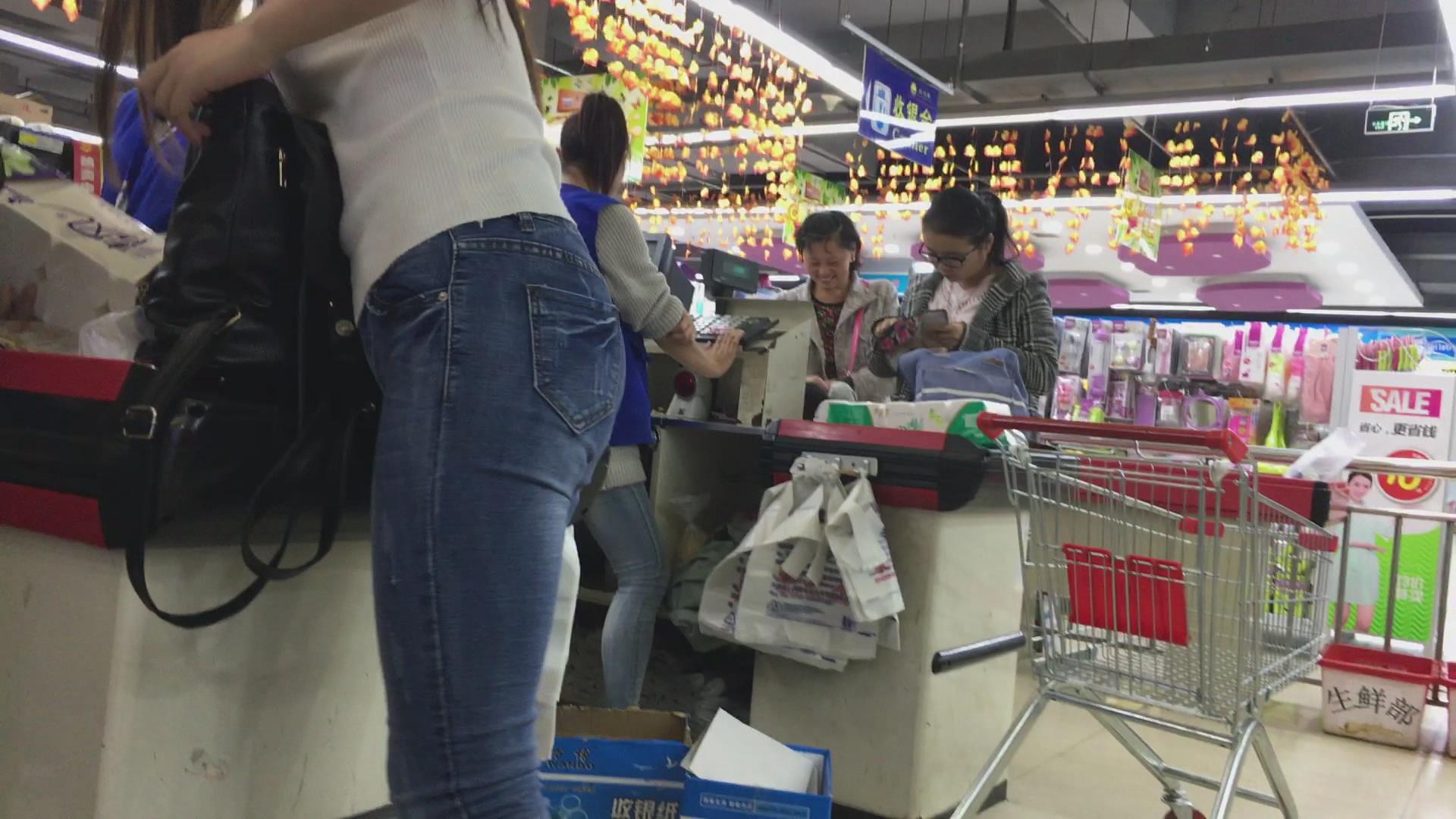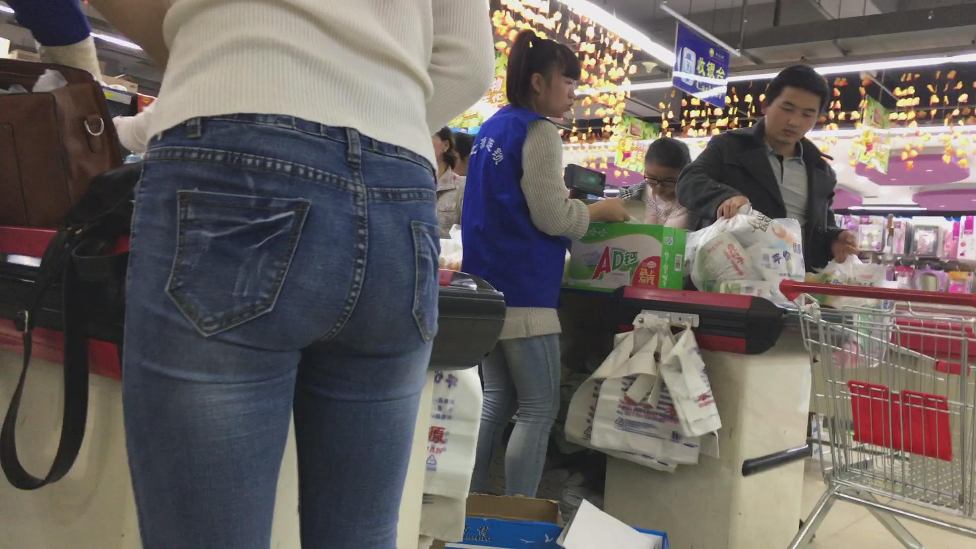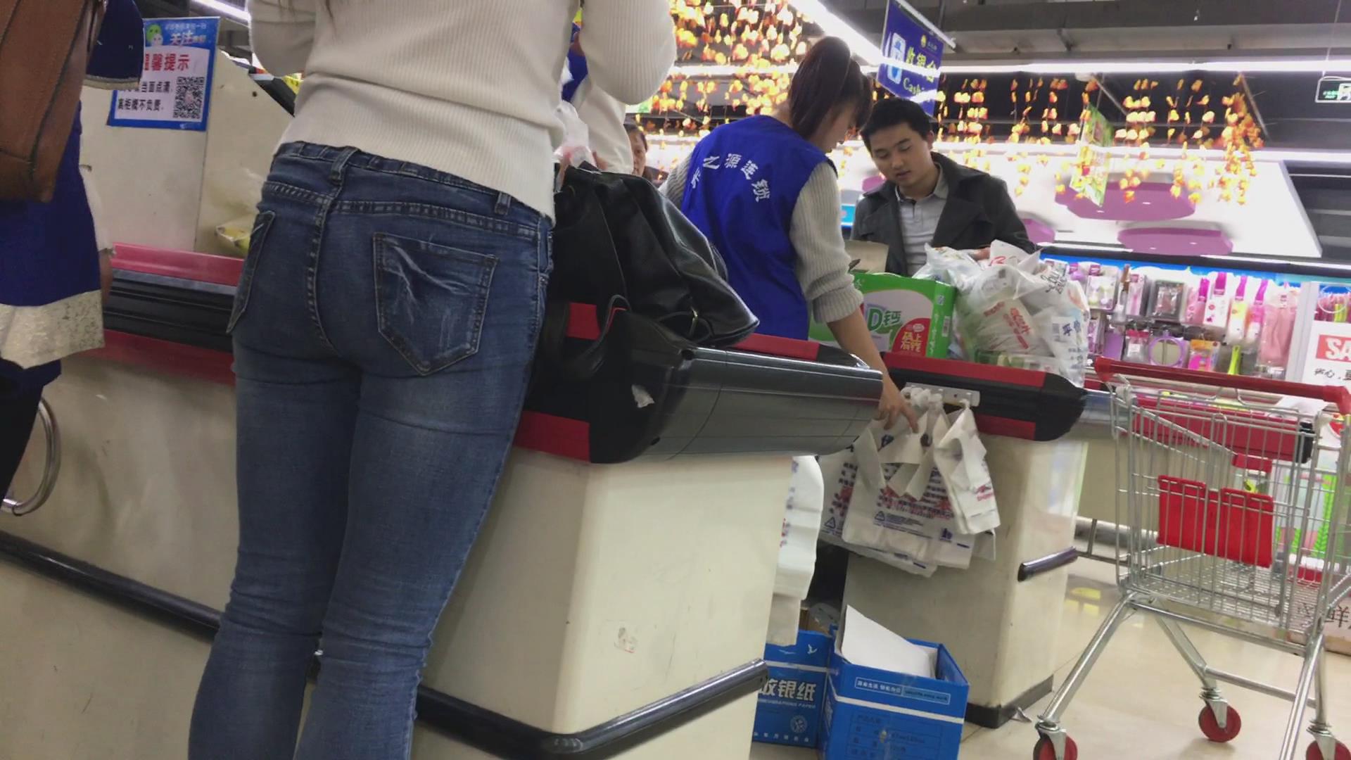 逛超市的紧身蓝色牛仔裤眼镜妹 编号5478 |