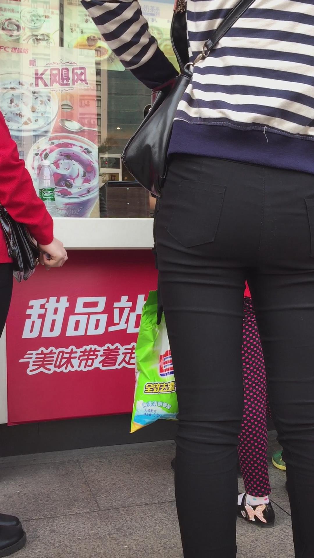 紧身黑裤吃货小美女排队买甜品,为了吃真能等 编号5499 |