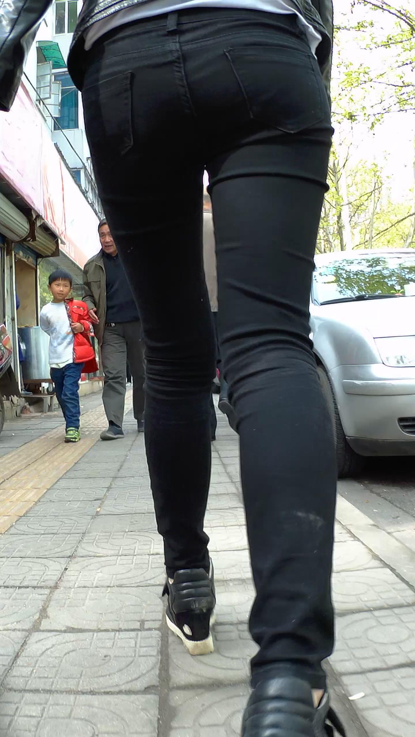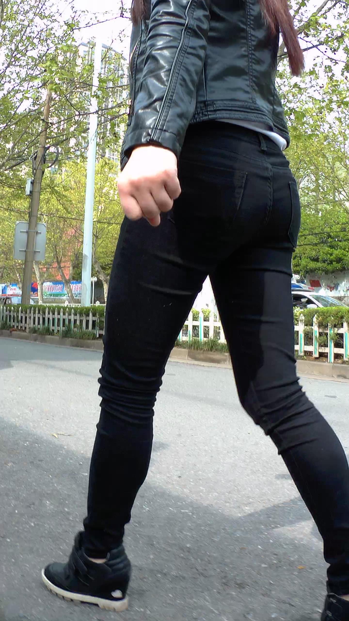 街头迷茫的黑色紧身裤皮衣妹子 编号5548 |