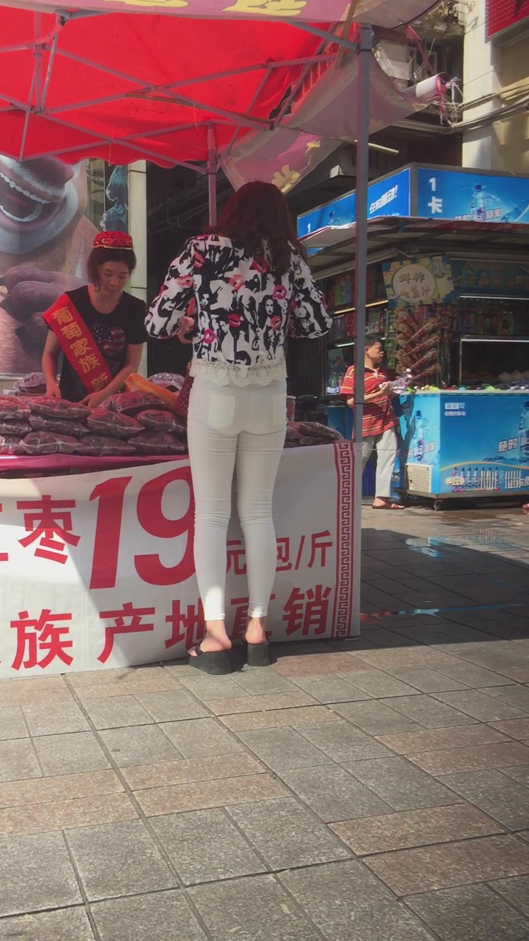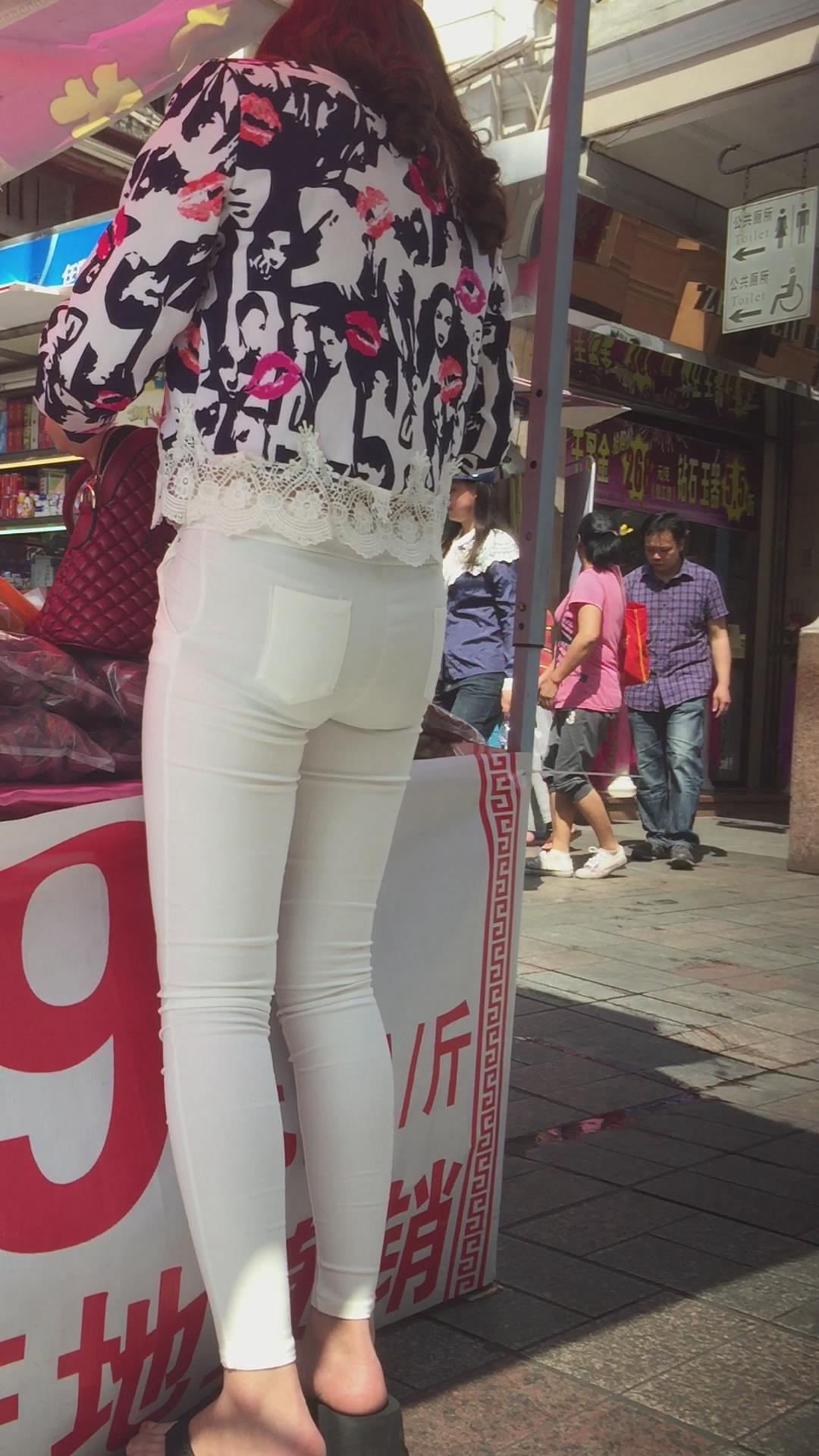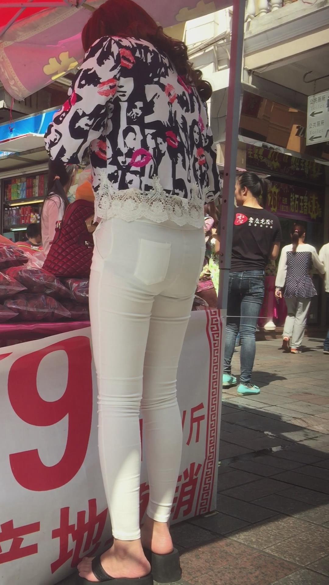 街拍紧身白裤碎花雪纺衫美眉 编号5560 |