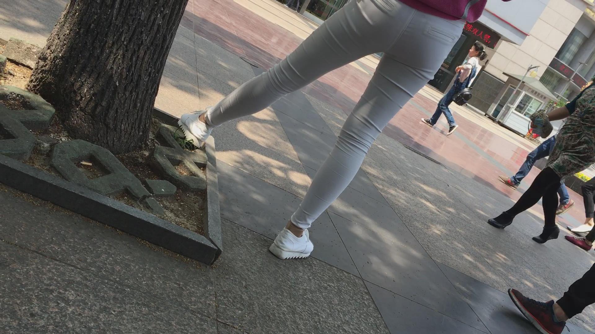 街拍紧身白裤粉衣美女 编号5625 |