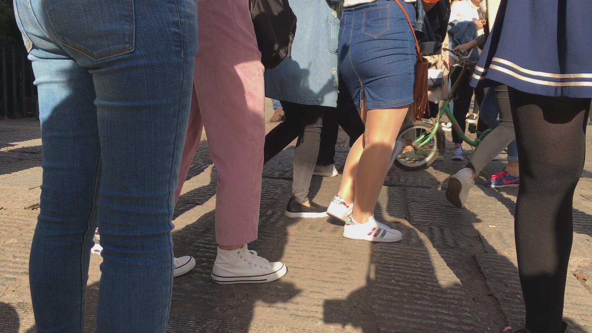 街拍超紧身蓝色牛仔裤宽臀美女 编号5633 |