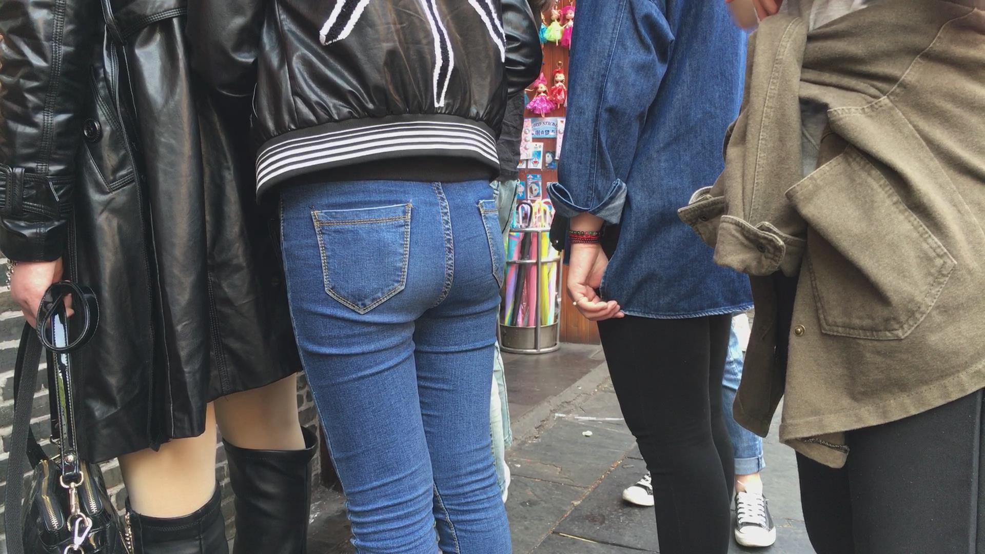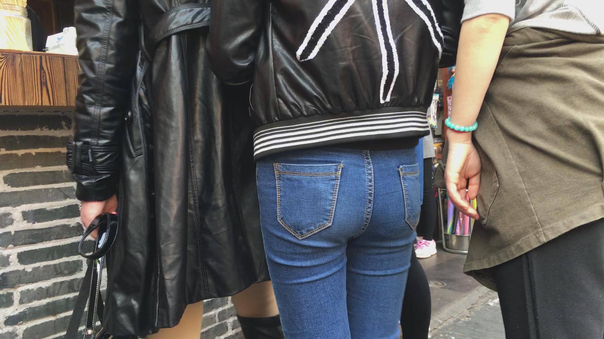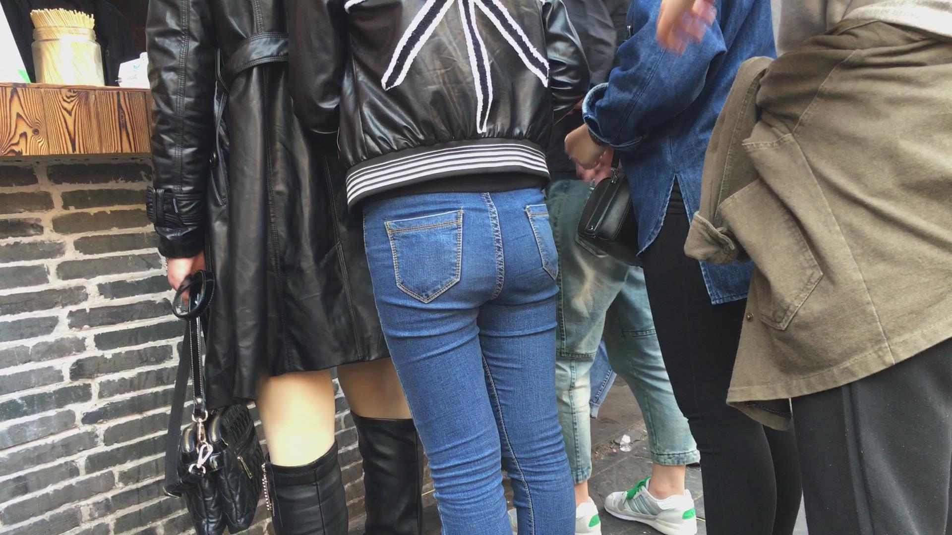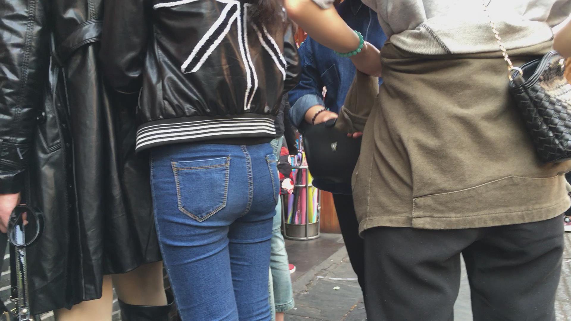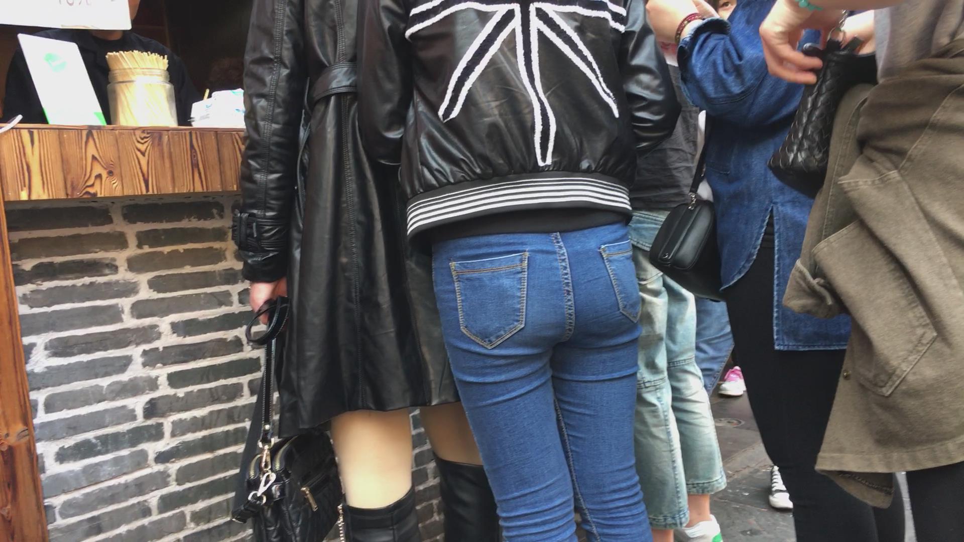 极品紧身蓝色牛仔裤妹子,在排队买东西 编号5722 |