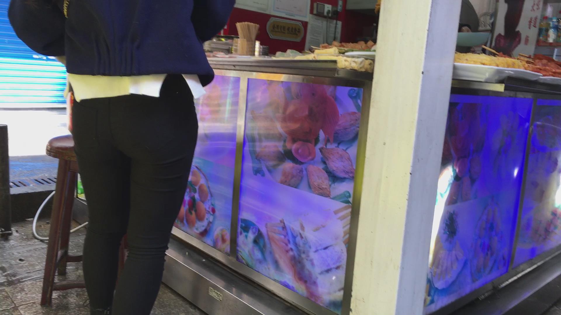 圆臀紧身黑裤小美女买鸡排 编号5730 |