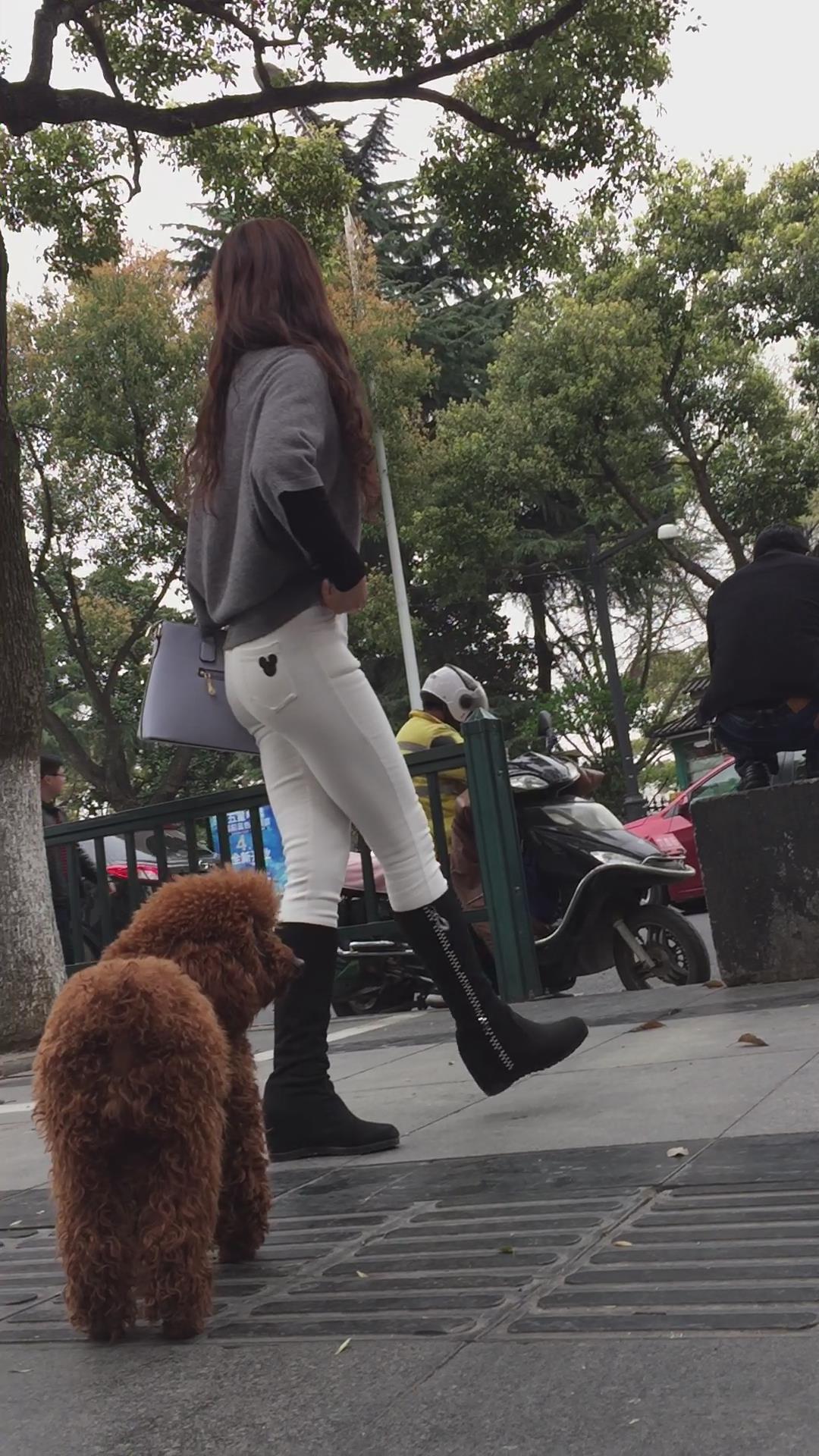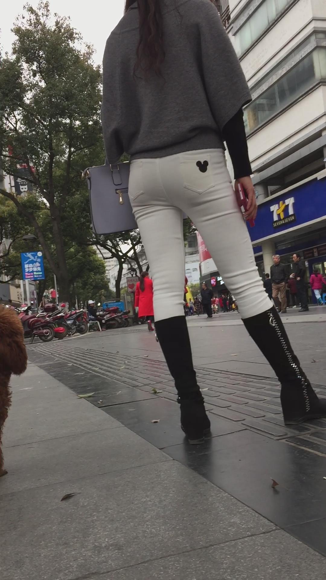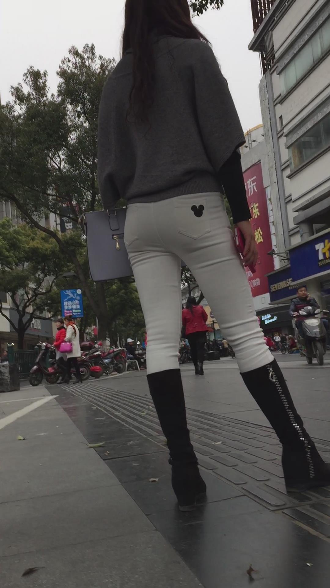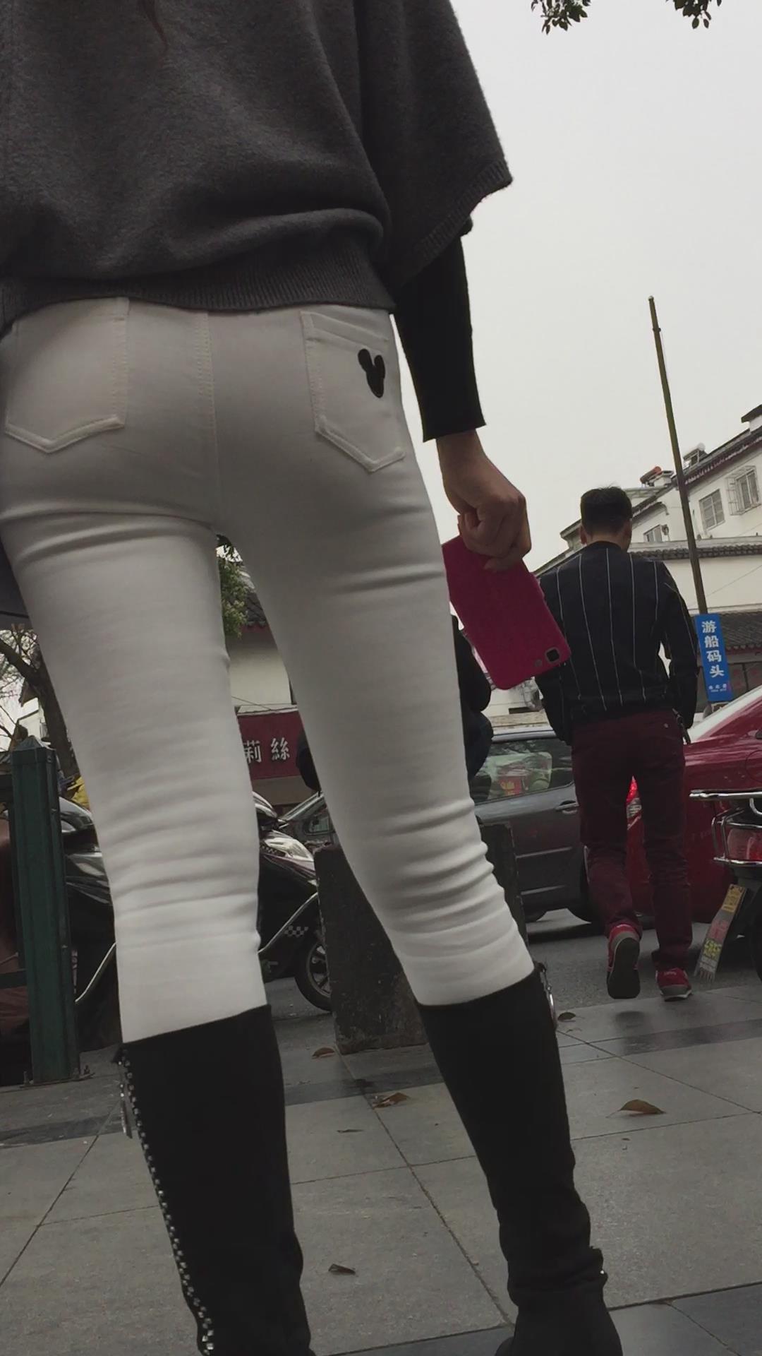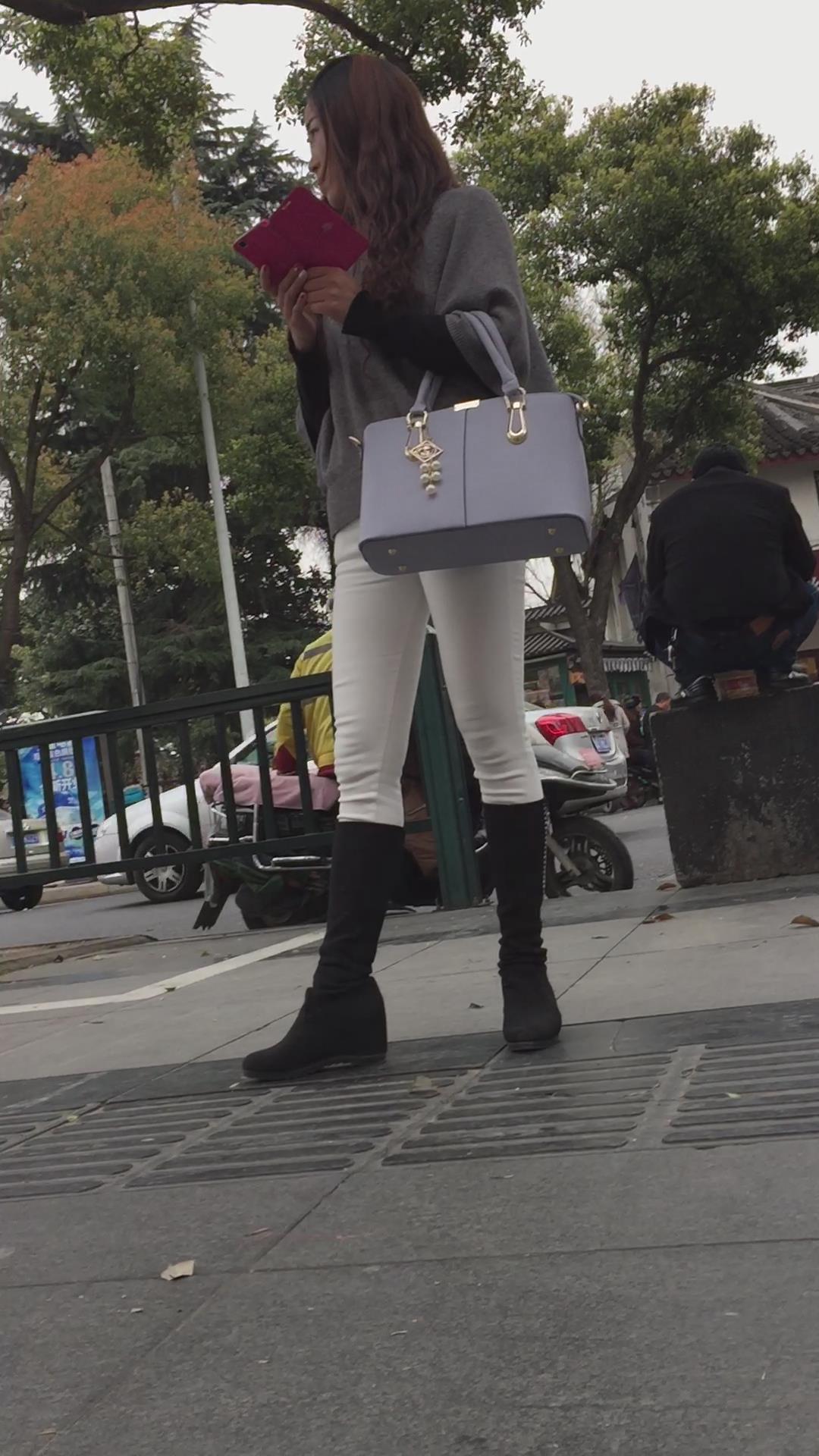 街拍紧身白裤长筒靴美少妇在等密友! 编号5807 |