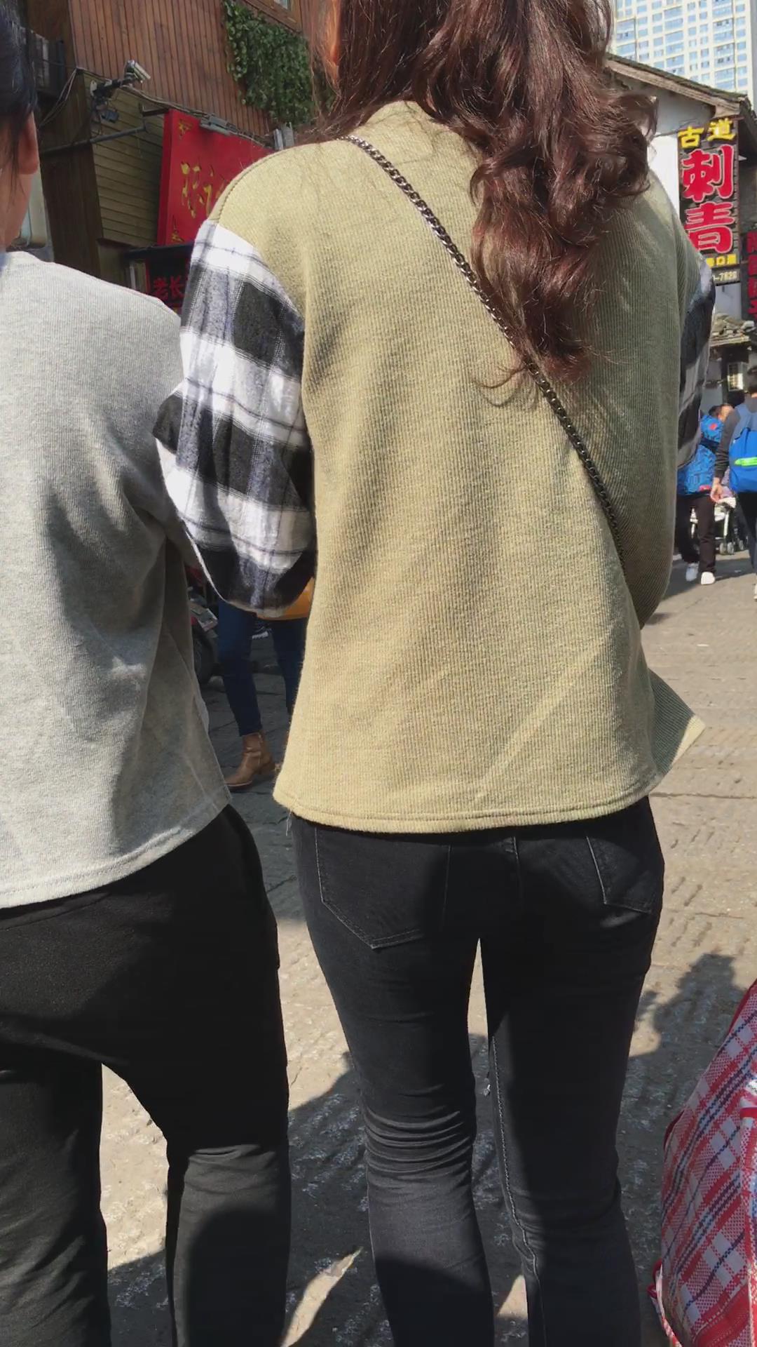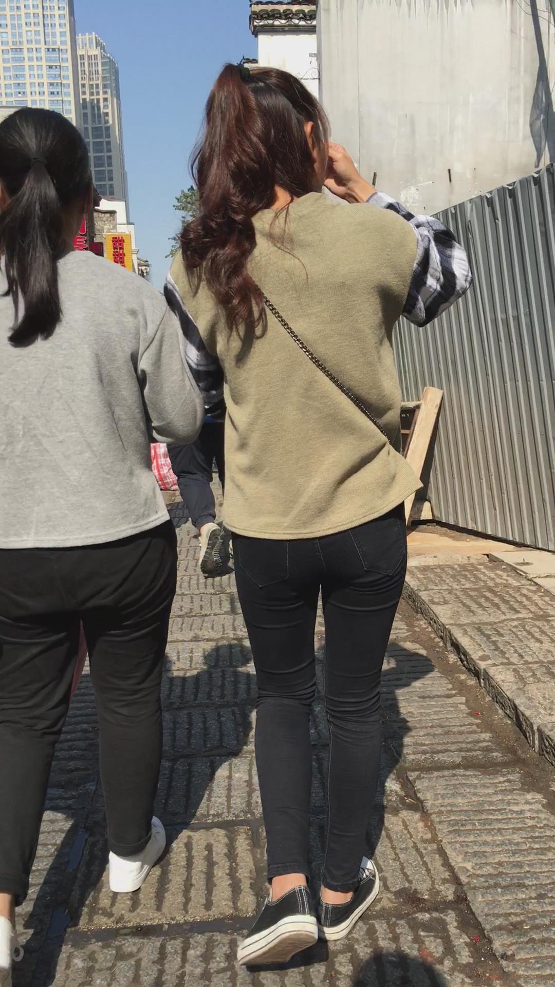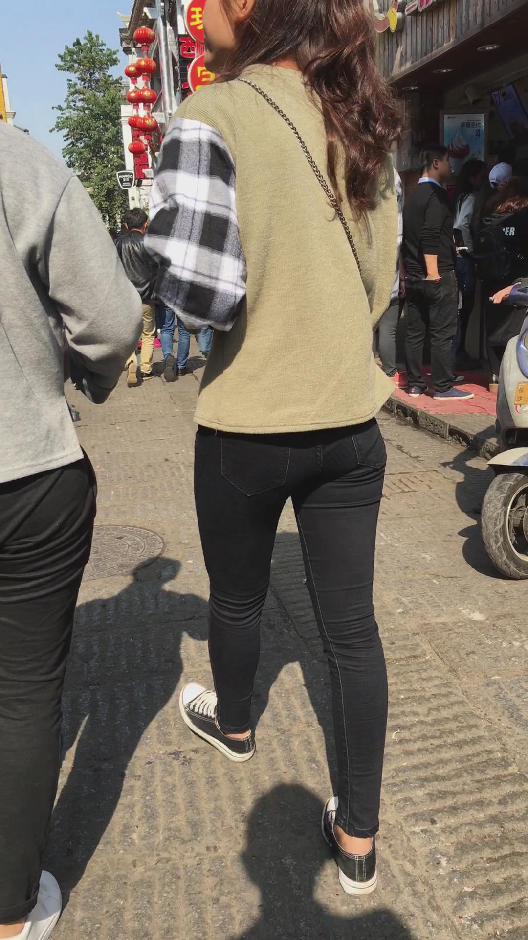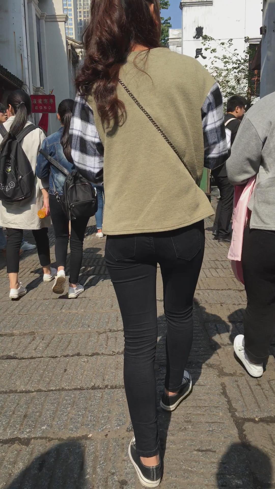 街拍马尾辫清纯黑色紧身裤美女 编号5842 |