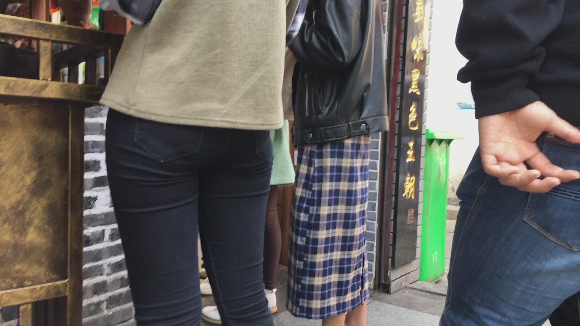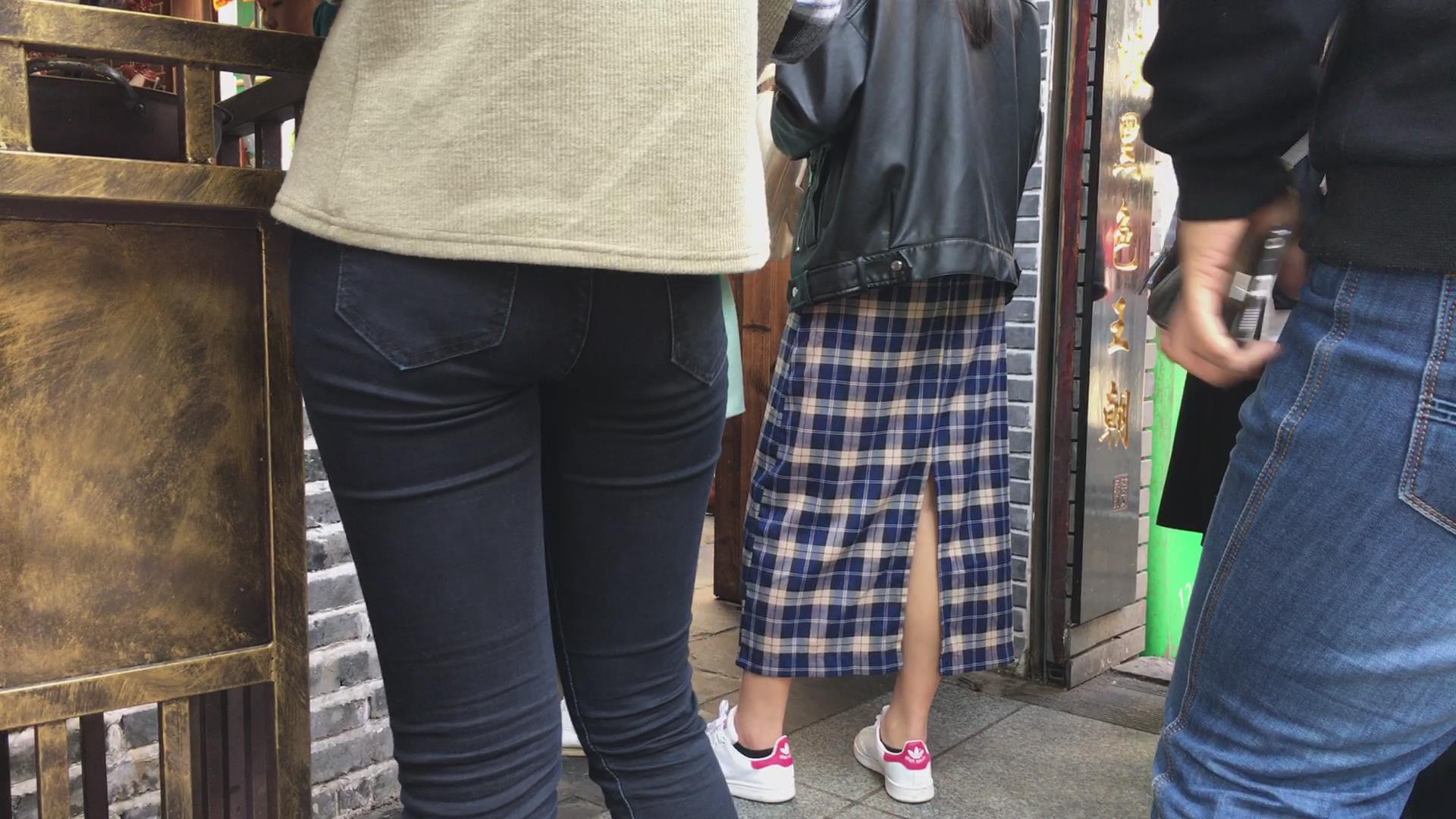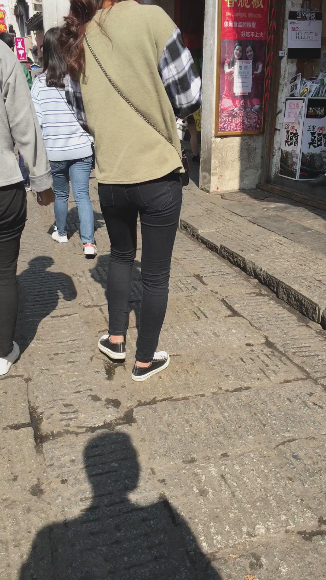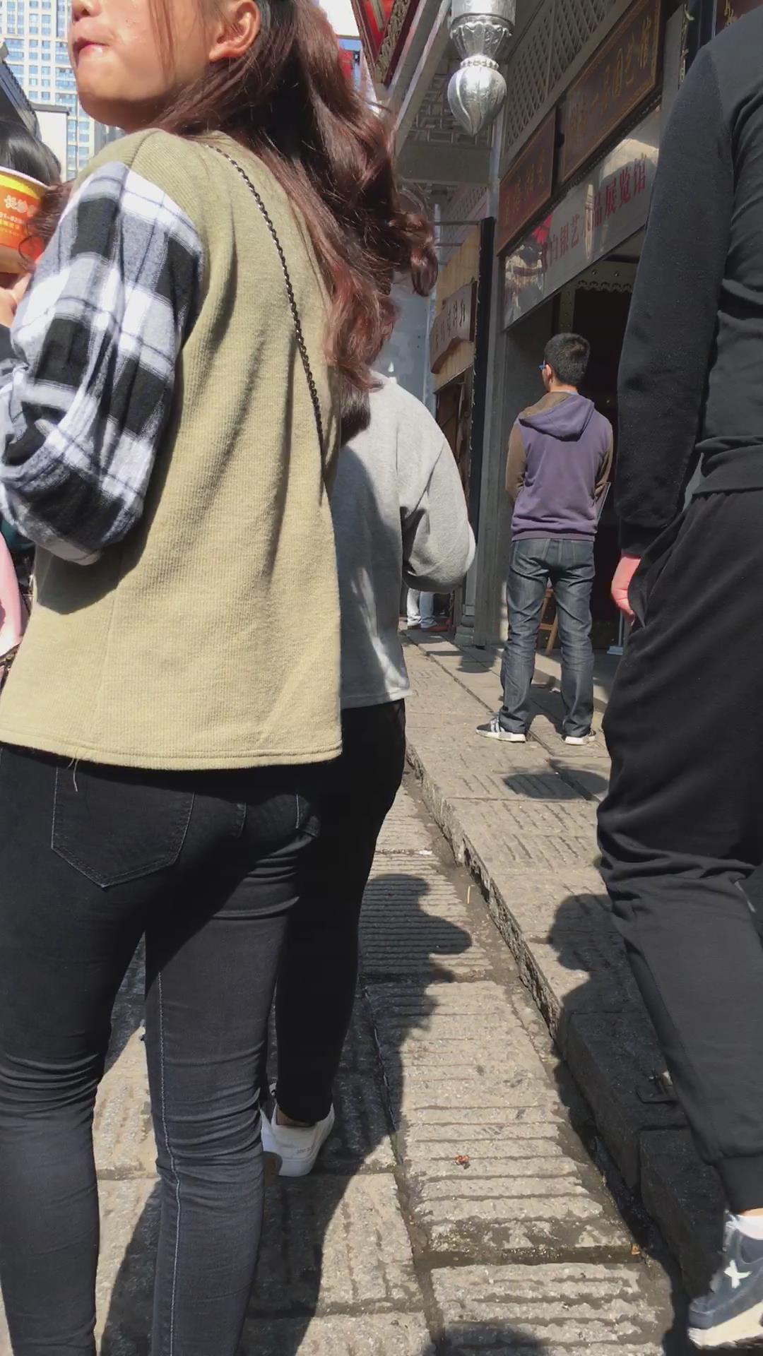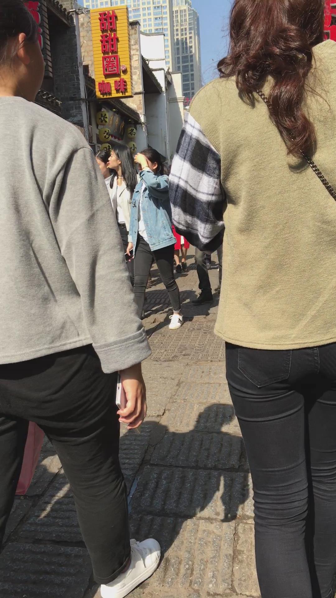 街拍马尾辫清纯黑色紧身裤美女 编号5842 |