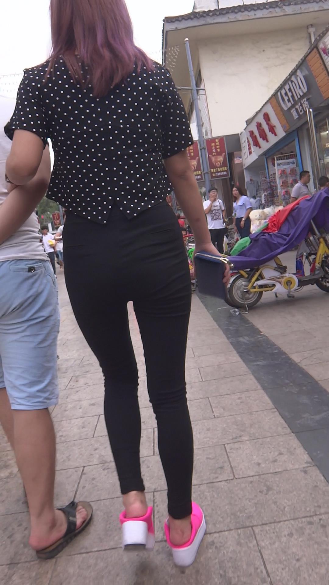 街拍黑裤紧身丰满肉臀美眉 编号5860 |