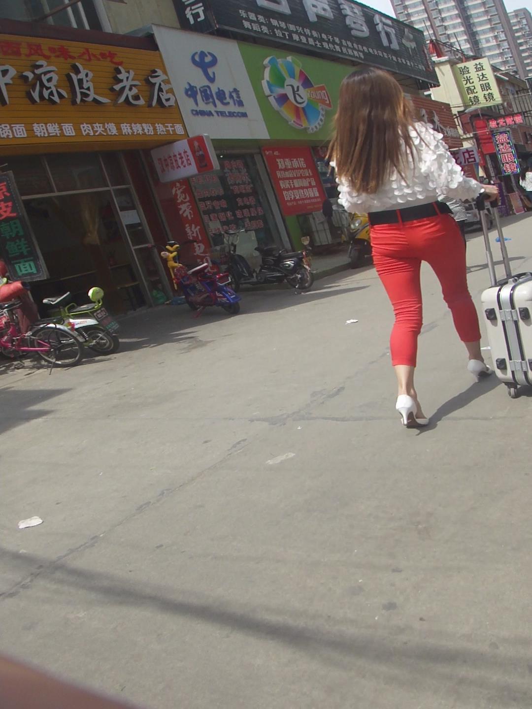 街拍紧身红裤高跟鞋美女 编号5873 |