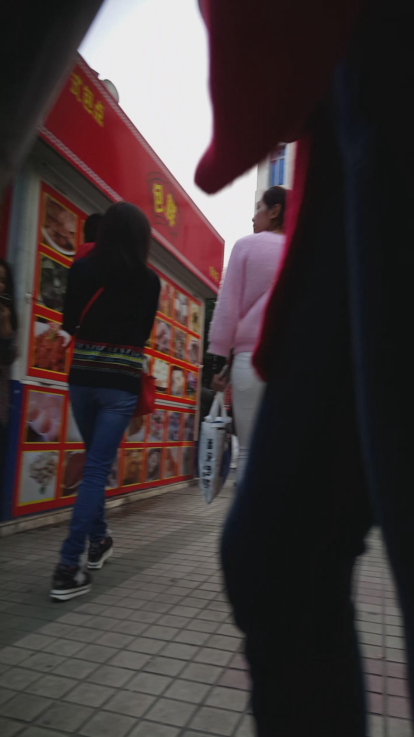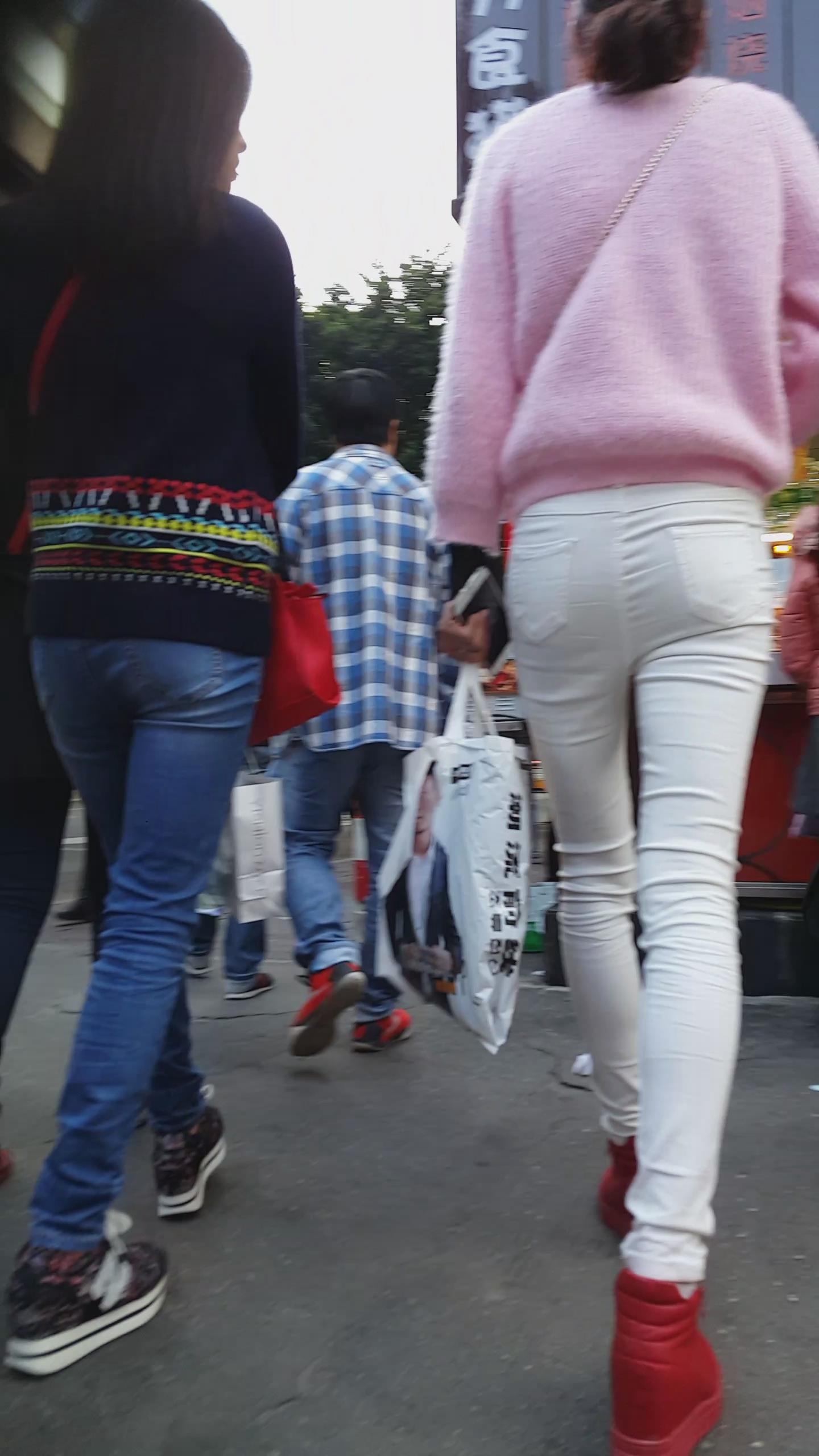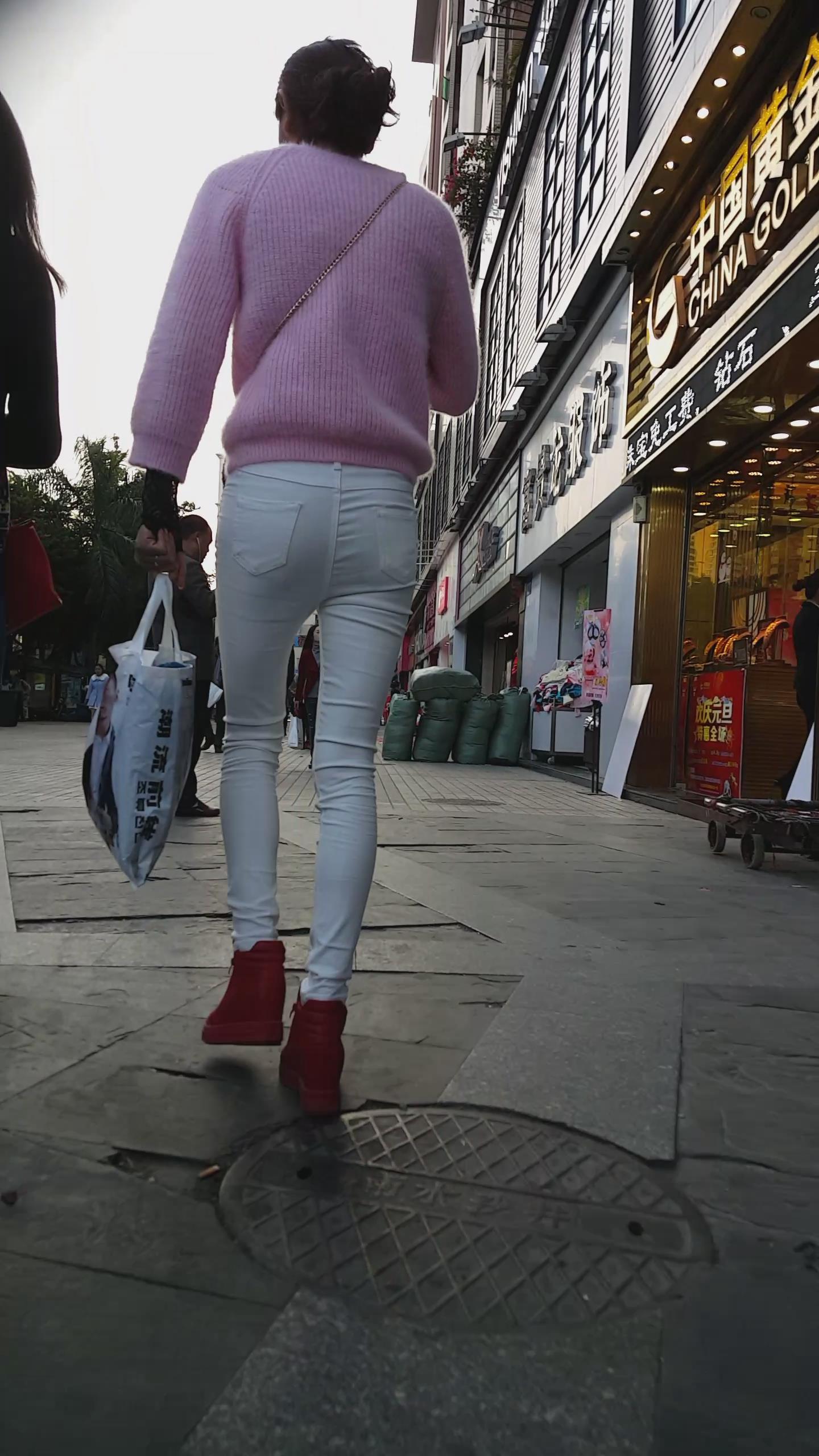 街拍粉衣白色紧身裤苗条美女 编号5943 |