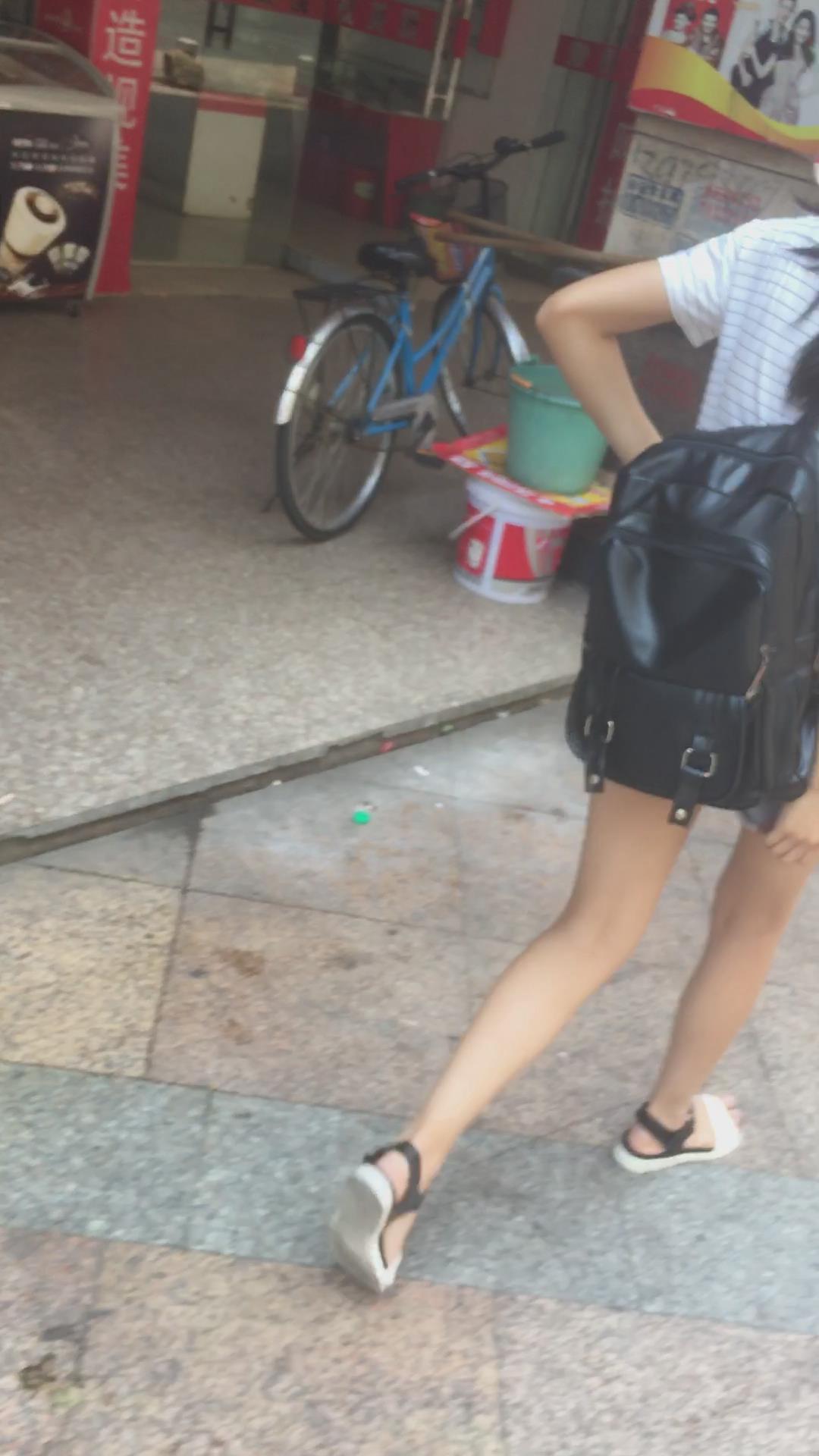 黑色背包T恤衫牛仔热裤马尾辫学生妹 编号4492 |
