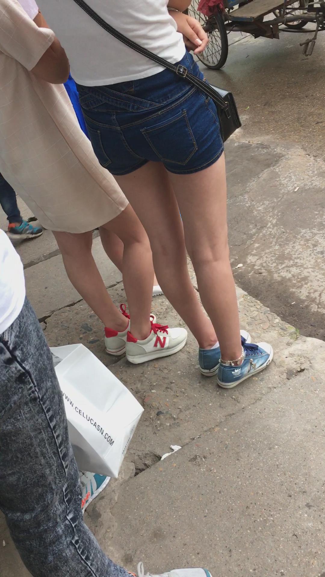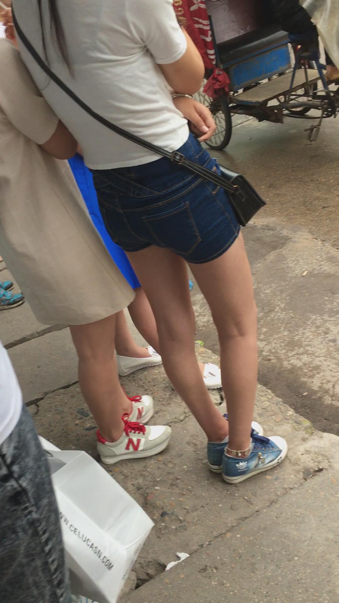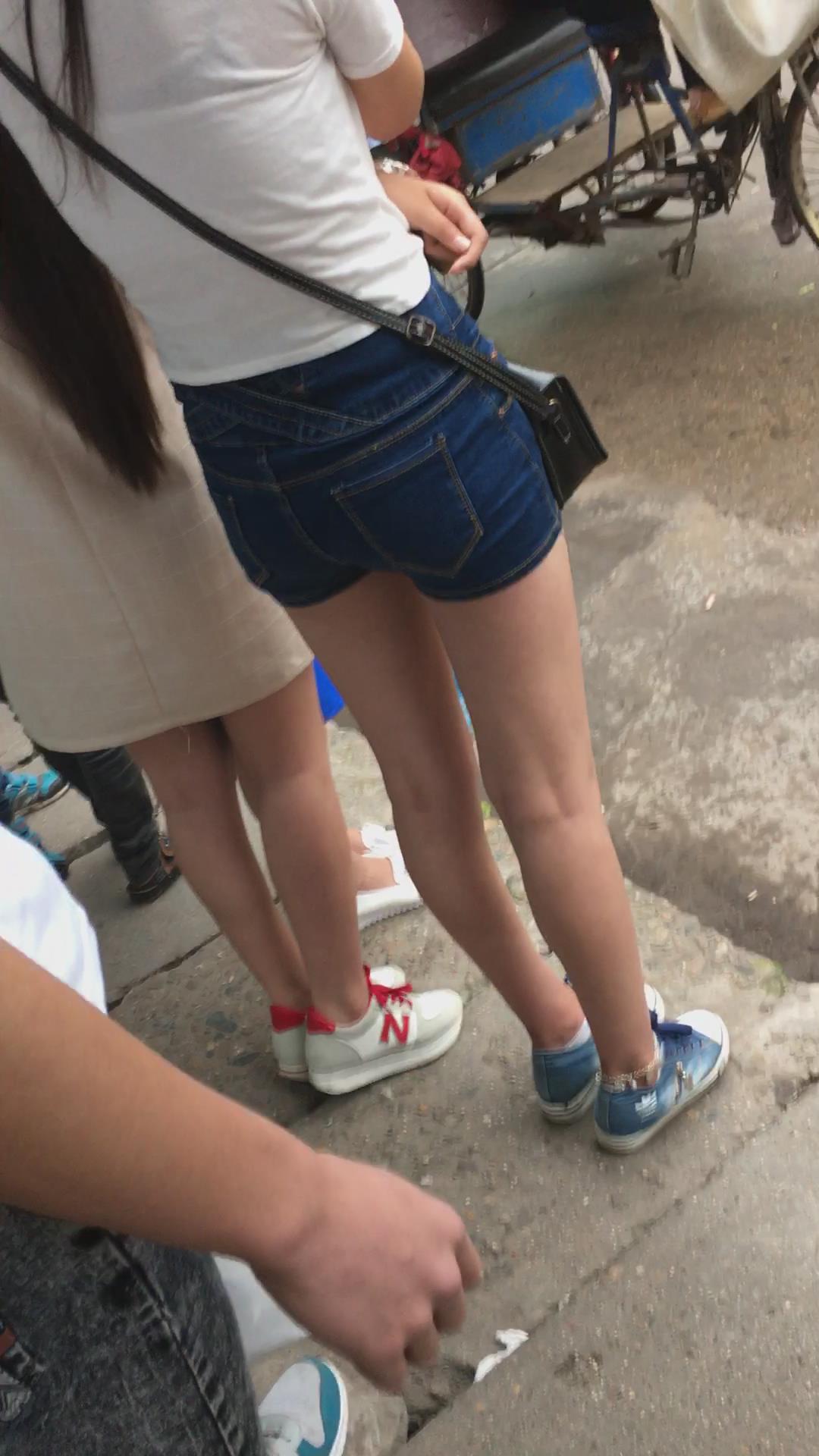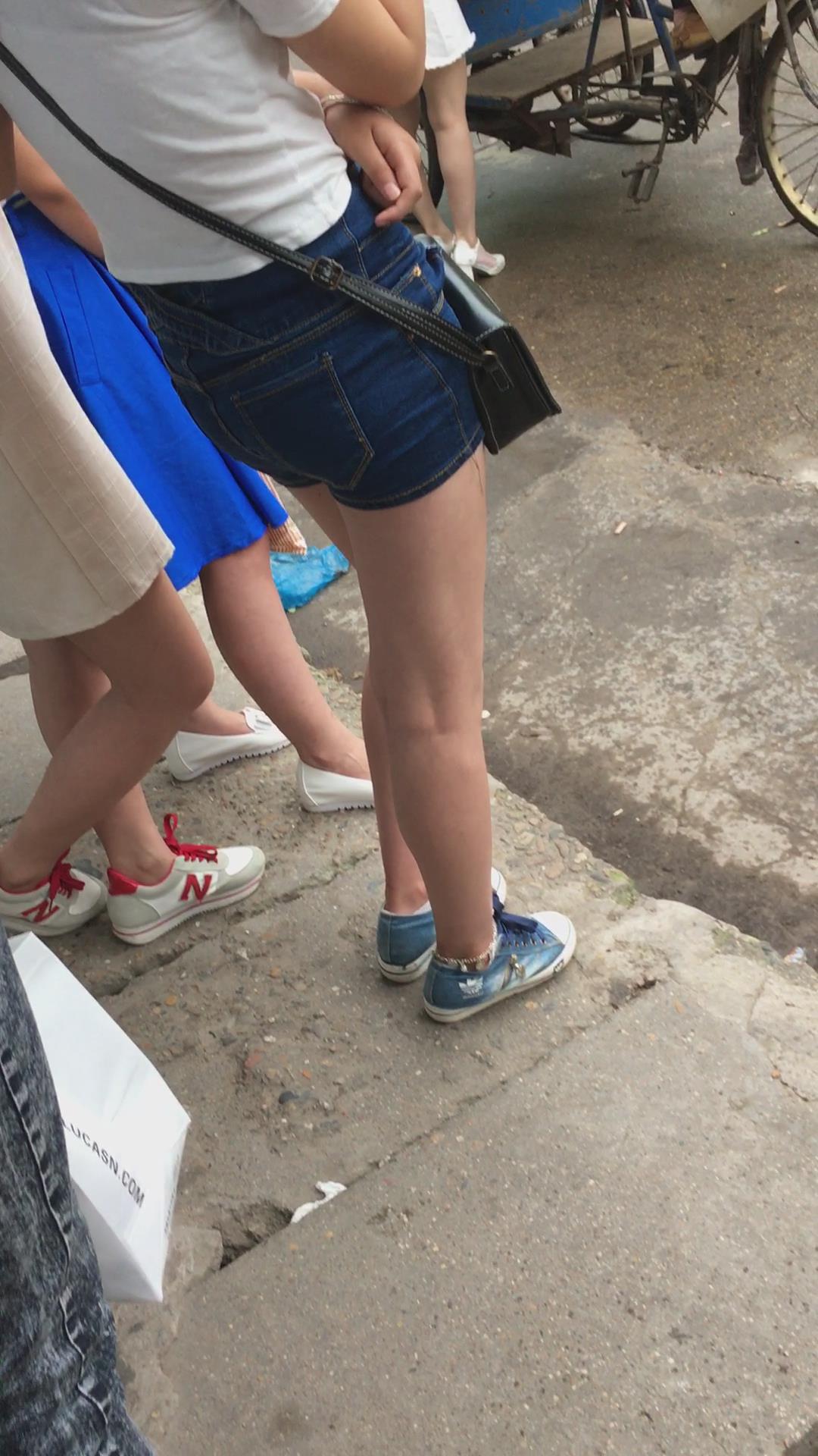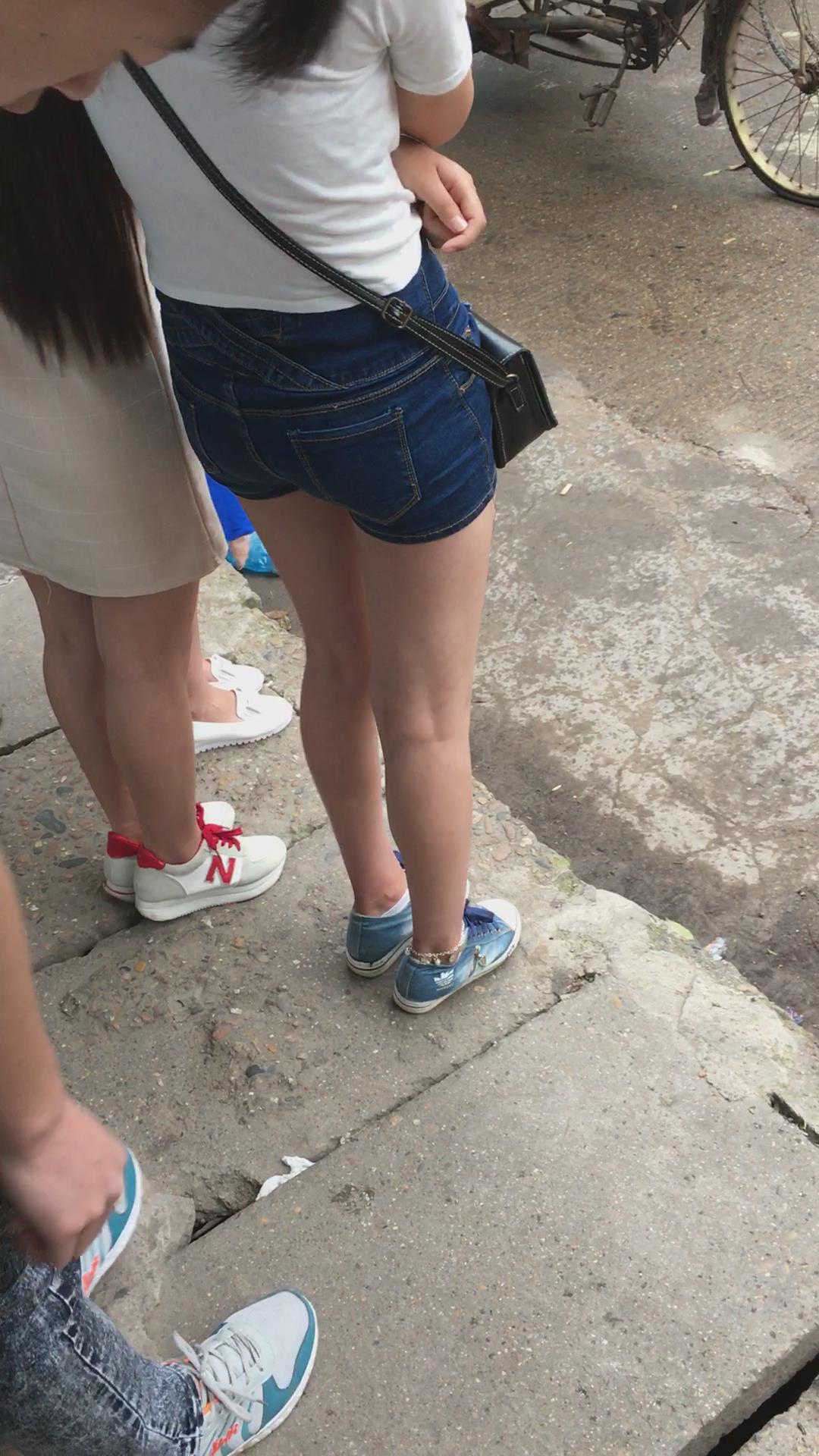 高腰牛仔热裤白T恤小蛮腰街拍小美眉 编号4493 |