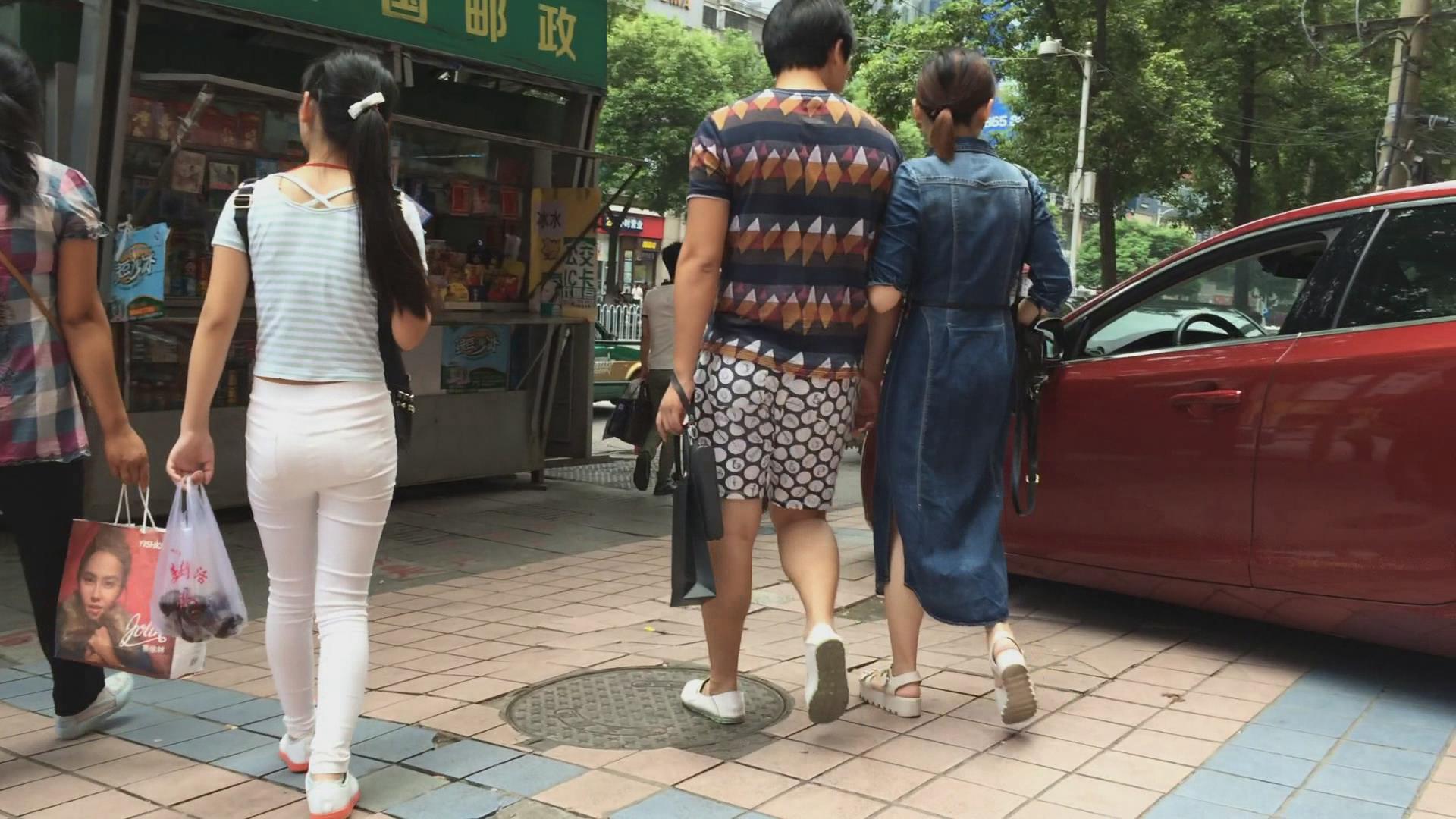 街拍白色紧身裤苗条美女 编号6022 |
