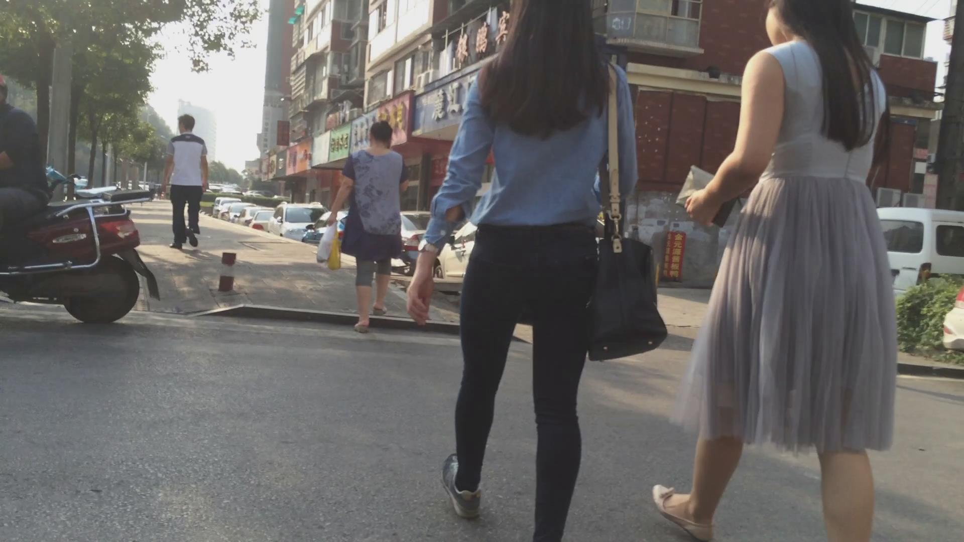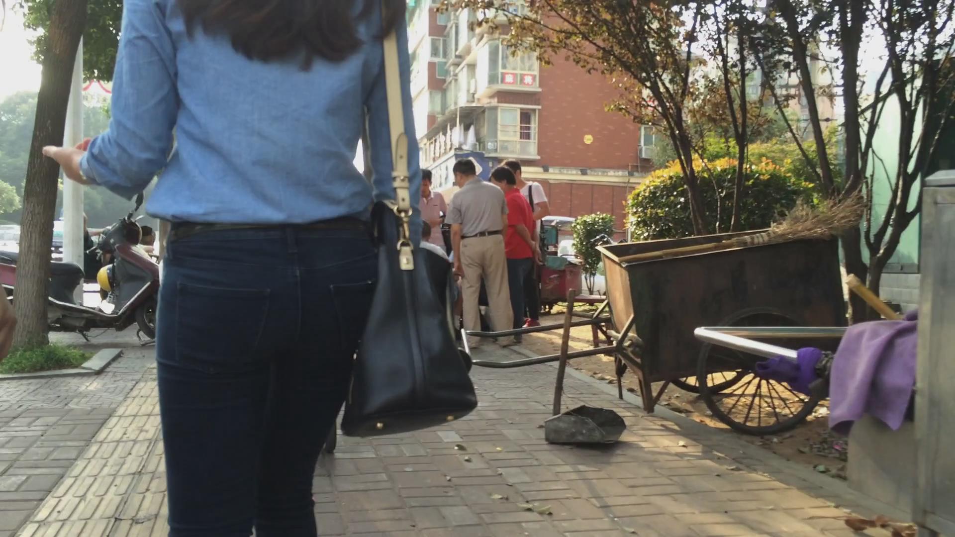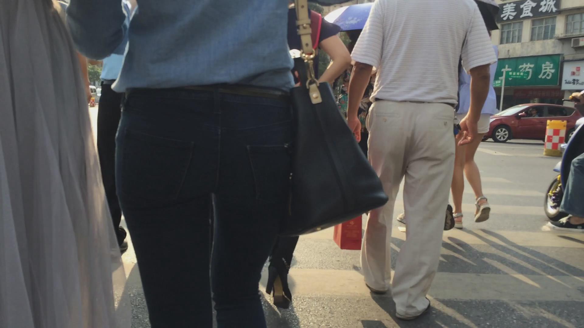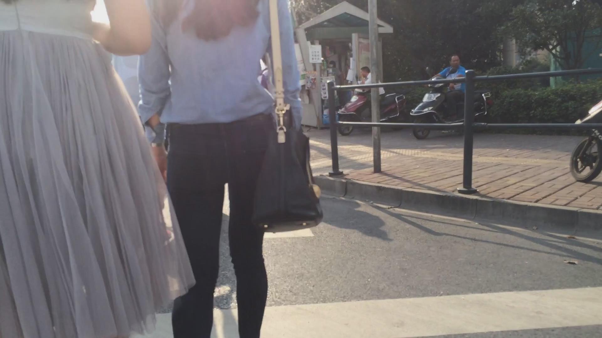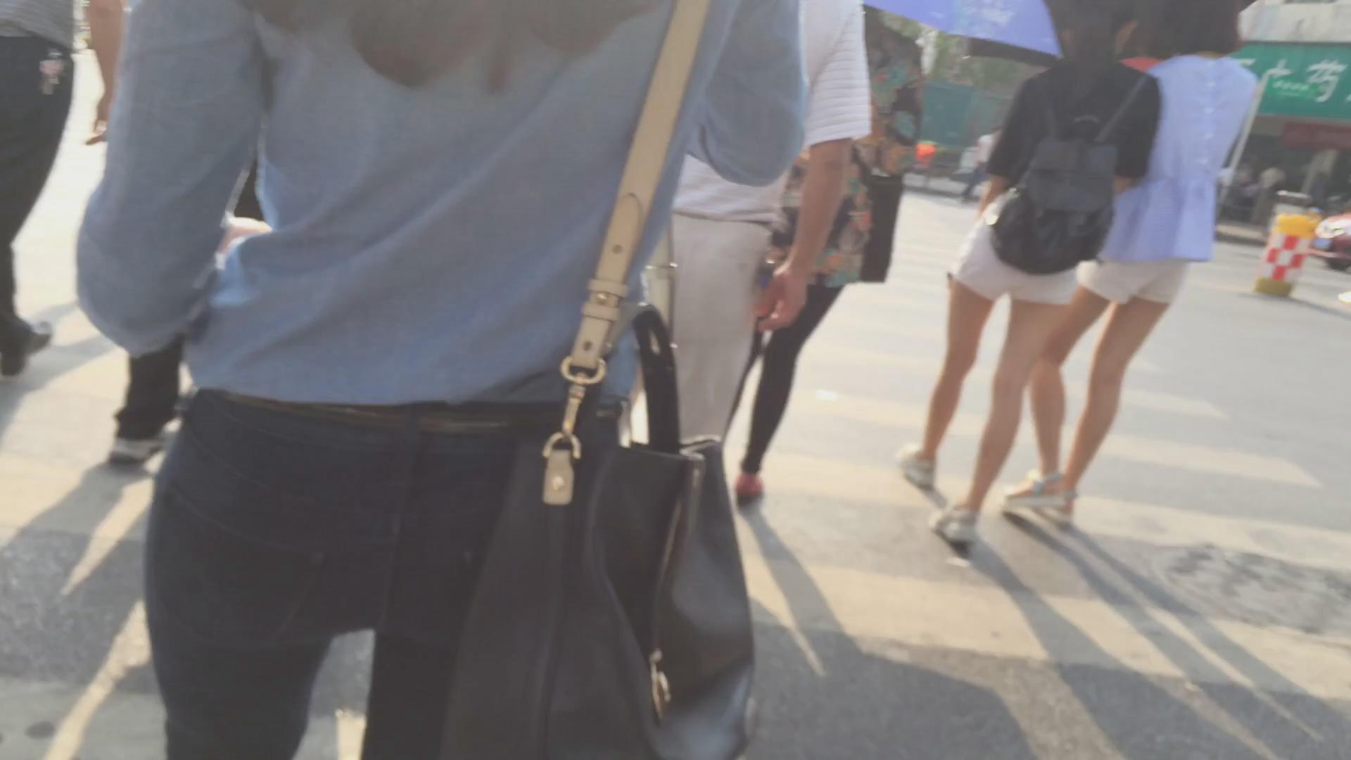 街拍紧身蓝色牛仔裤美女 编号6040 |