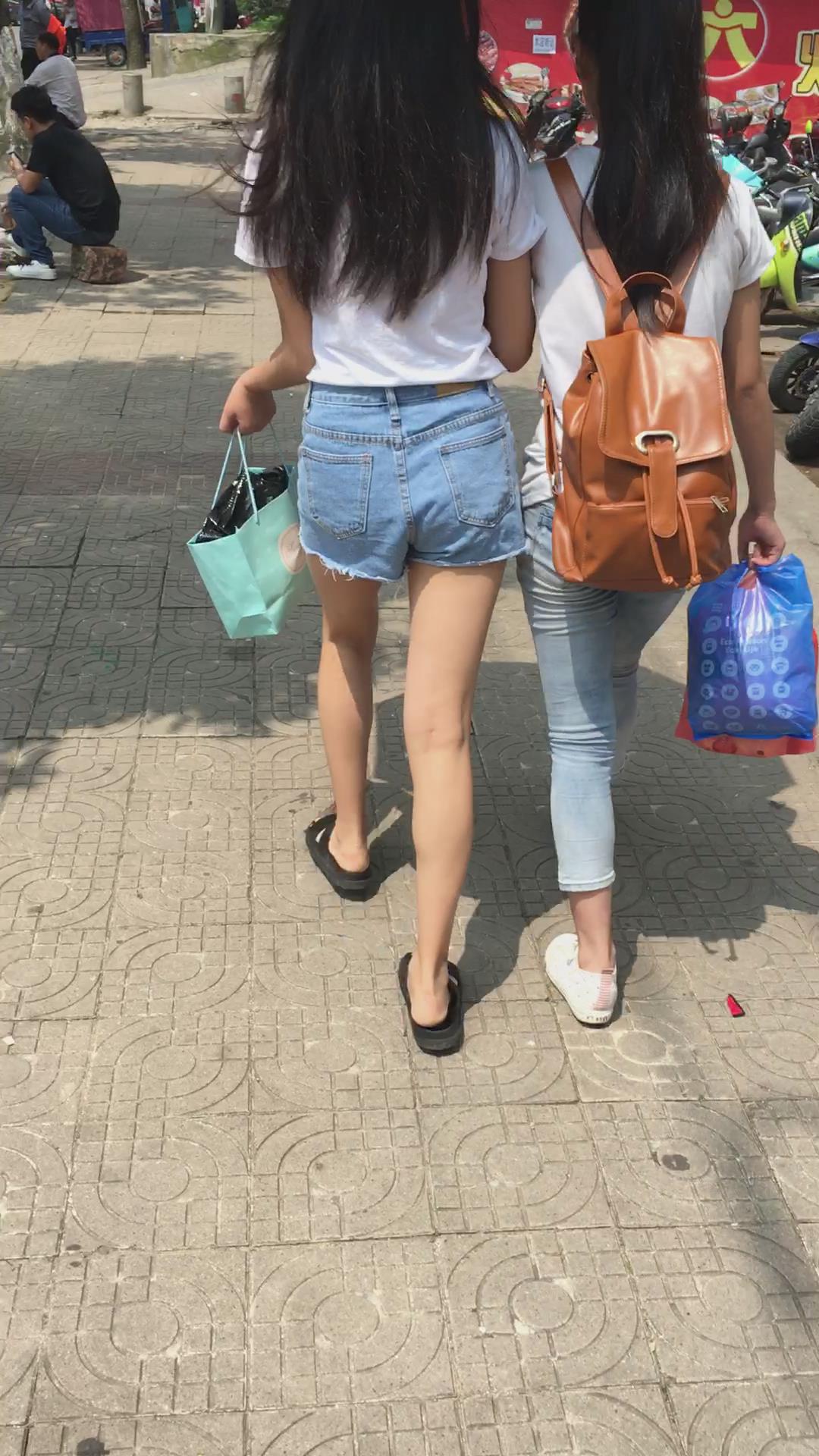 街拍小清新白T恤高腰热裤美女小姐姐 编号4502 |