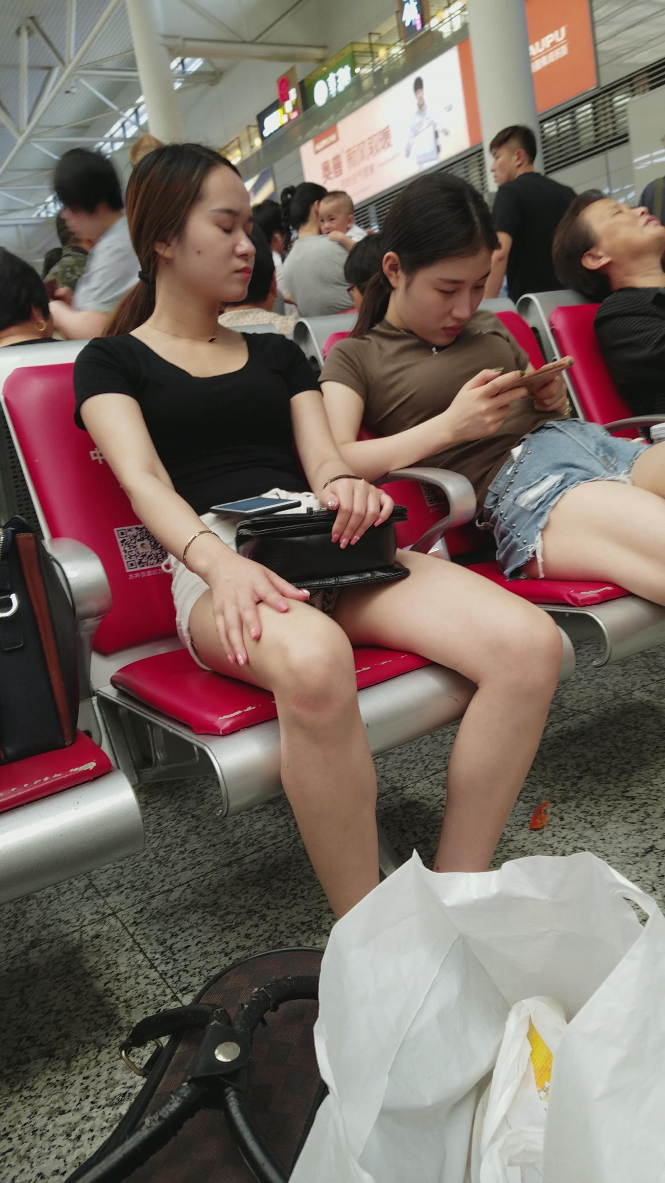 4K-牛仔热裤长腿墨绿T恤衫街拍美女 编号2765 |