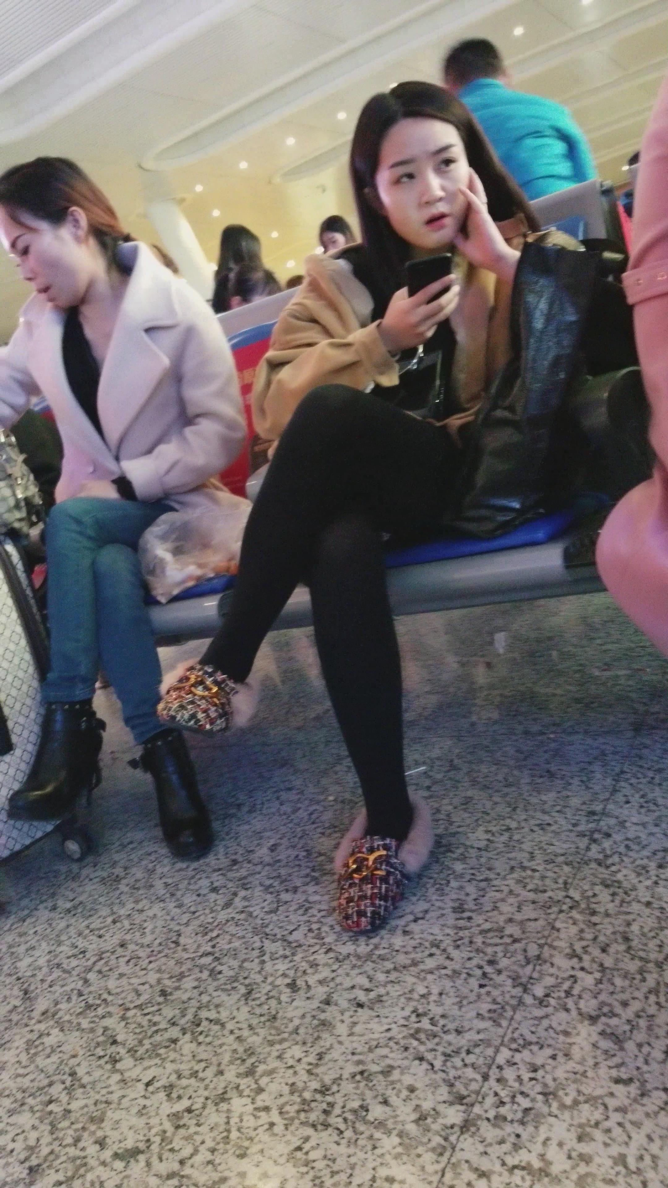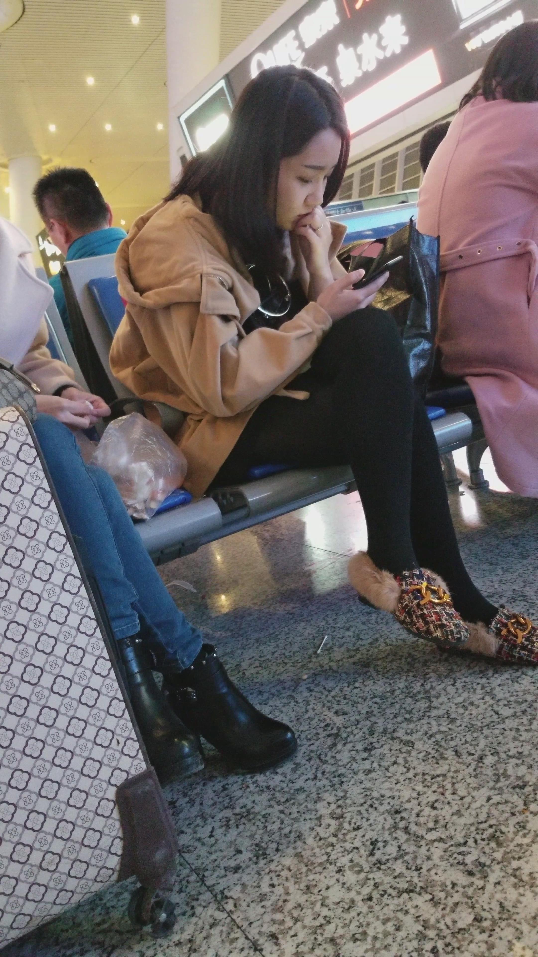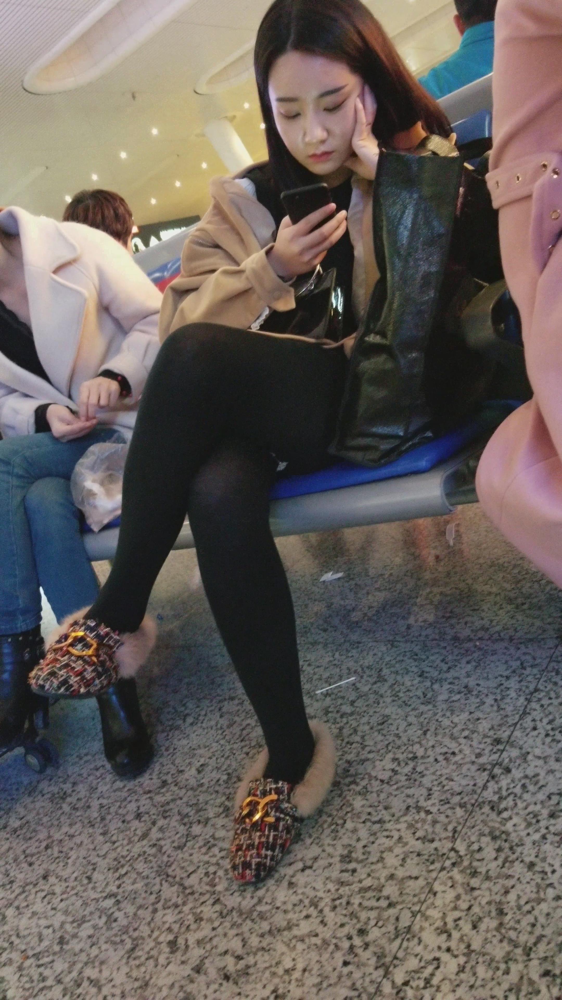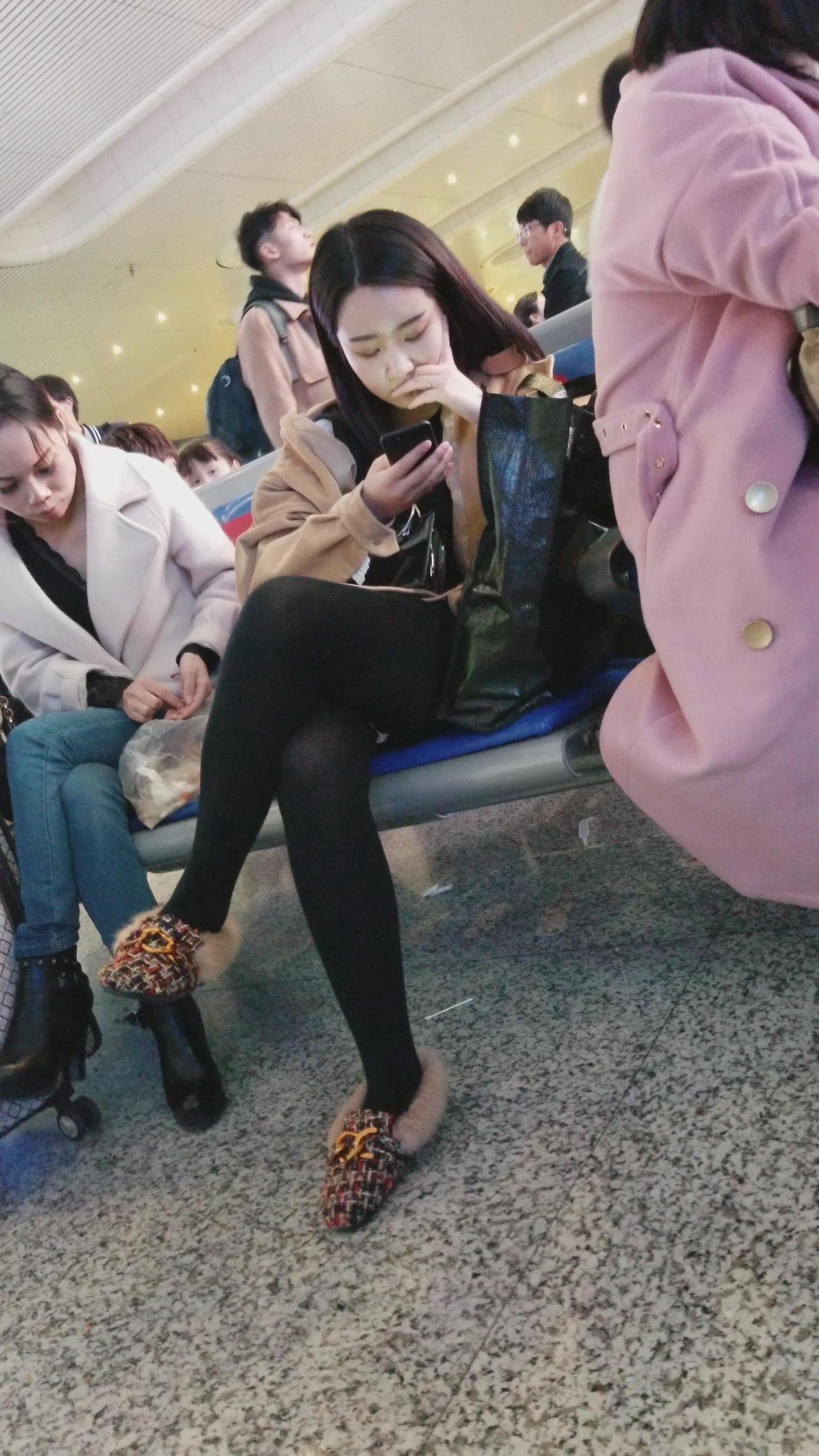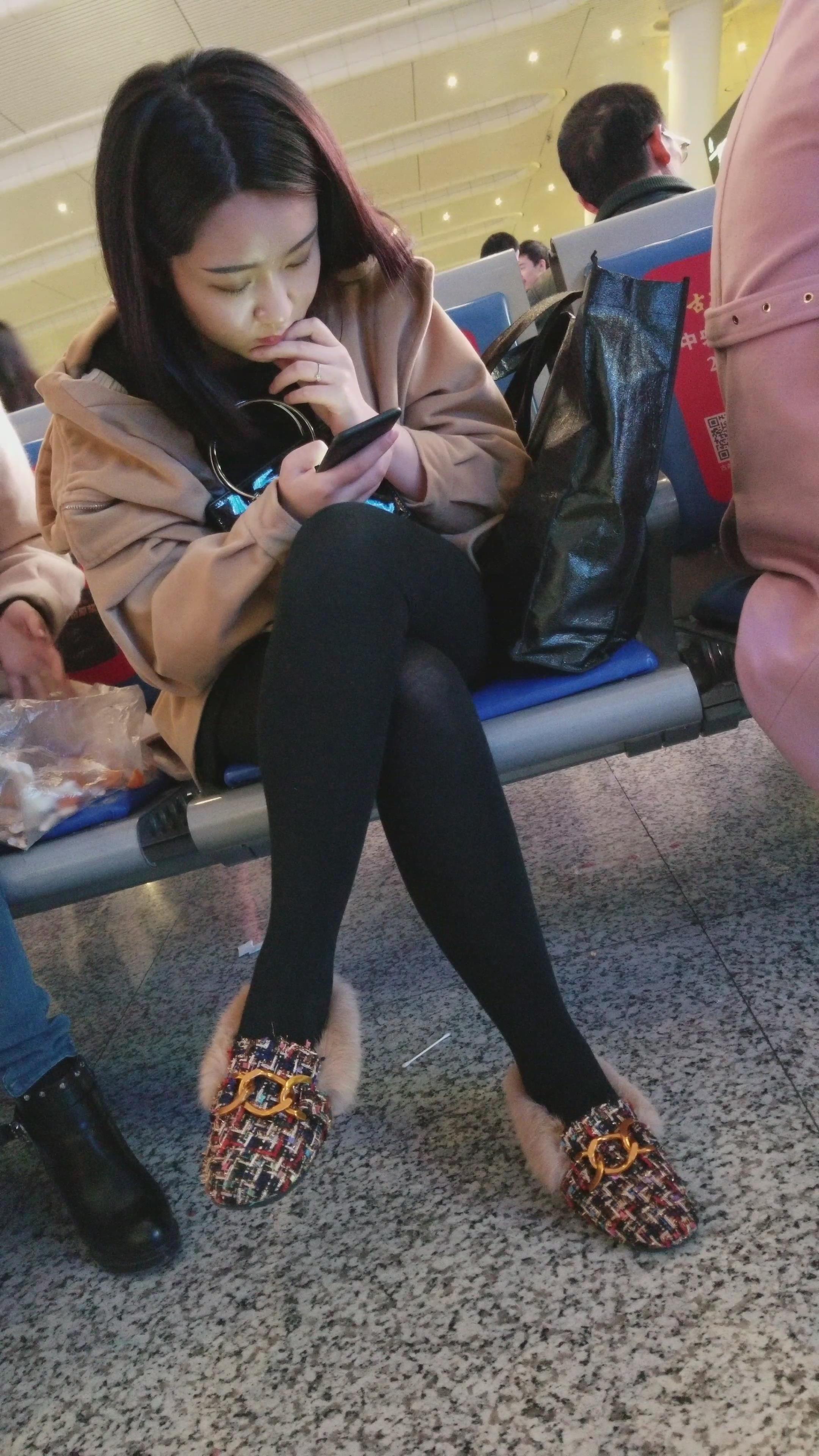 4K-看手机入迷的好身材黑色打底裤街拍美女姐姐 编号2786 |